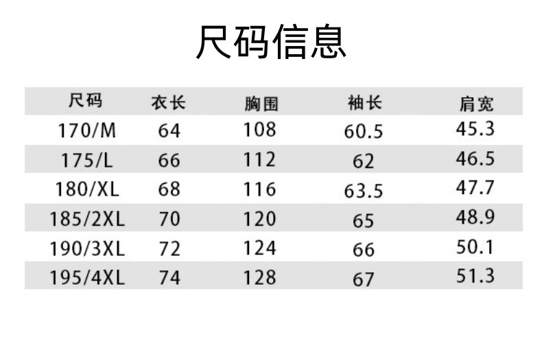 China (cm) 165 / 88-90 170 / 96-98 175 / 108-110 180 / 118-122 185 / 126-130