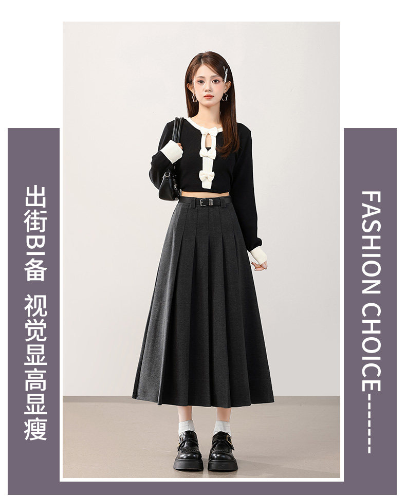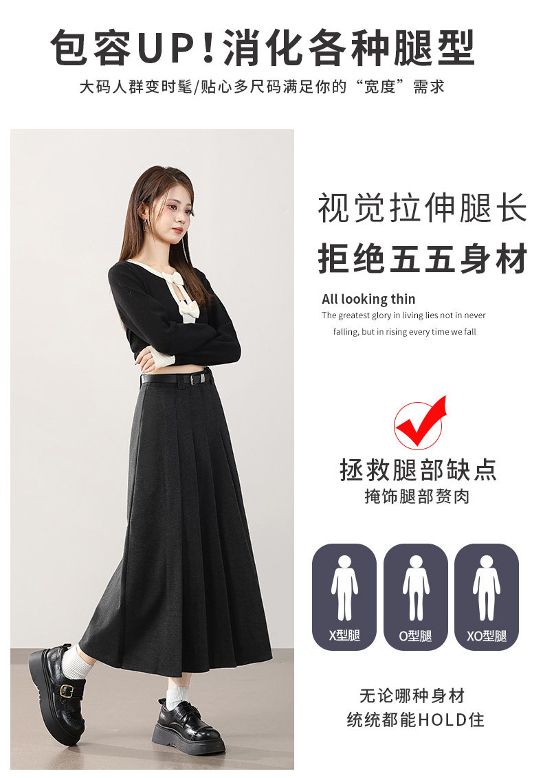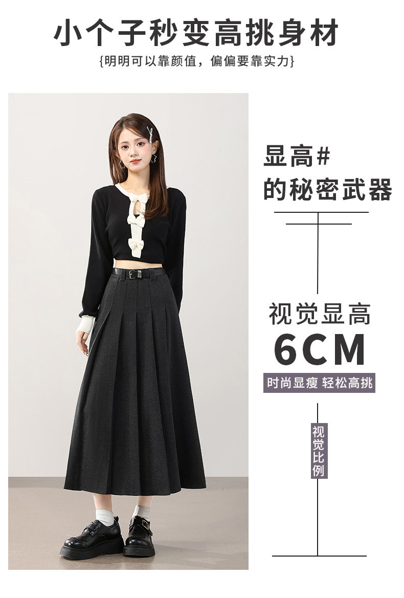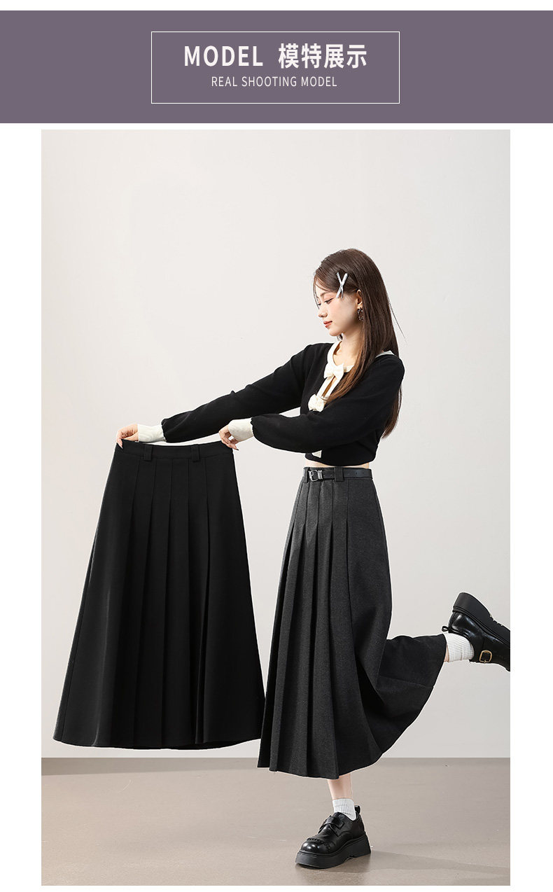 Xiangmeimei mid-length a-line pleated skirt woolen college