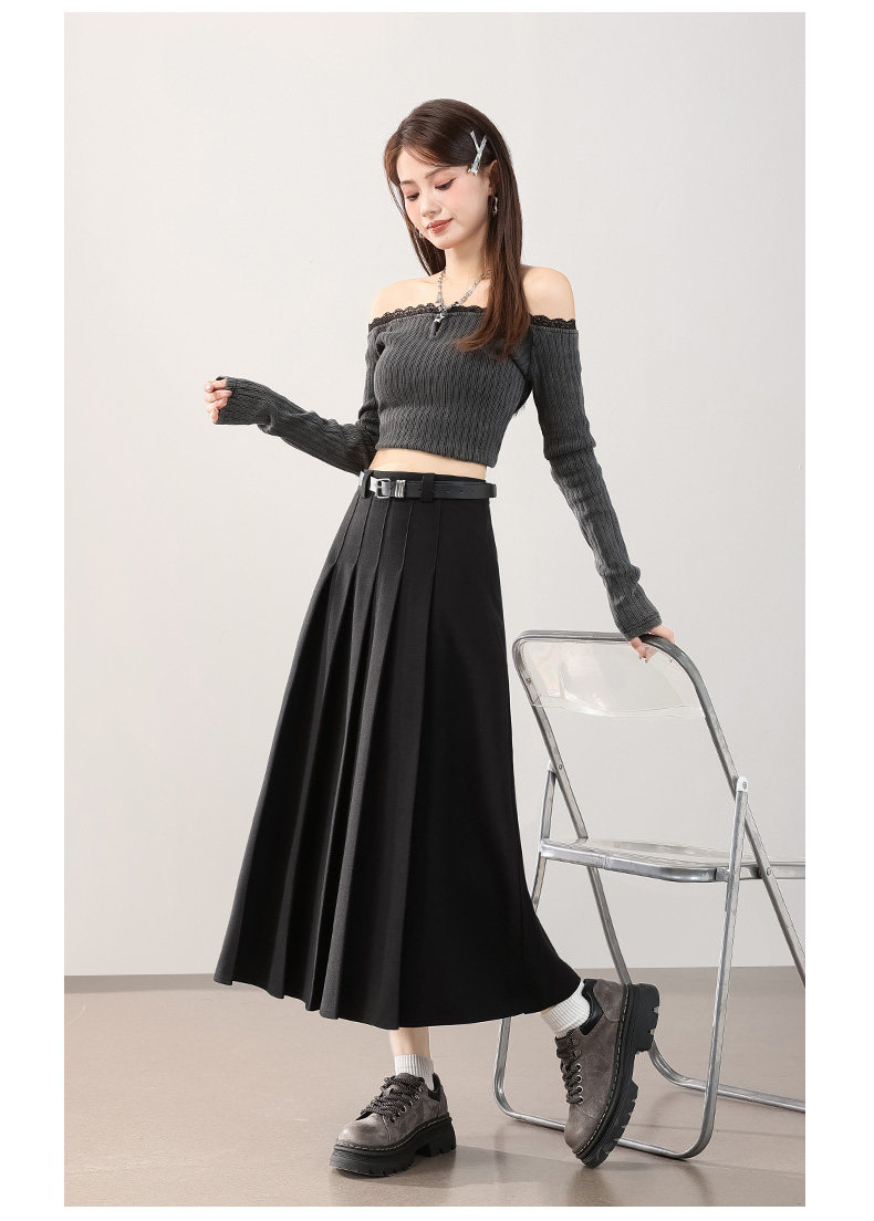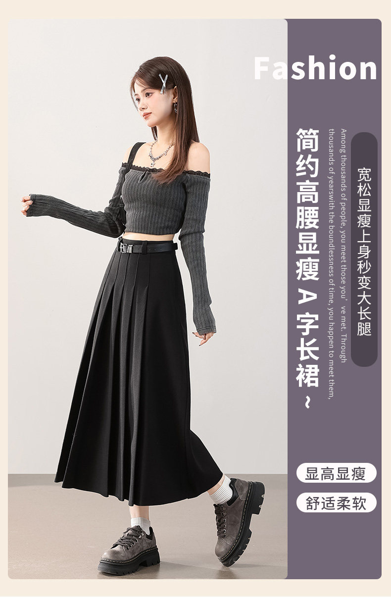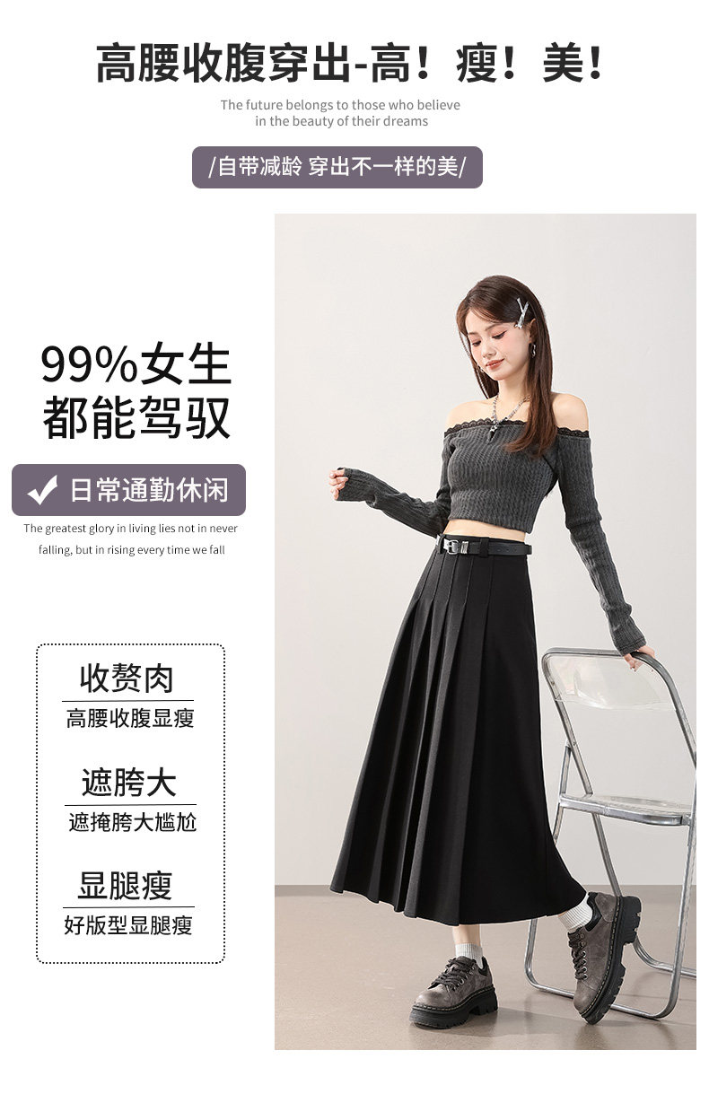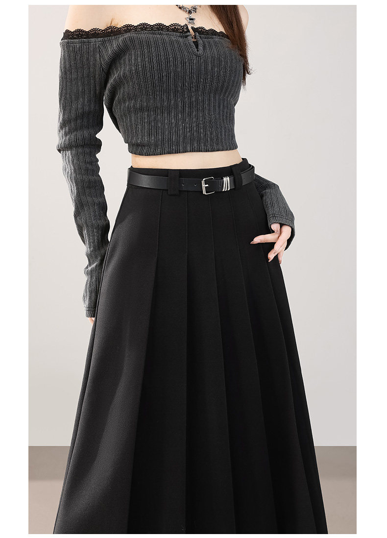 Xiangmeimei mid-length a-line pleated skirt woolen college