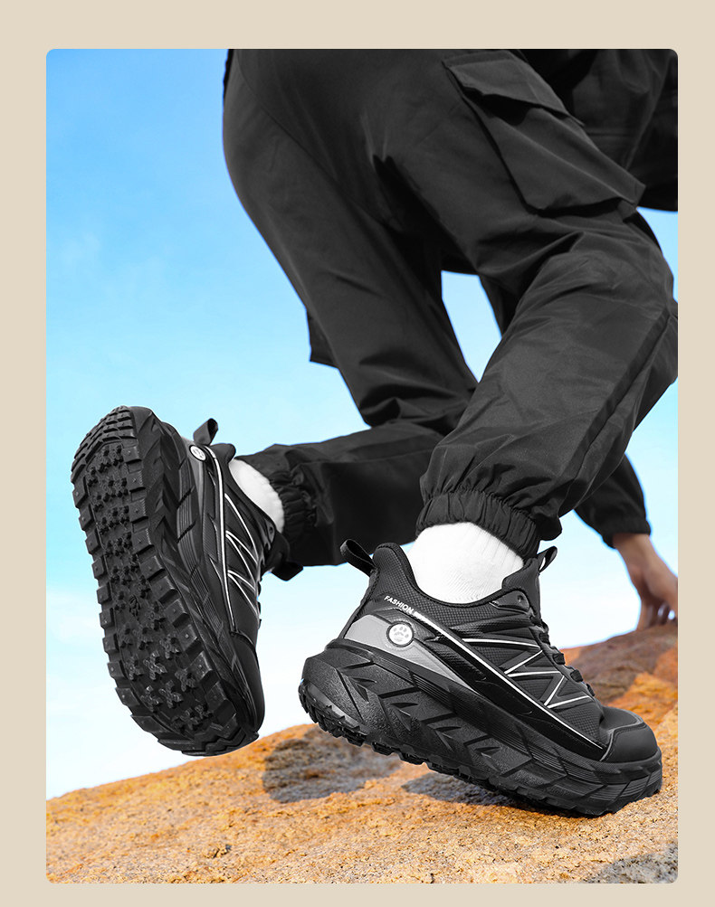 Male student youth sports shoes spring large size leather big head wide foot running shock-absorbing waterproof non-slip hiking shoes