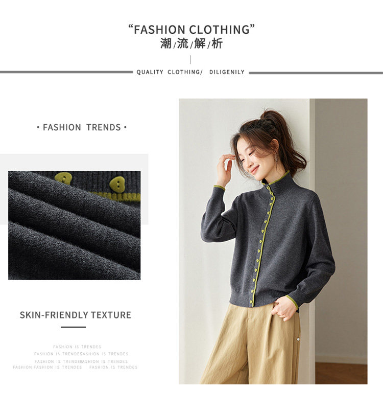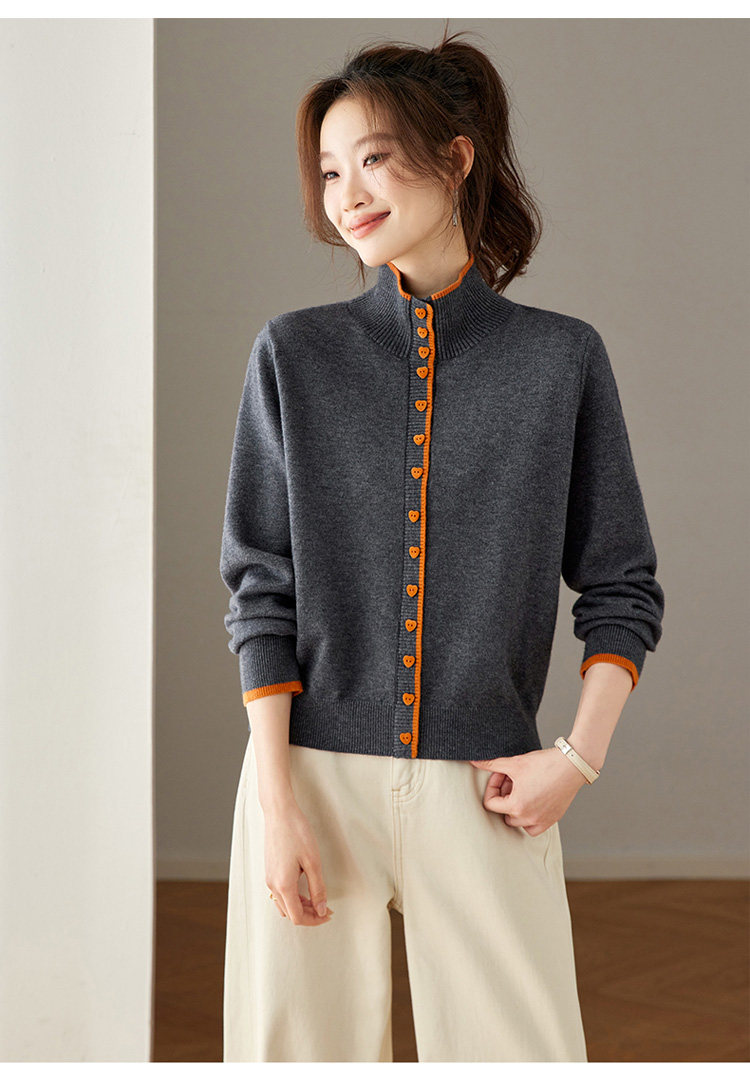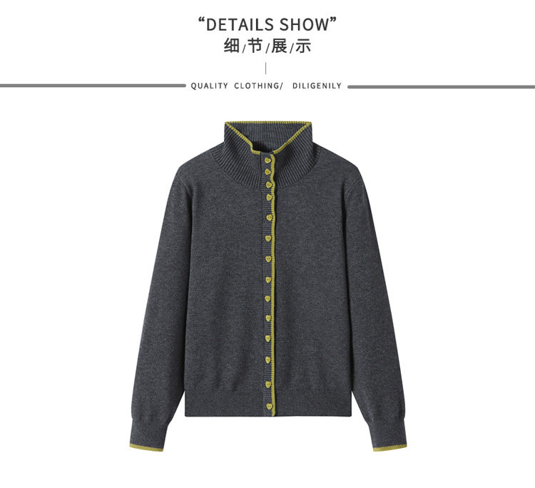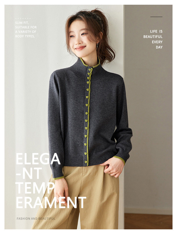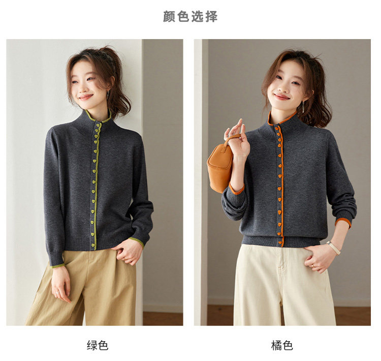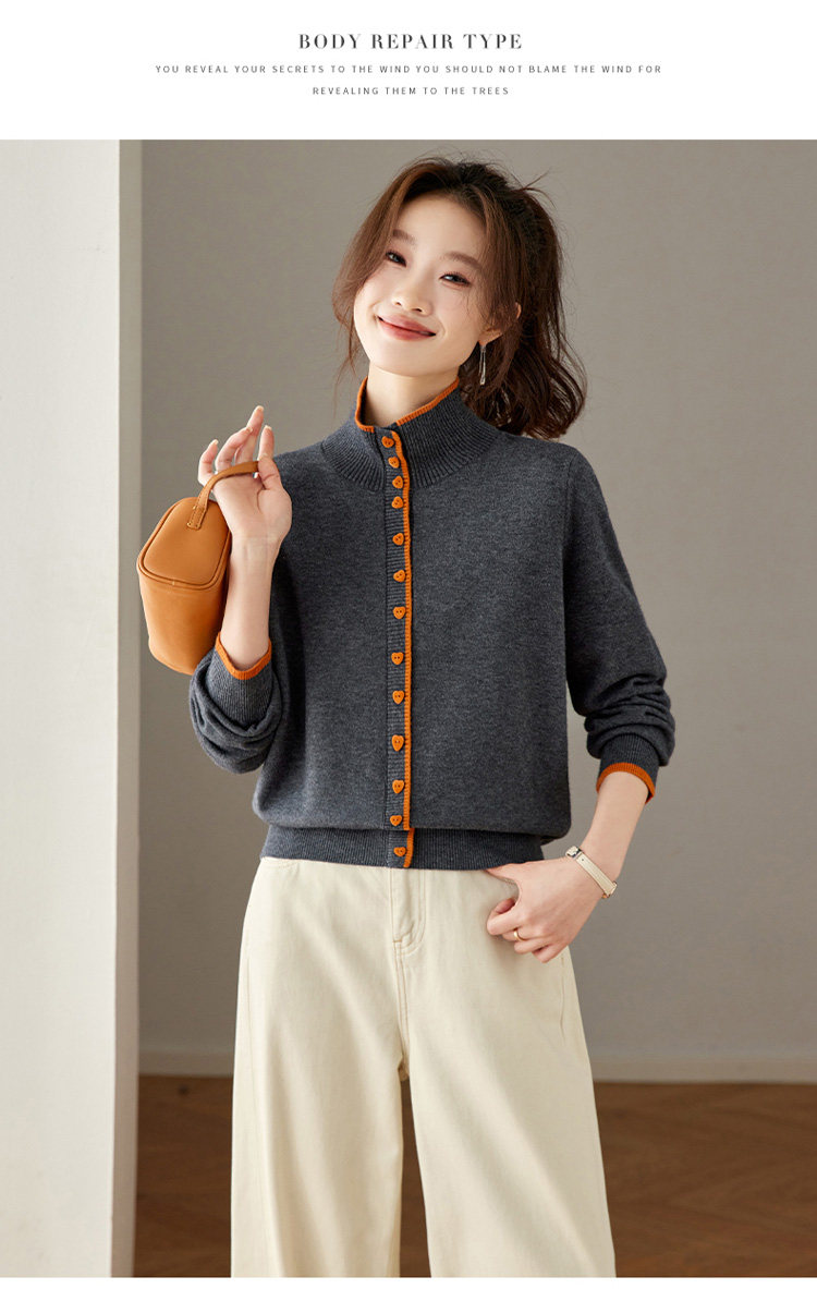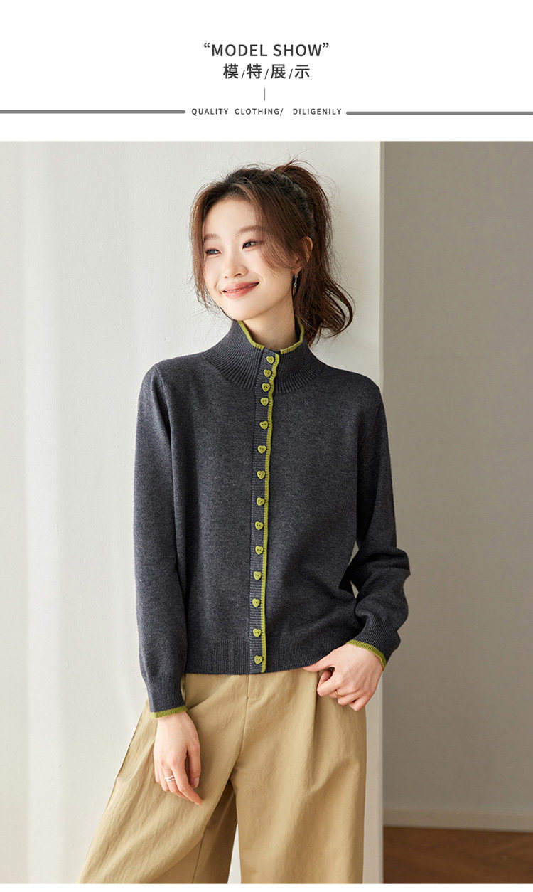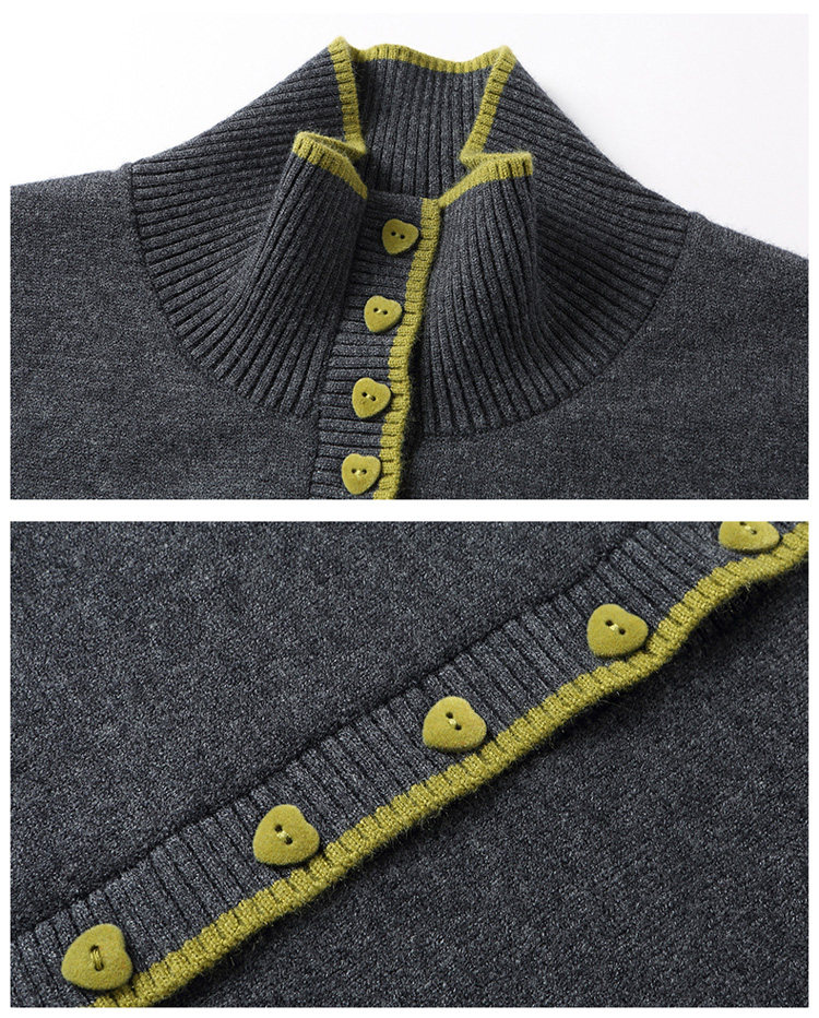 High-Neck Base Sweater for Women 2025 Autumn and Winter Stylish Color-Blocked Knit Top with Heart Buttons, Can Be Worn as an Outerwear or Inner Layer