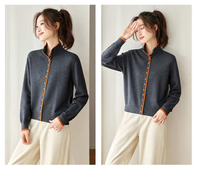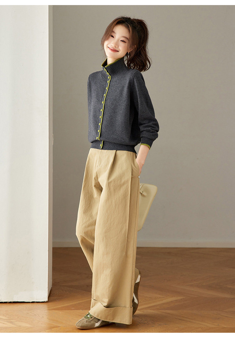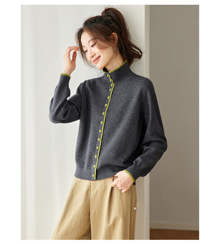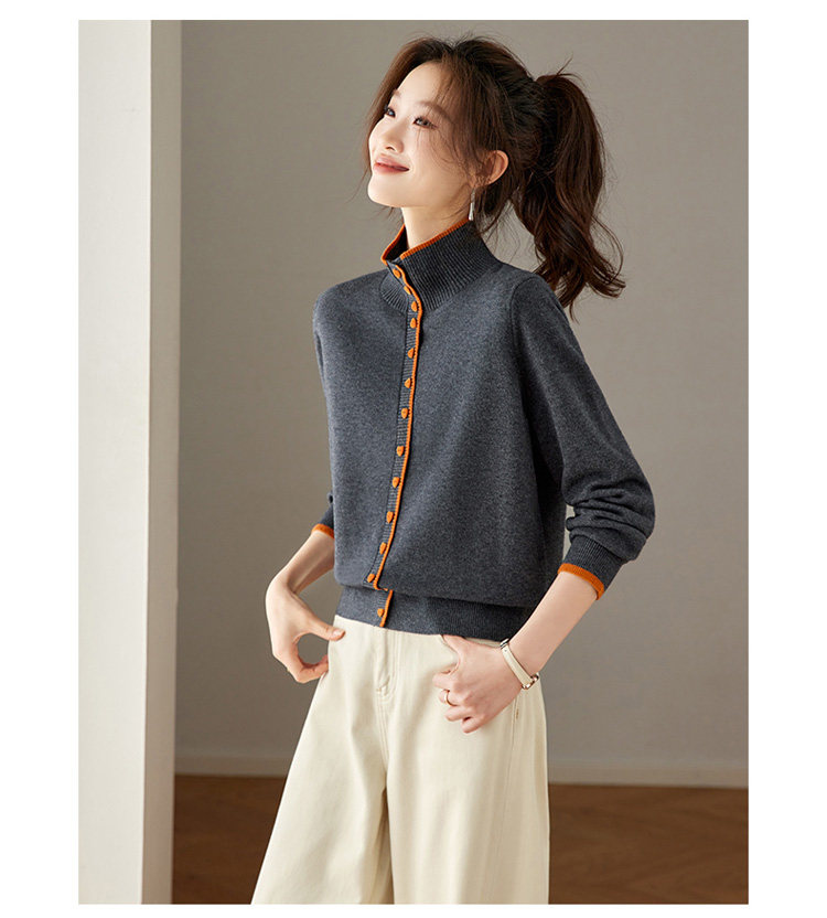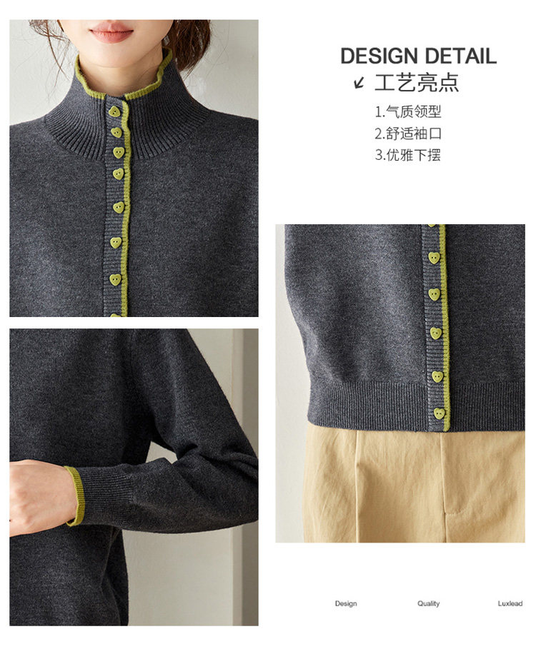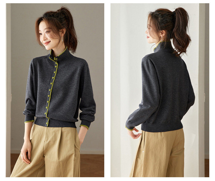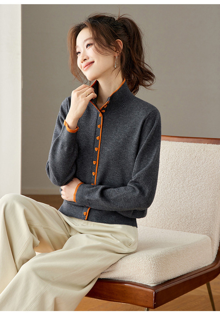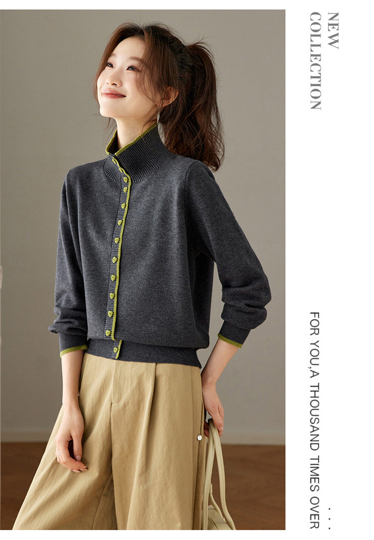 High-Neck Base Sweater for Women 2025 Autumn and Winter Stylish Color-Blocked Knit Top with Heart Buttons, Can Be Worn as an Outerwear or Inner Layer