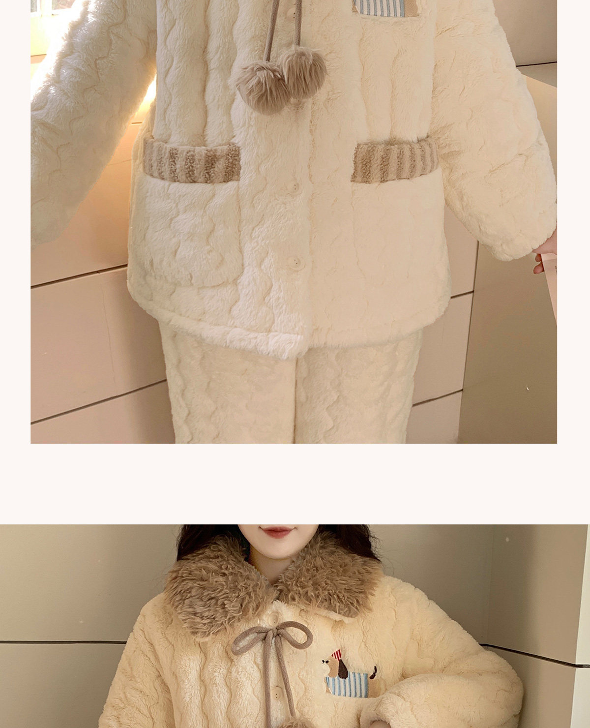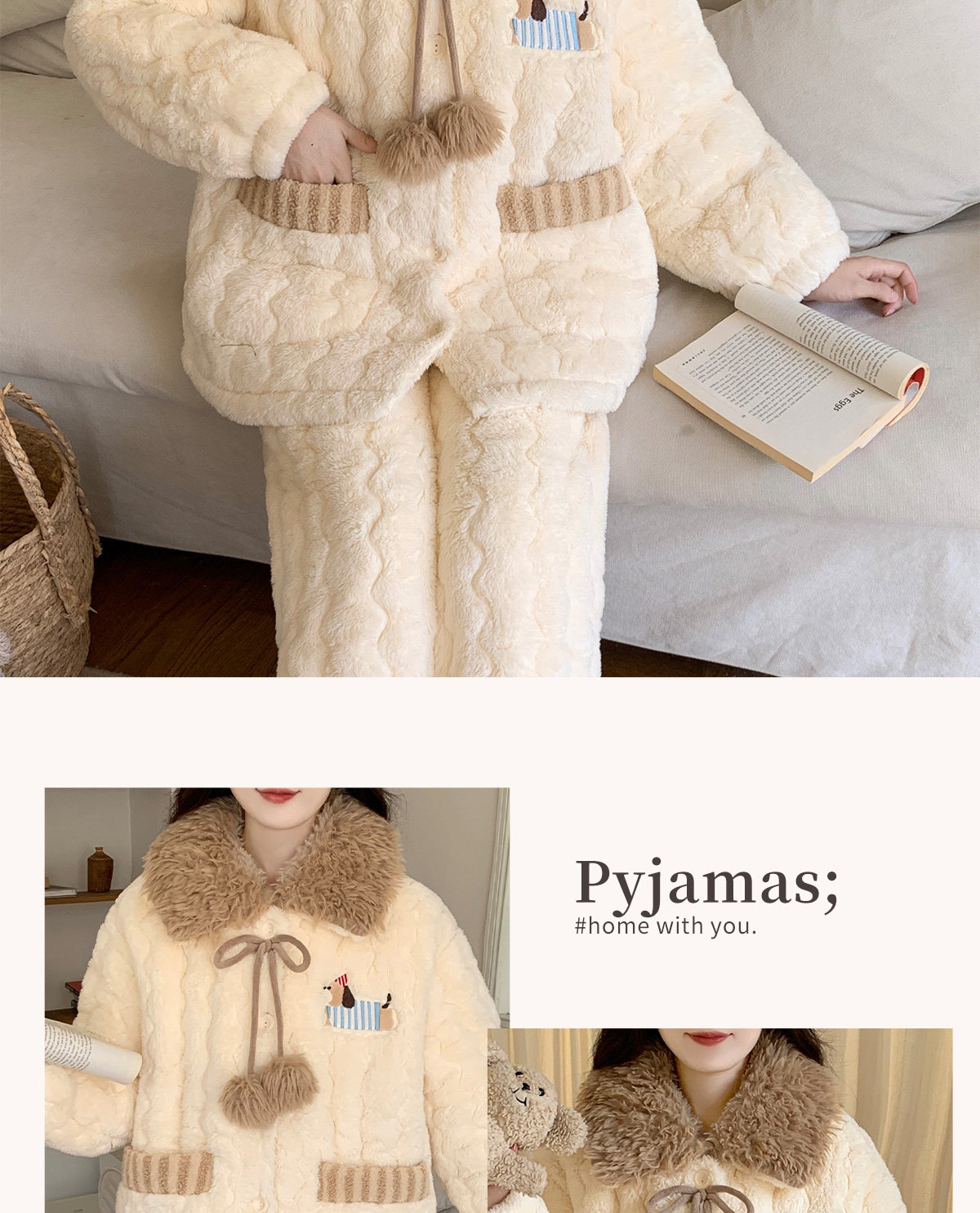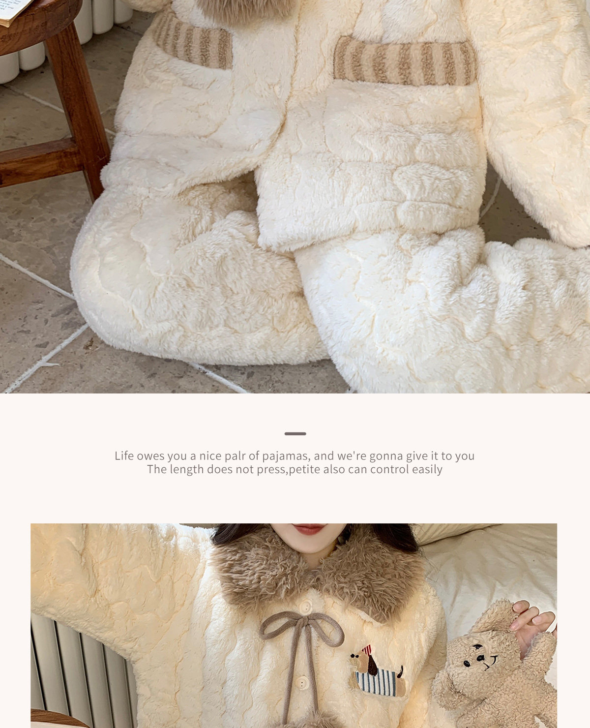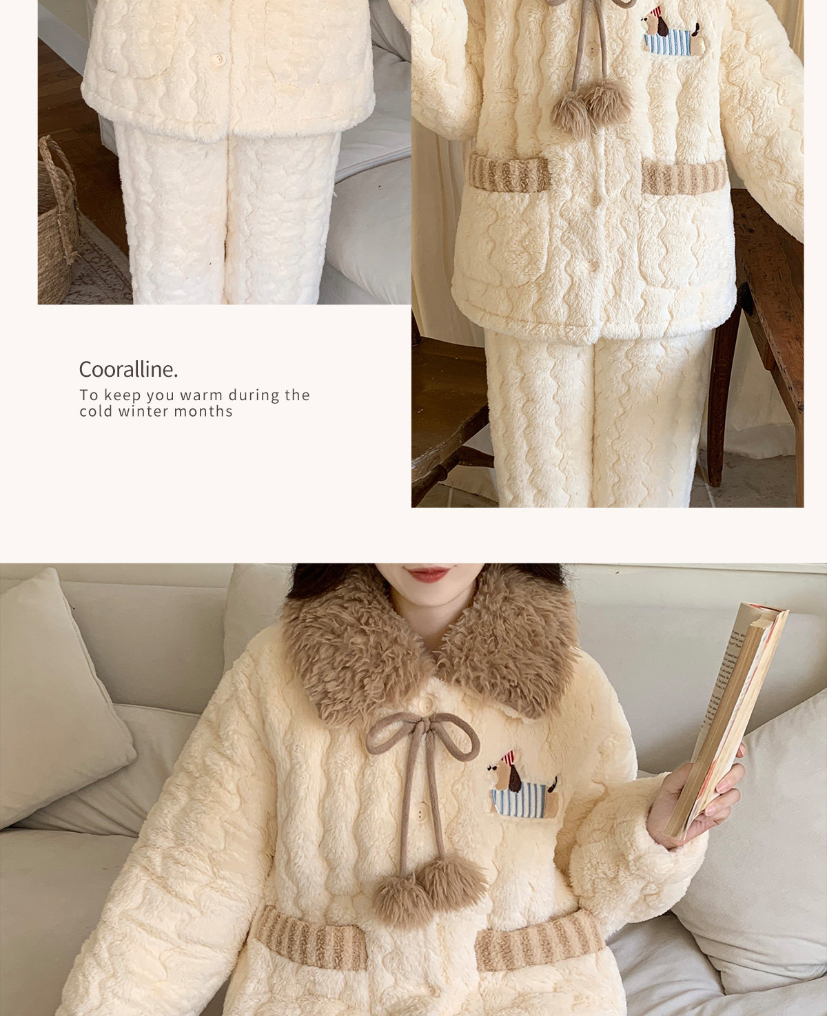 2026 New Autumn and Winter Three-Layer Quilted Dachshund Dog Pajamas for Women, Fleece-Lined and Thickened Coral Fleece Set, Loungewear