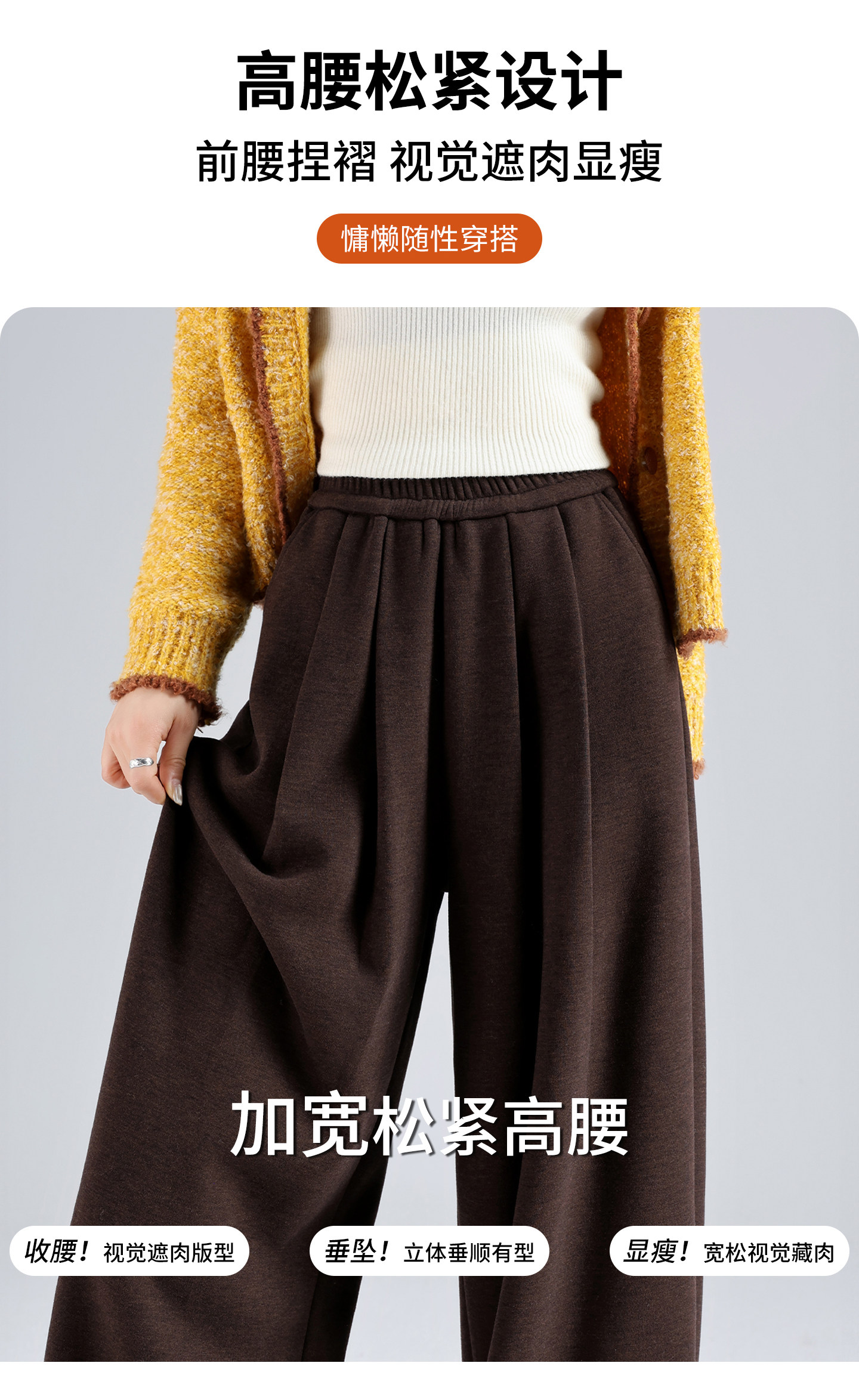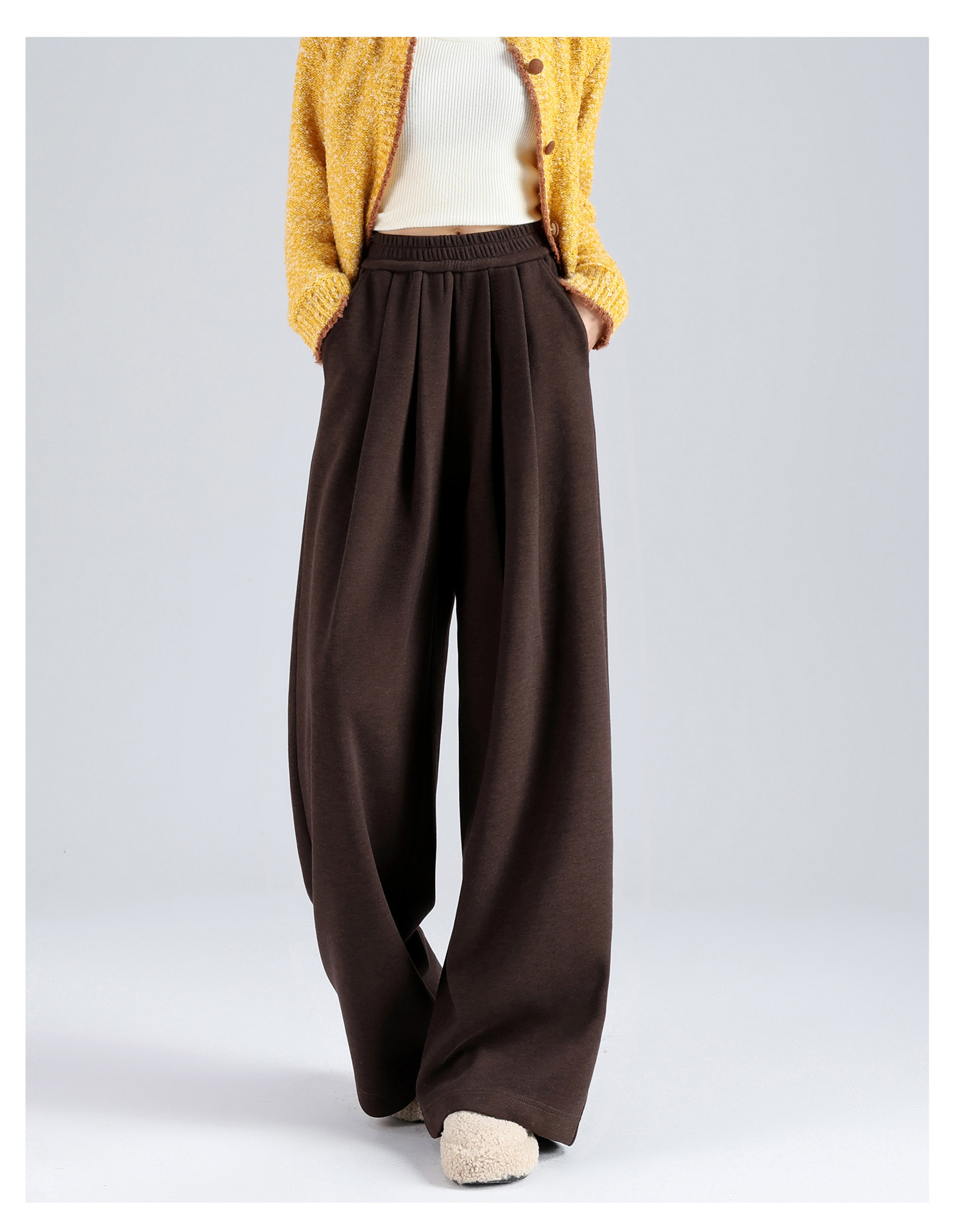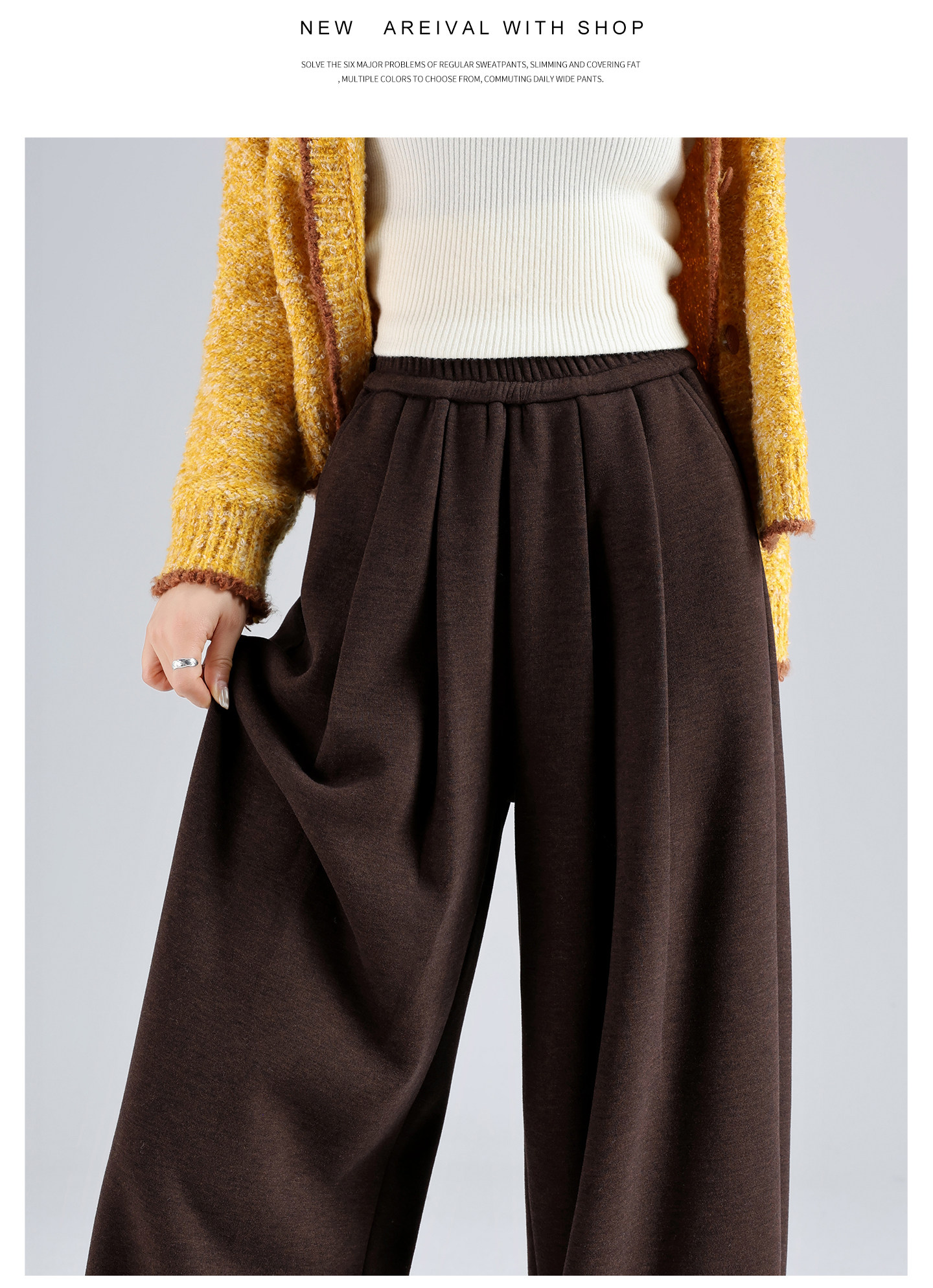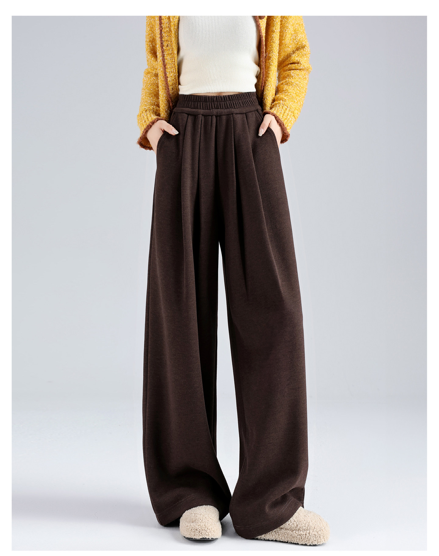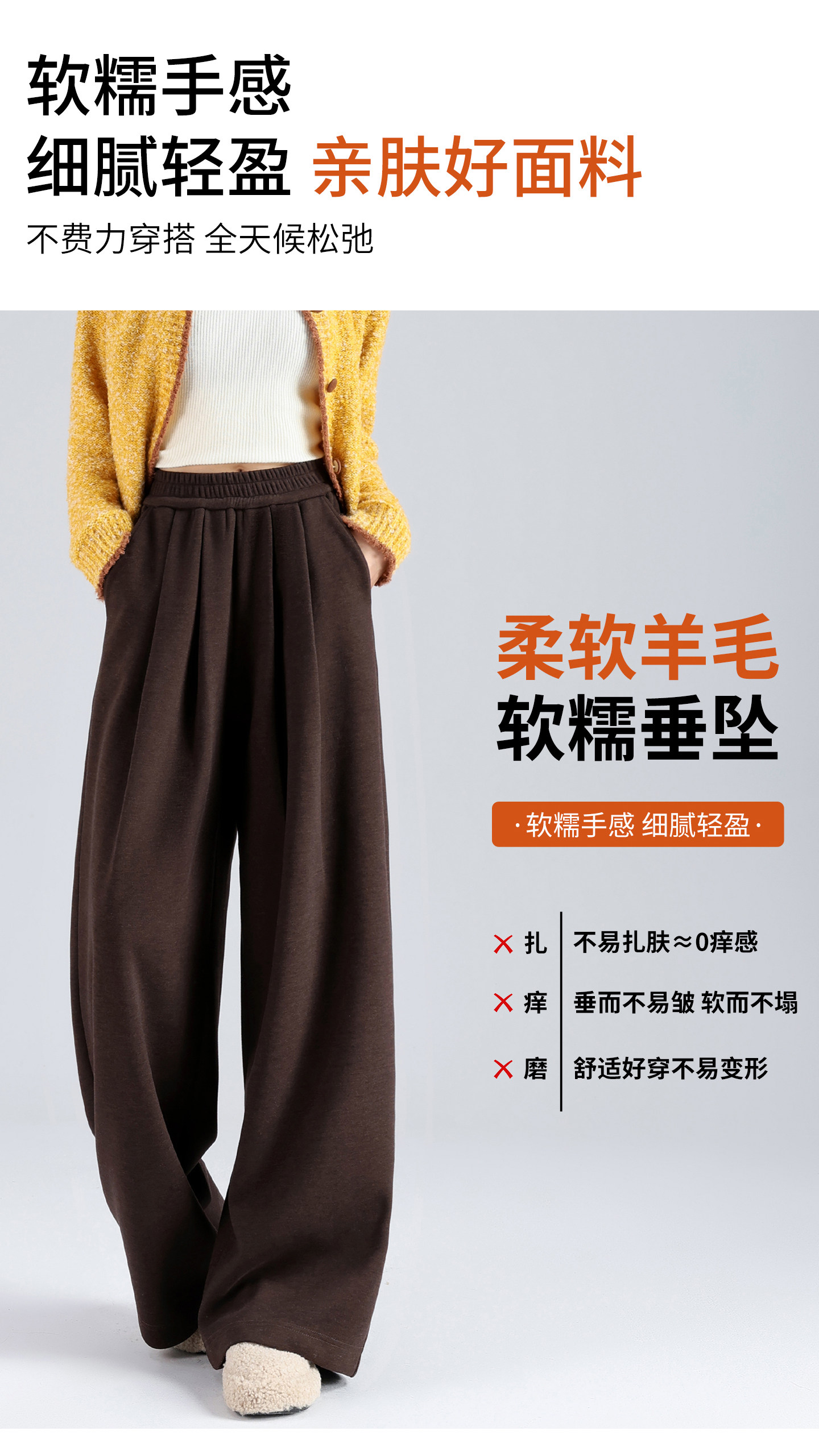Wool wide-leg pants for women in autumn and winter plus velvet 2026 new coffee color Maillard loose straight casual glutinous rice pants
