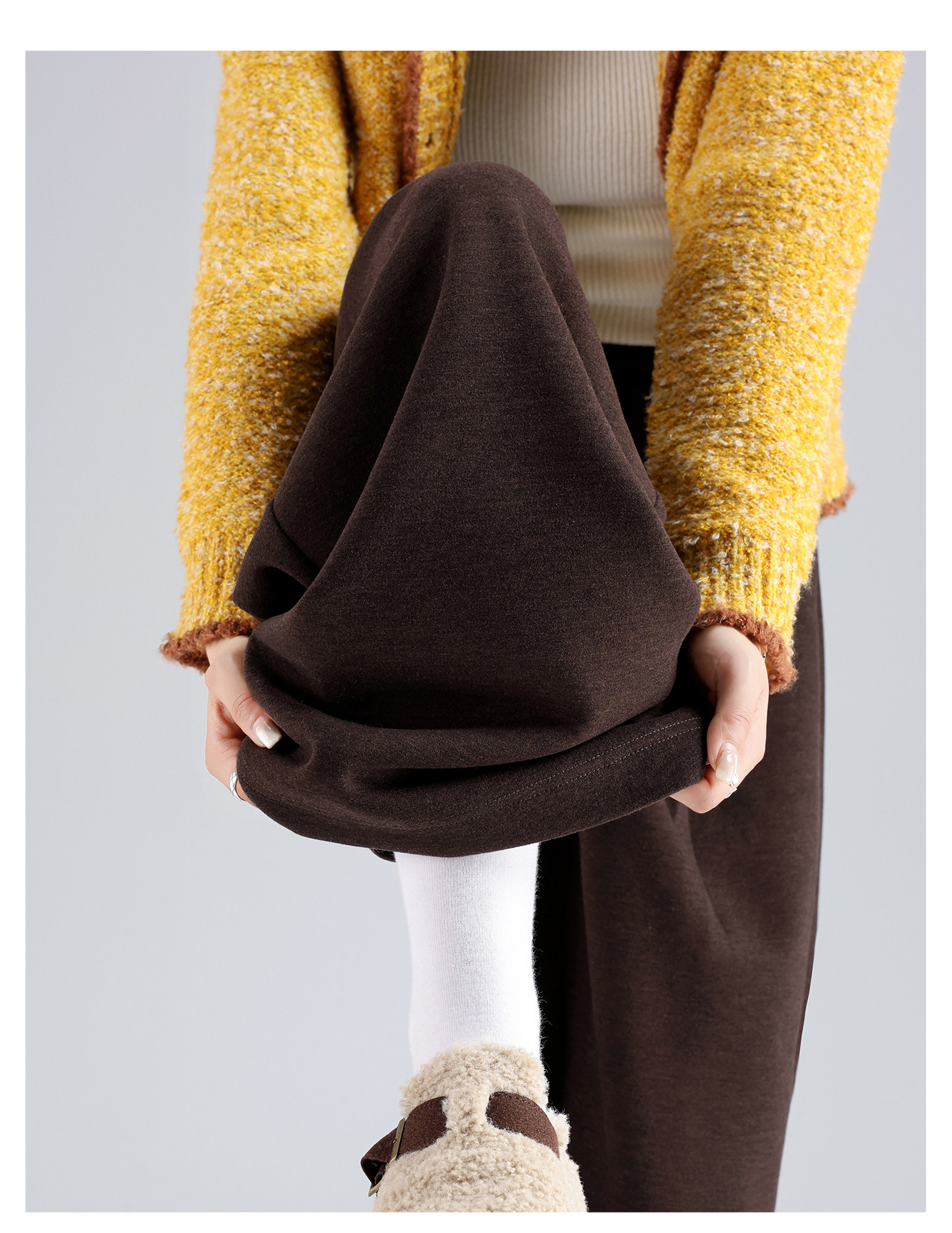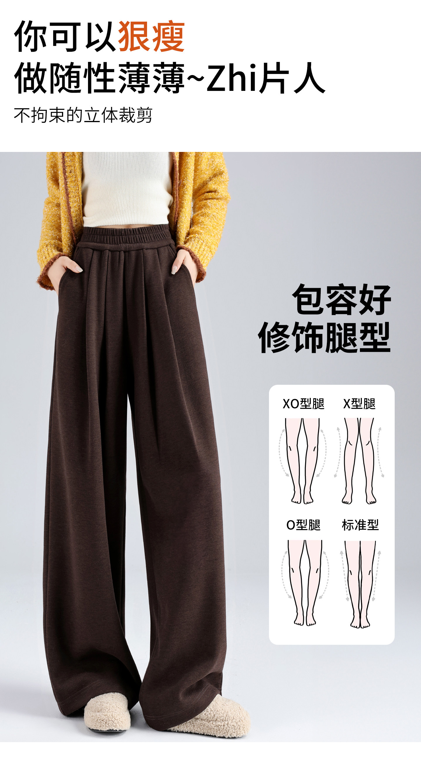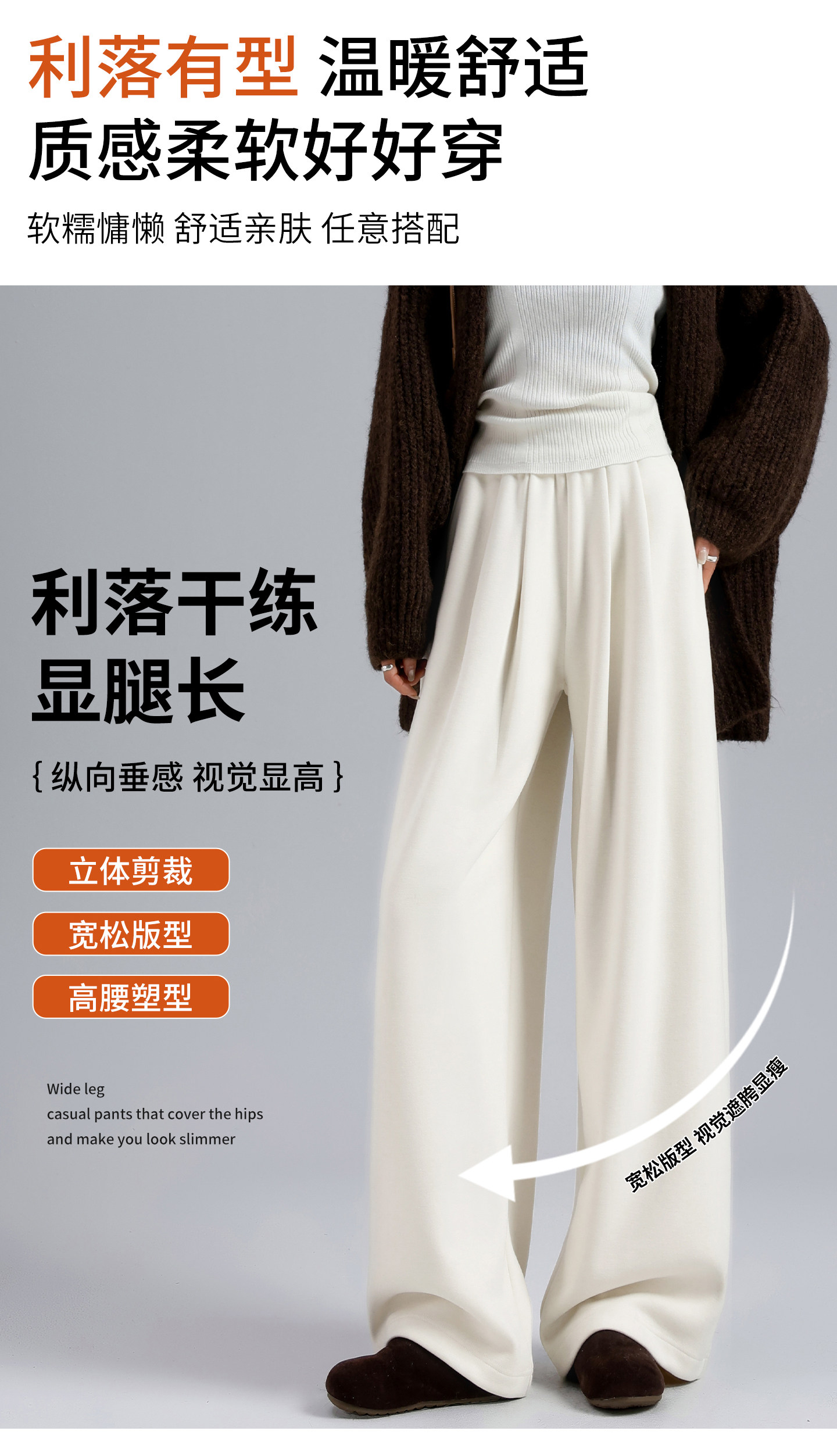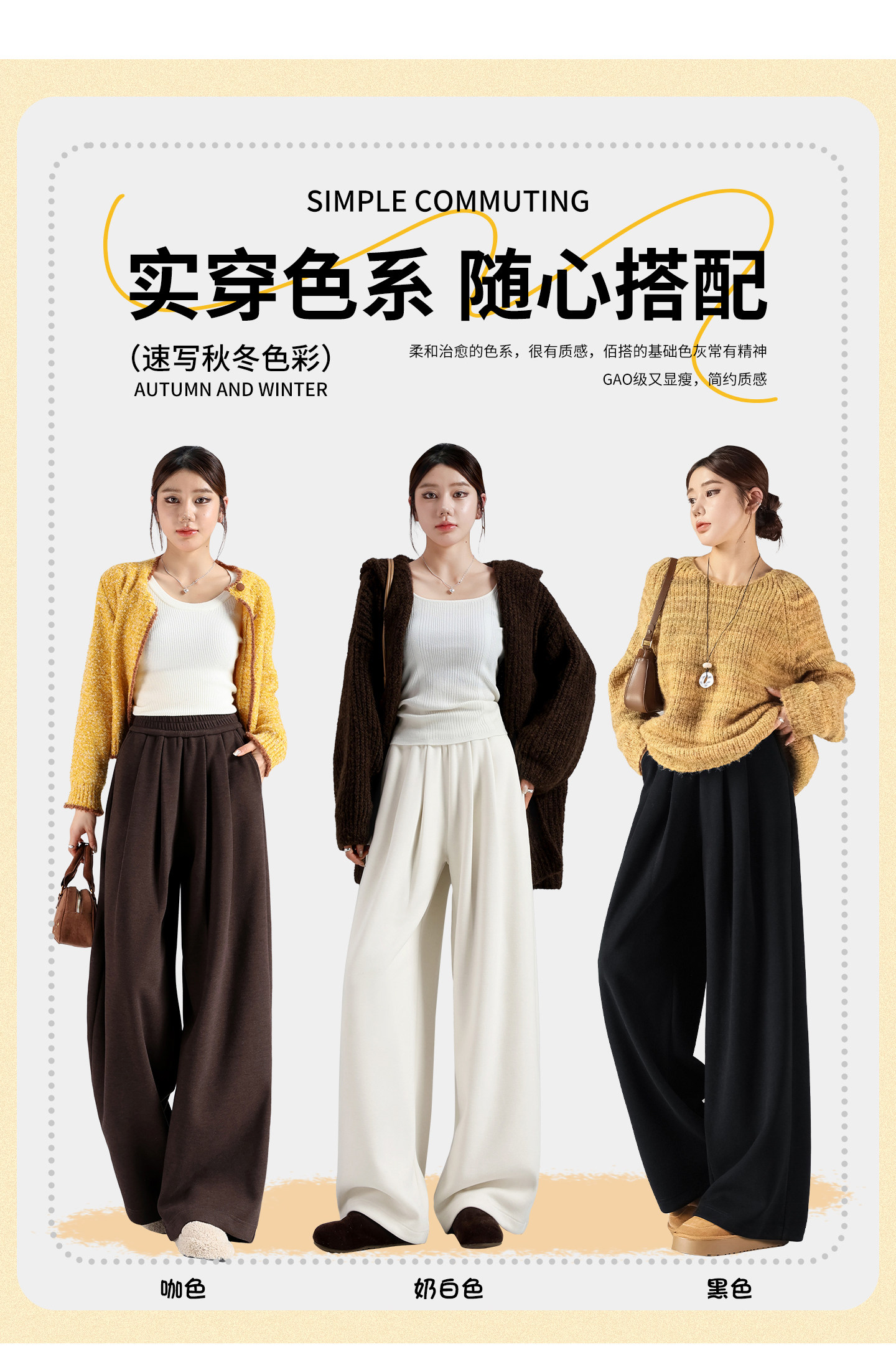 Wool wide-leg pants for women in autumn and winter plus velvet 2026 new coffee color Maillard loose straight casual glutinous rice pants