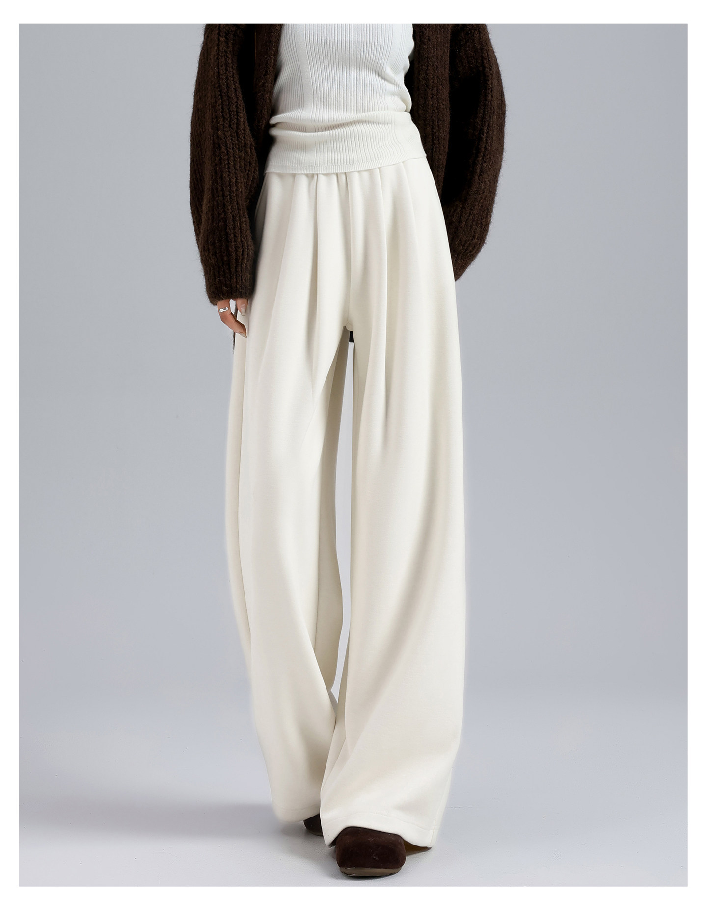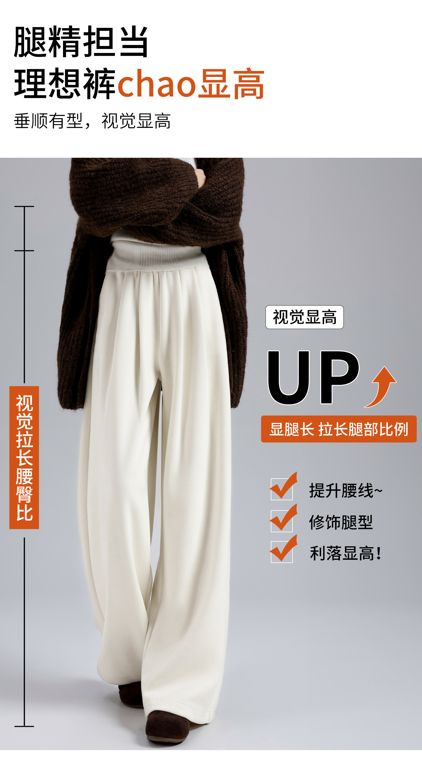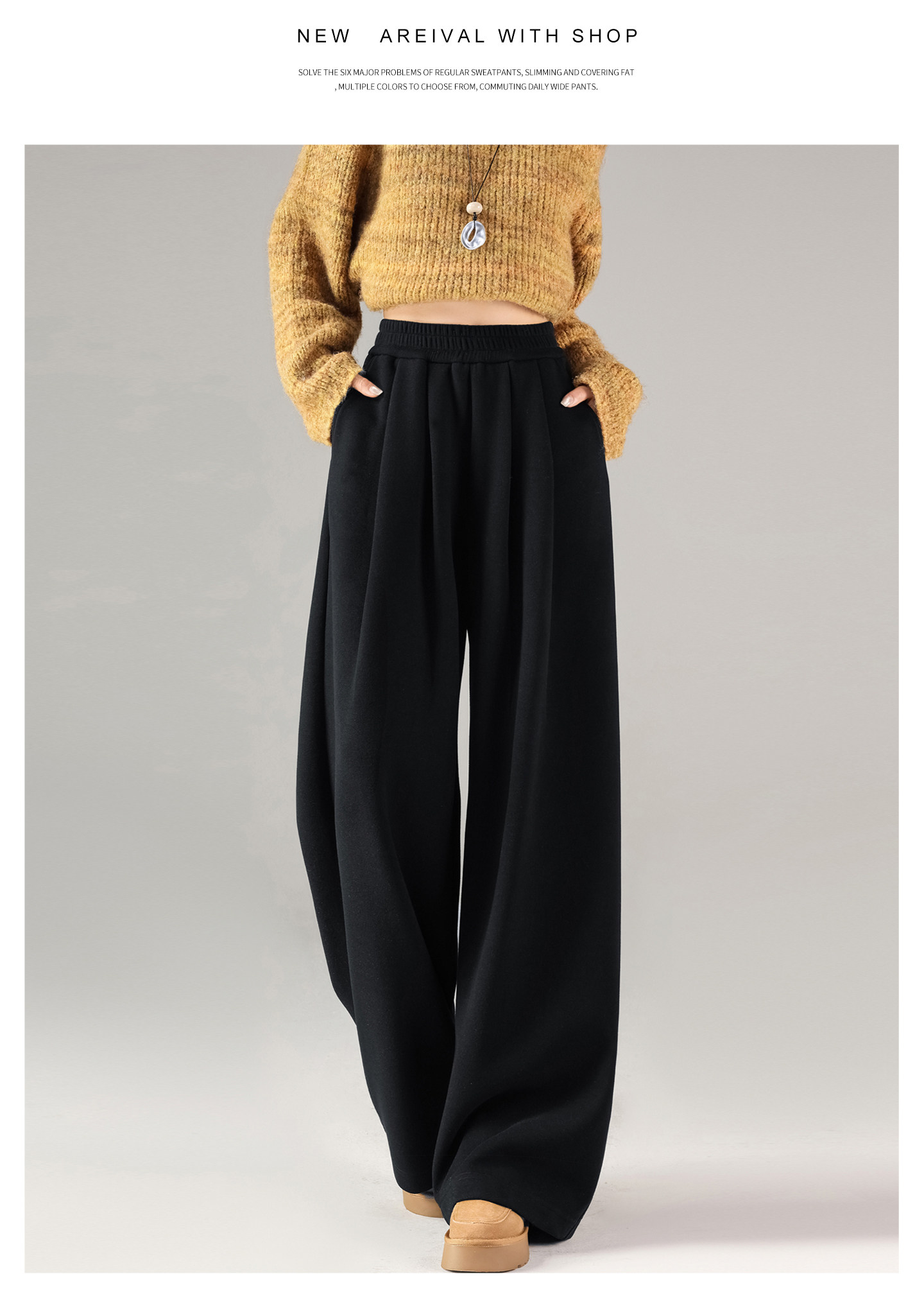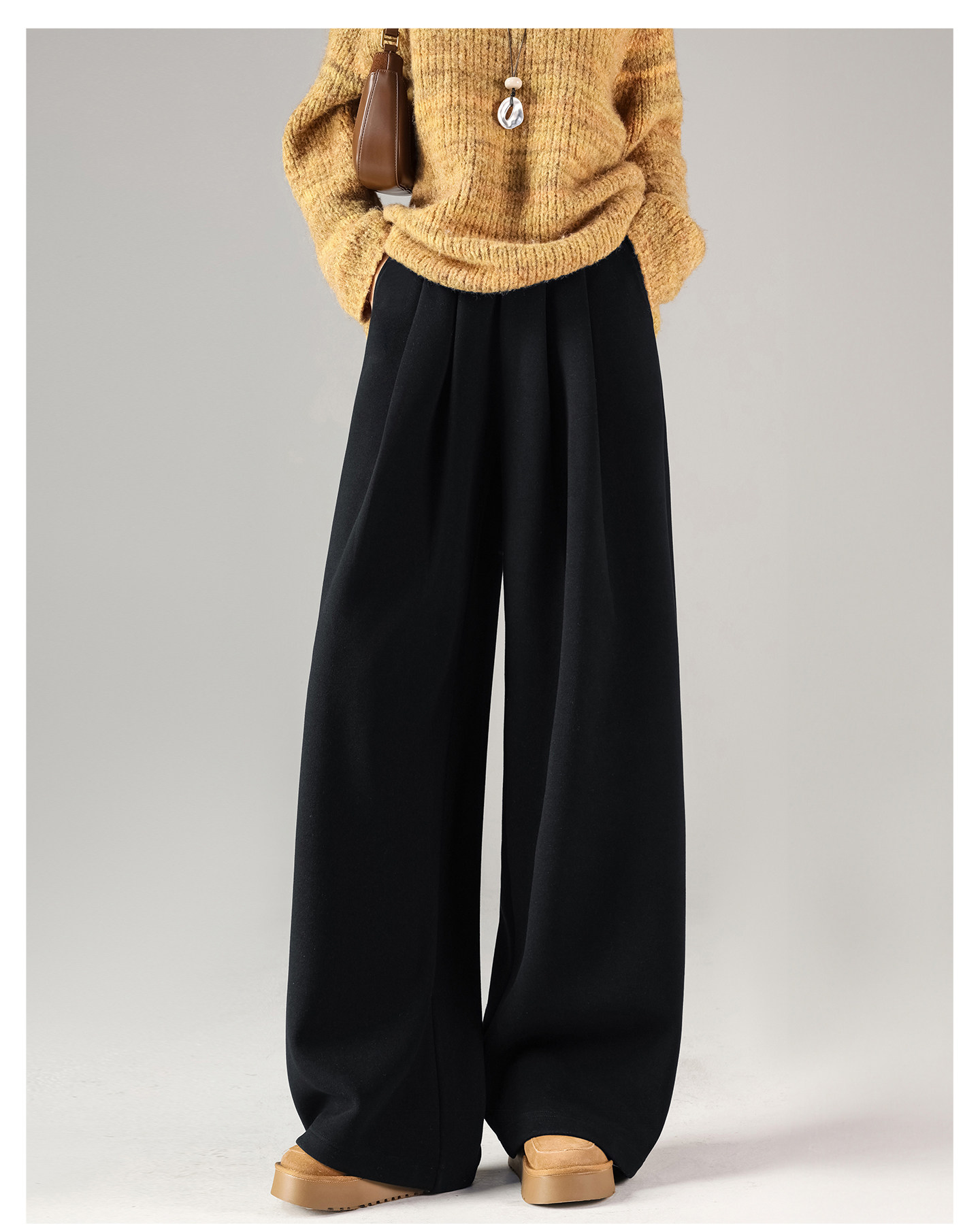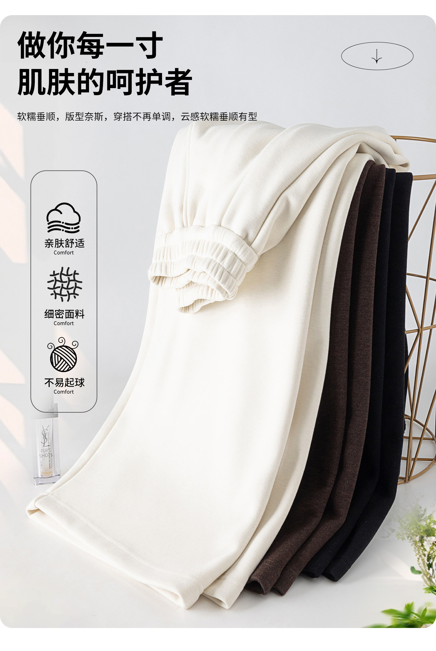Wool wide-leg pants for women in autumn and winter plus velvet 2026 new coffee color Maillard loose straight casual glutinous rice pants