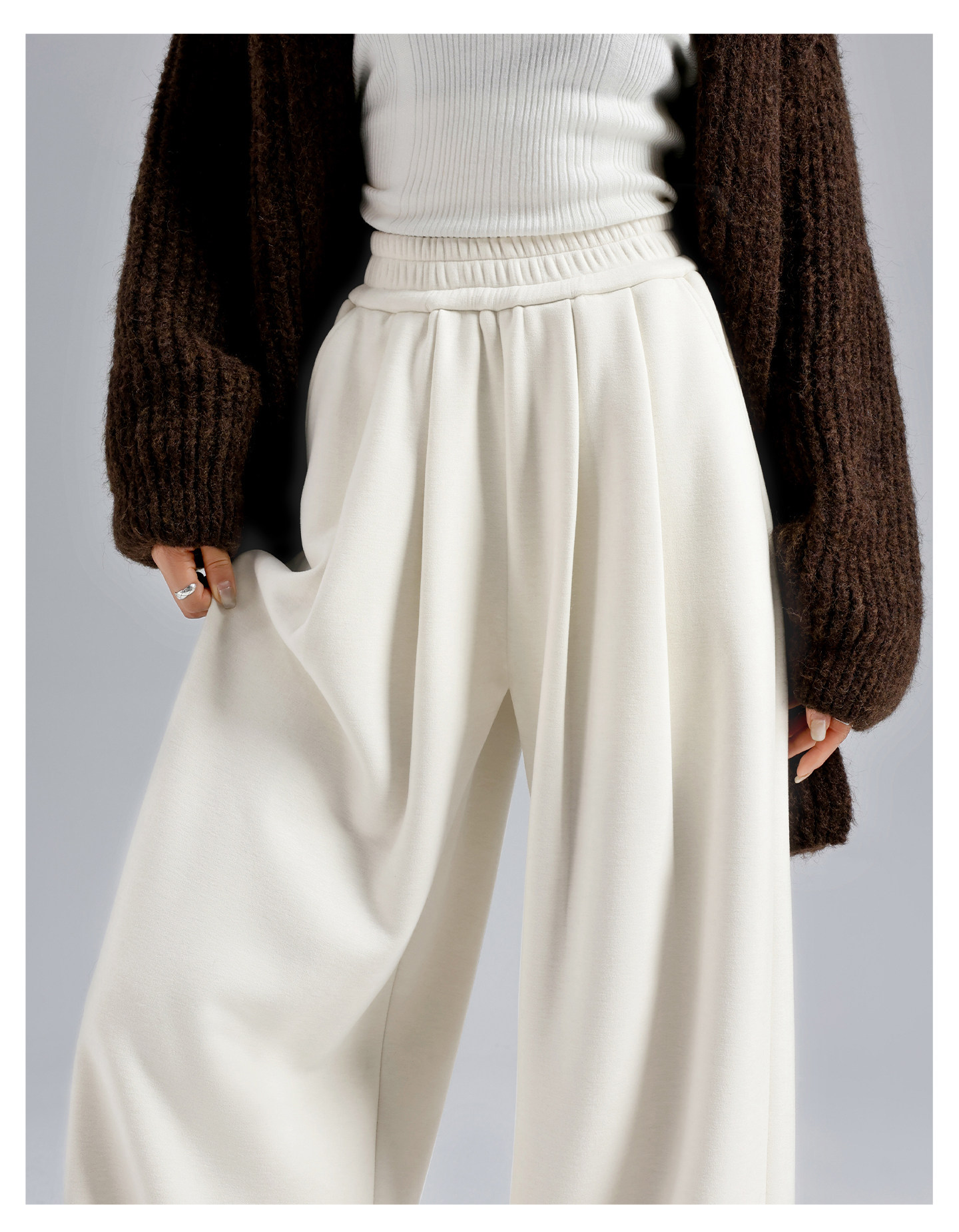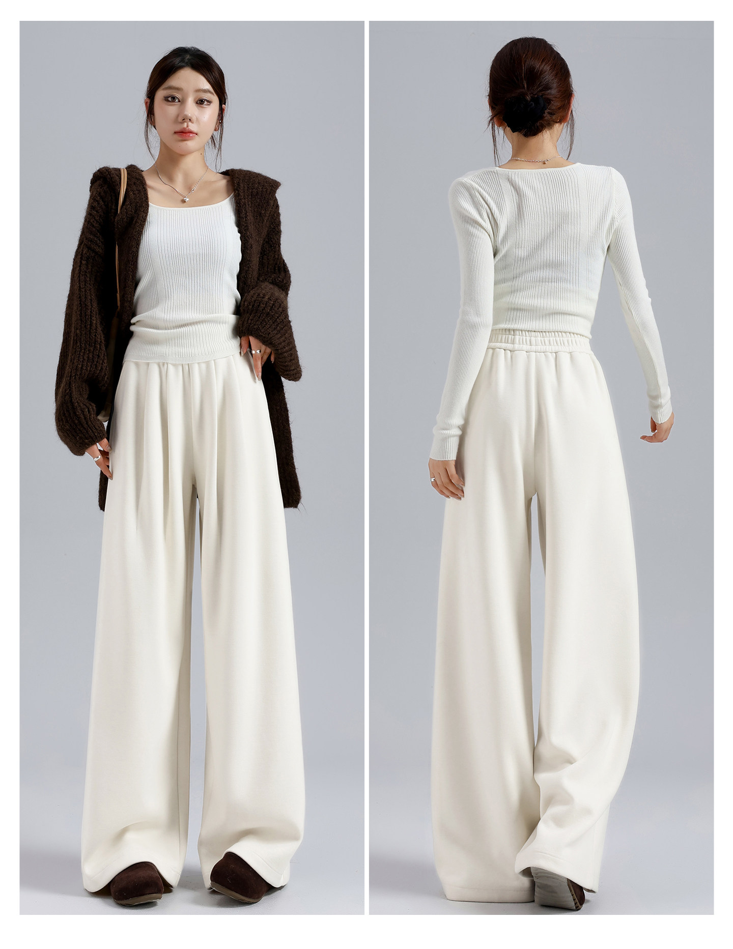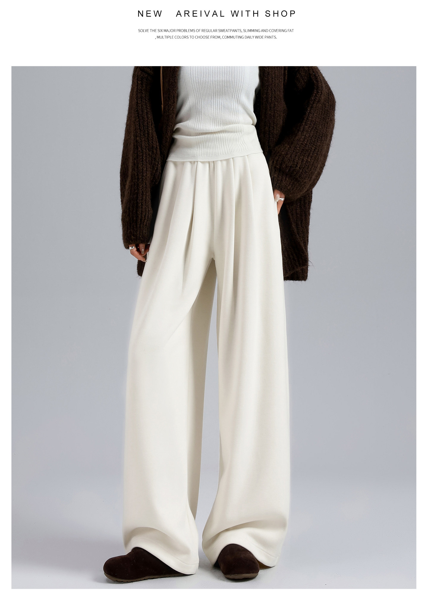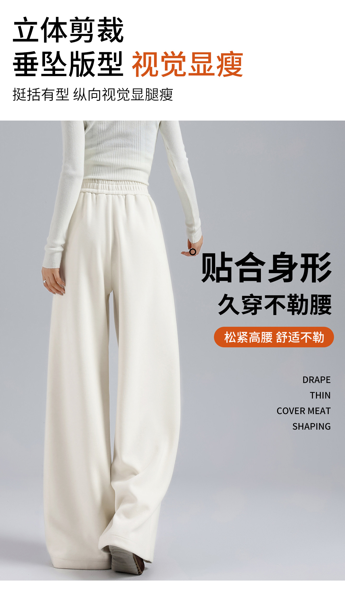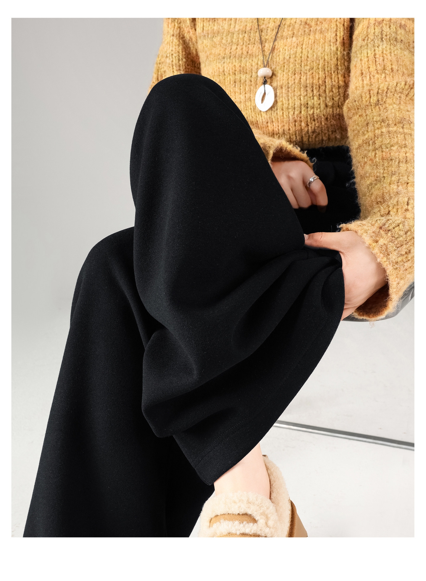 Wool wide-leg pants for women in autumn and winter plus velvet 2026 new coffee color Maillard loose straight casual glutinous rice pants