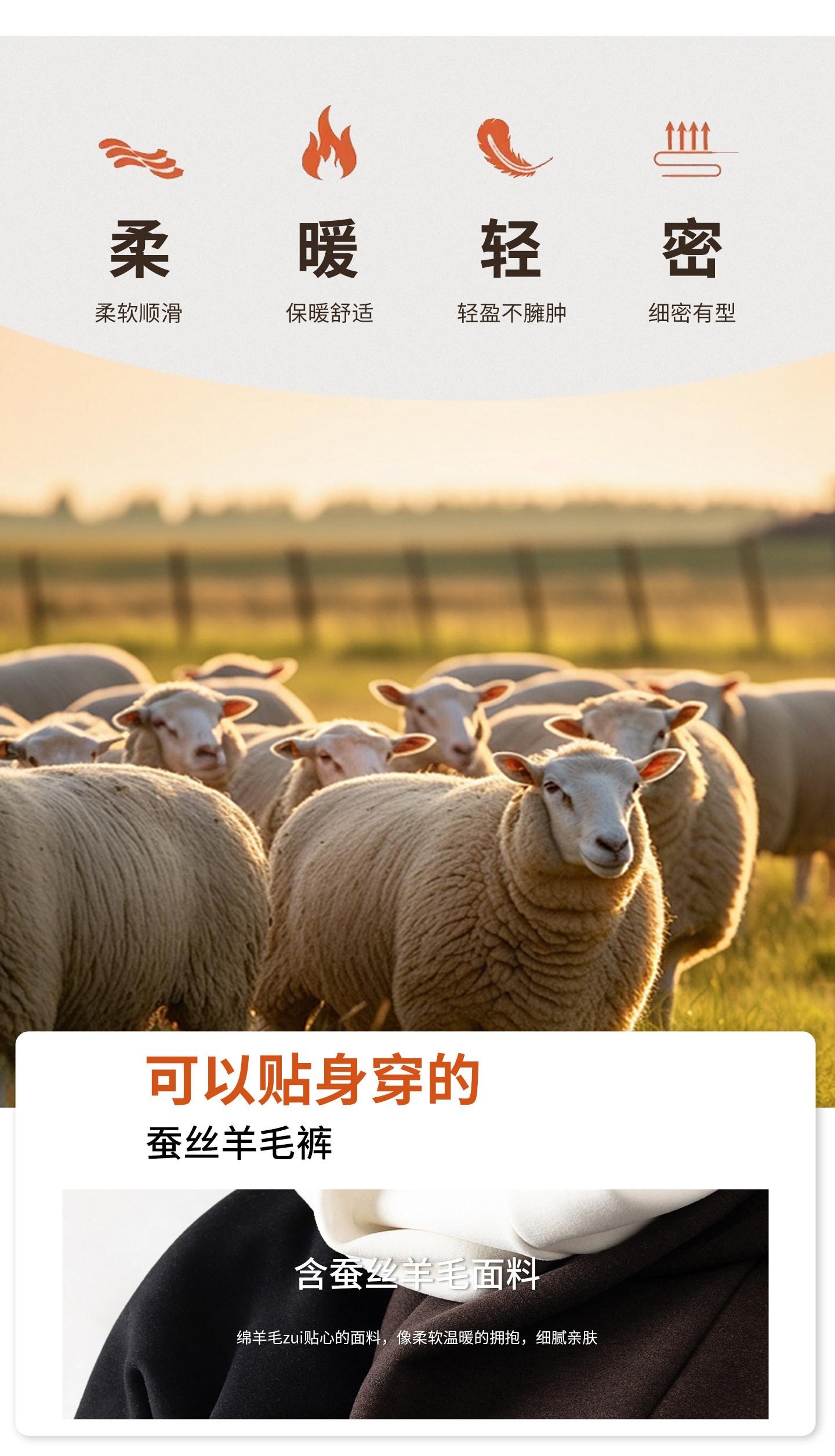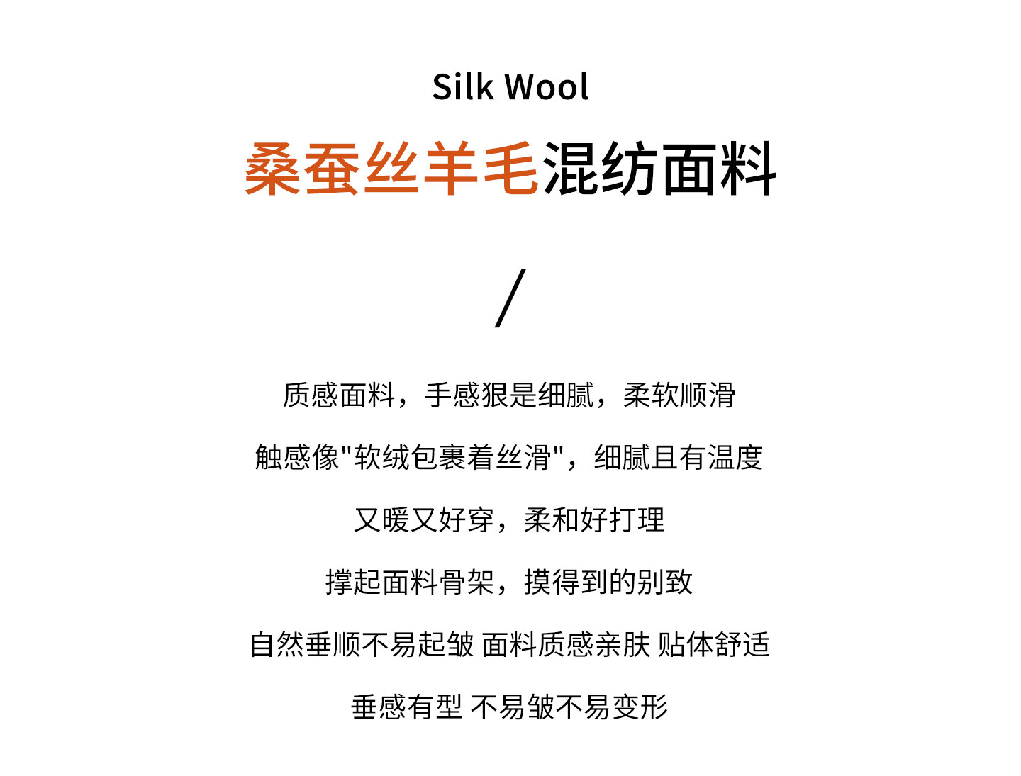 Fabric Mulberry silk,Polyurethane elastic fiber,Polyester fiber,Sheep wool,Viscose fiber
