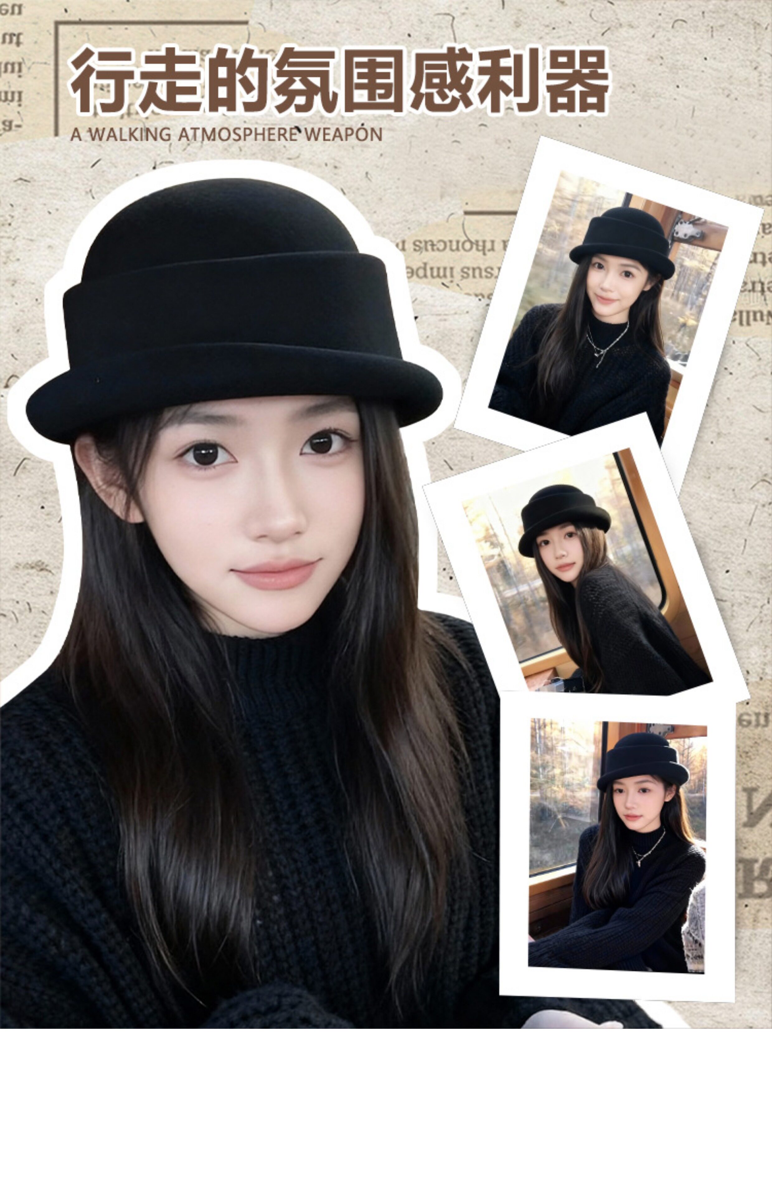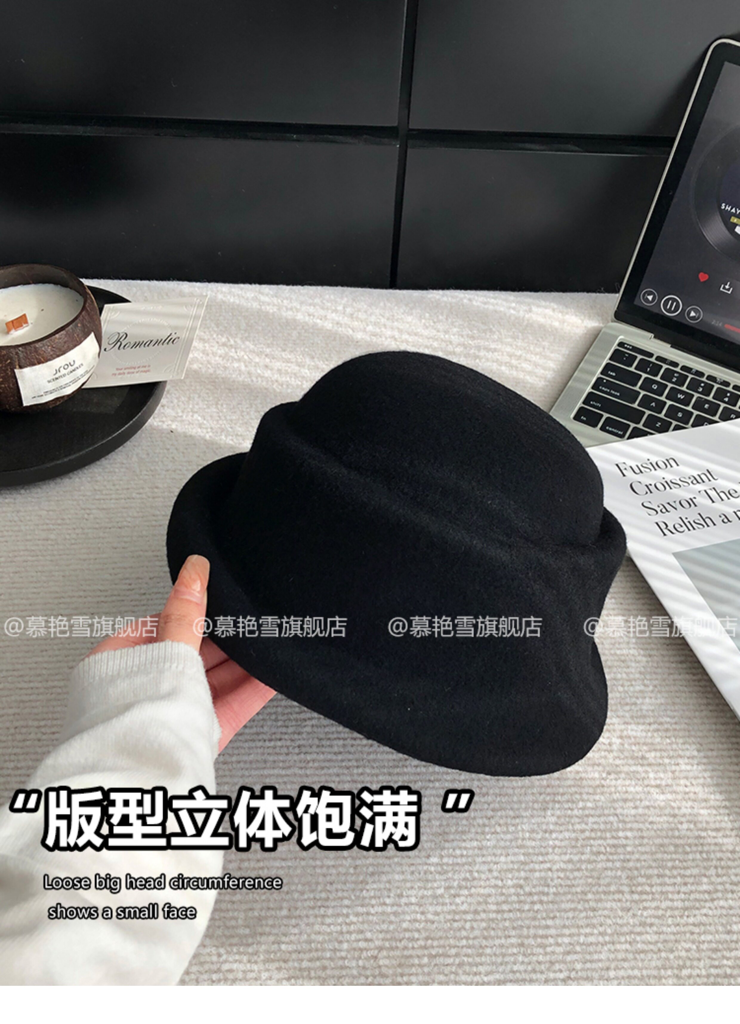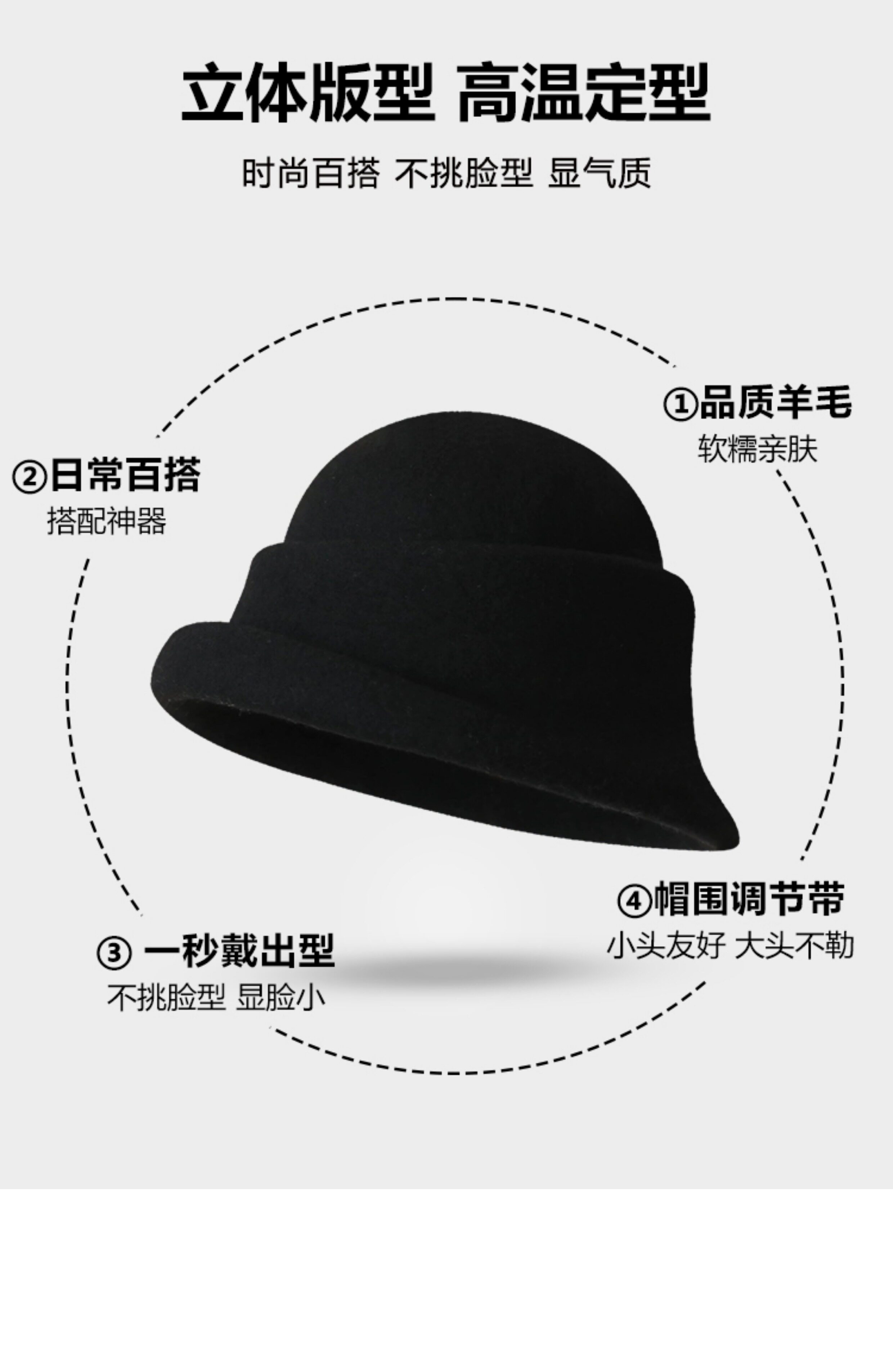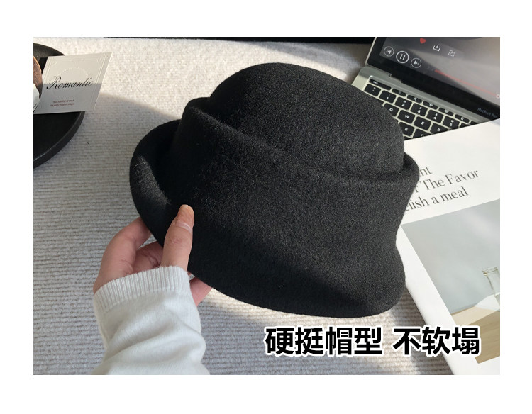 Foreign-Educated Daughter's Winter Hat, French-Style High-End Rolled-Edge Wool Fisherman's Hat, Retro and Stylish Hepburn-Style Hat