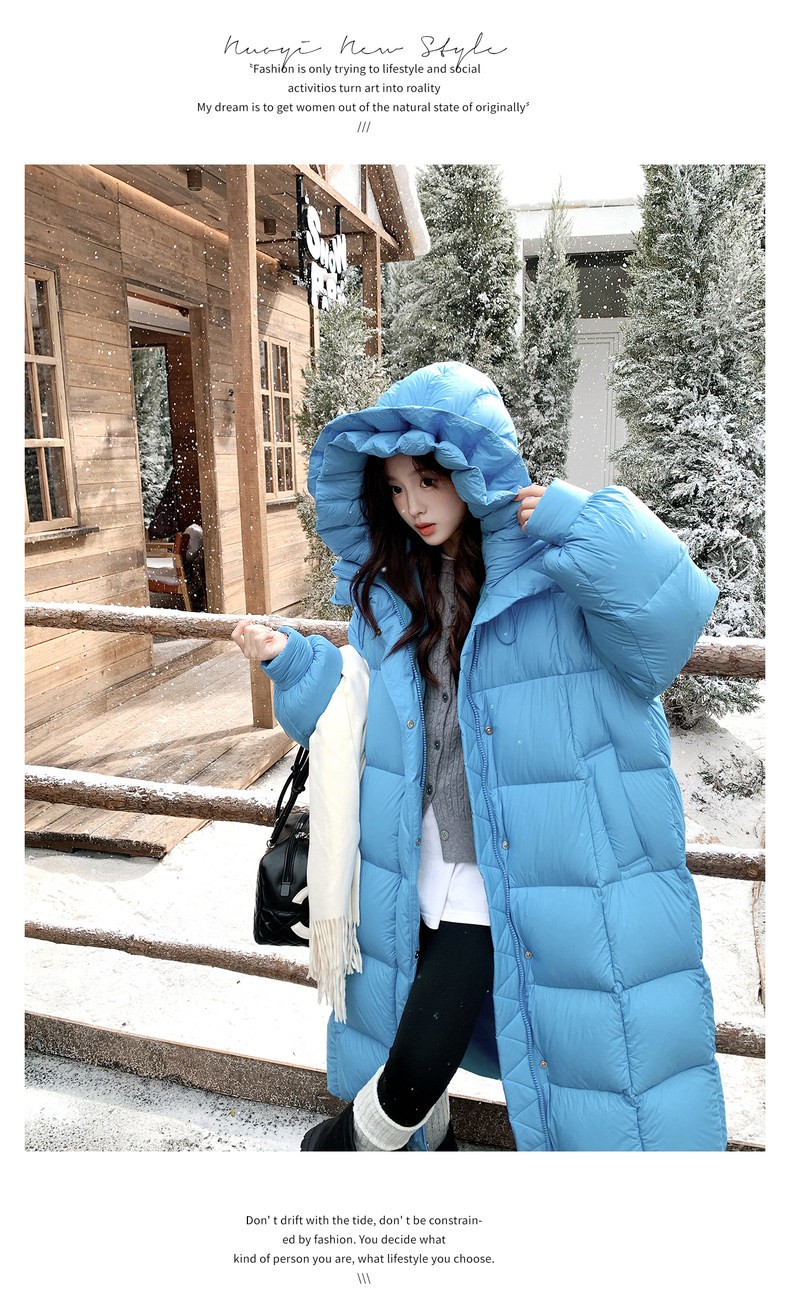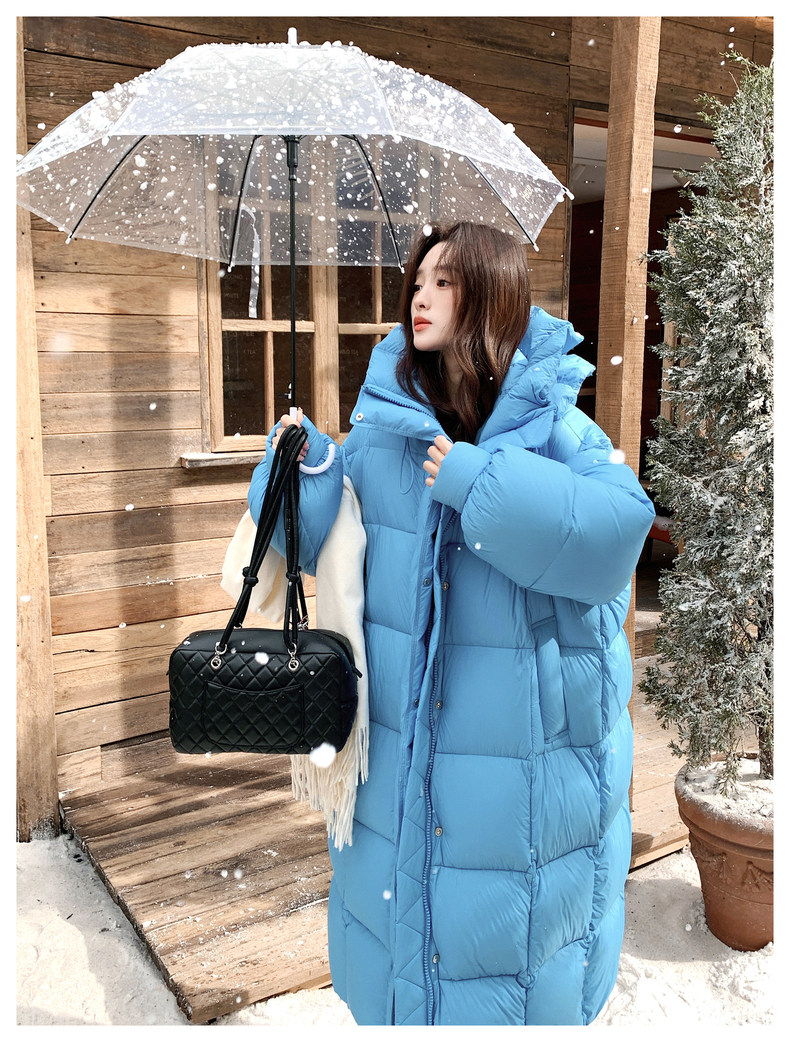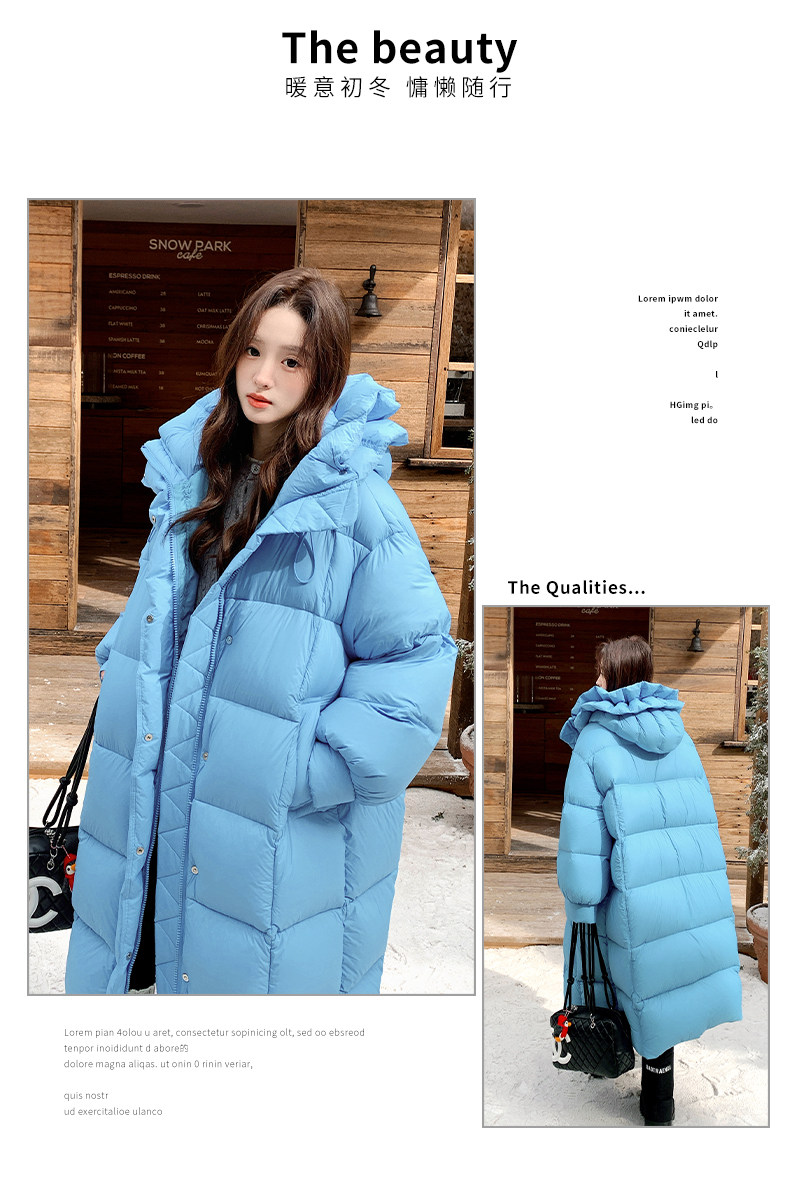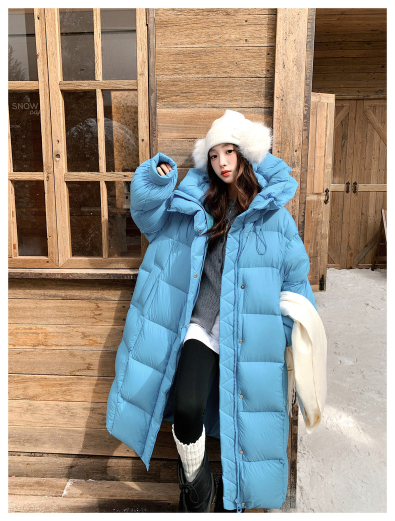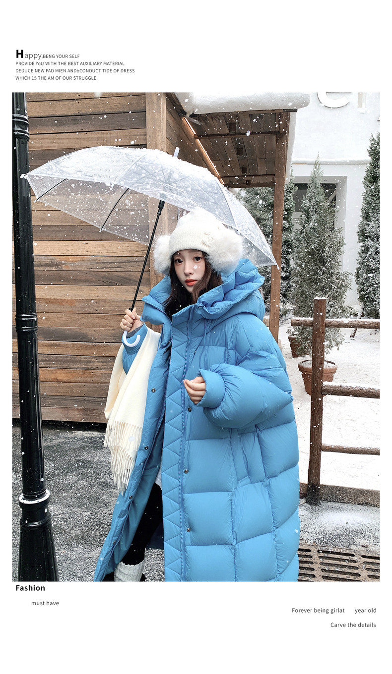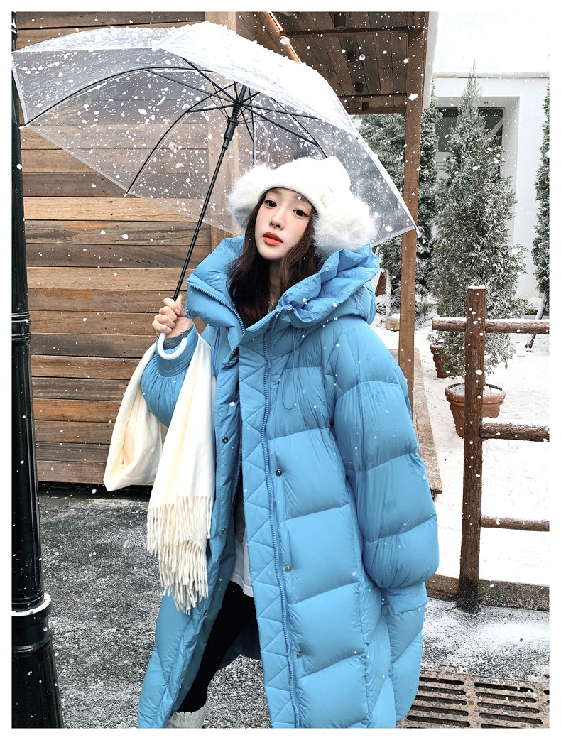 Blue hooded long warm down jacket for women winter 2025 new style non-bloated thickened bread coat warm jacket