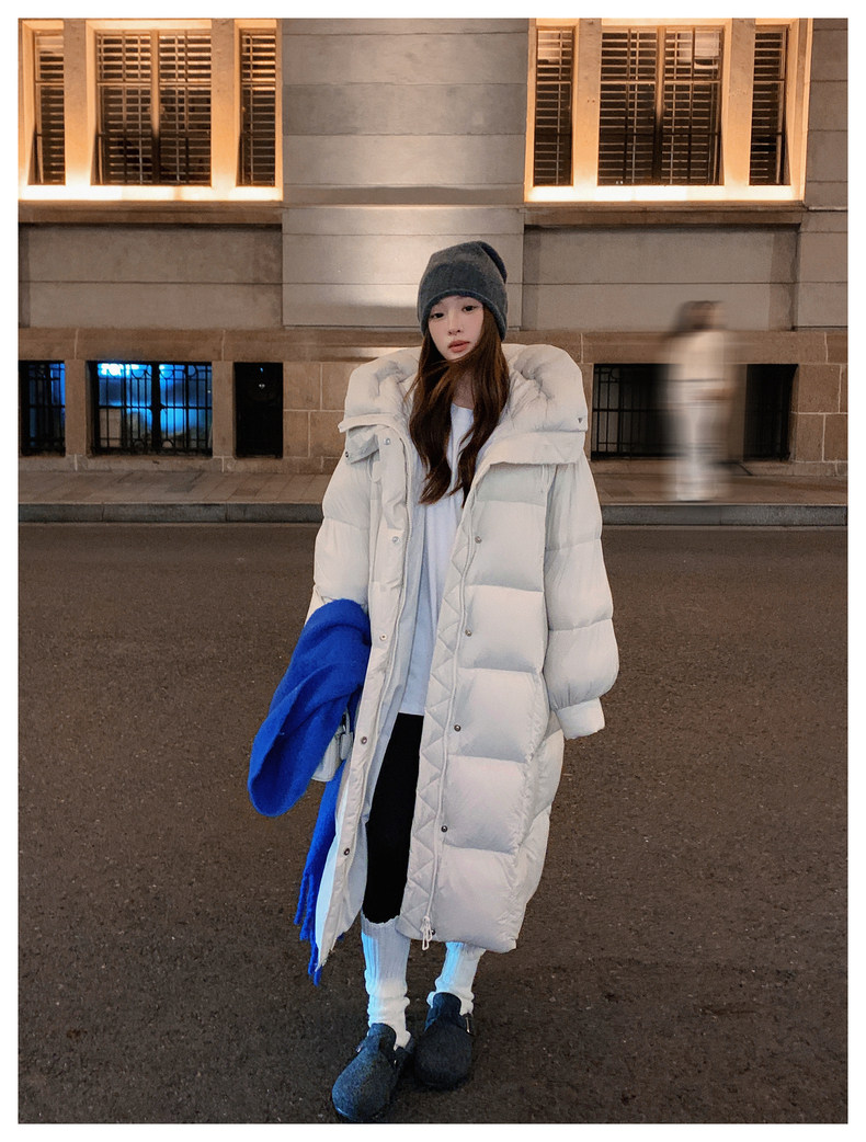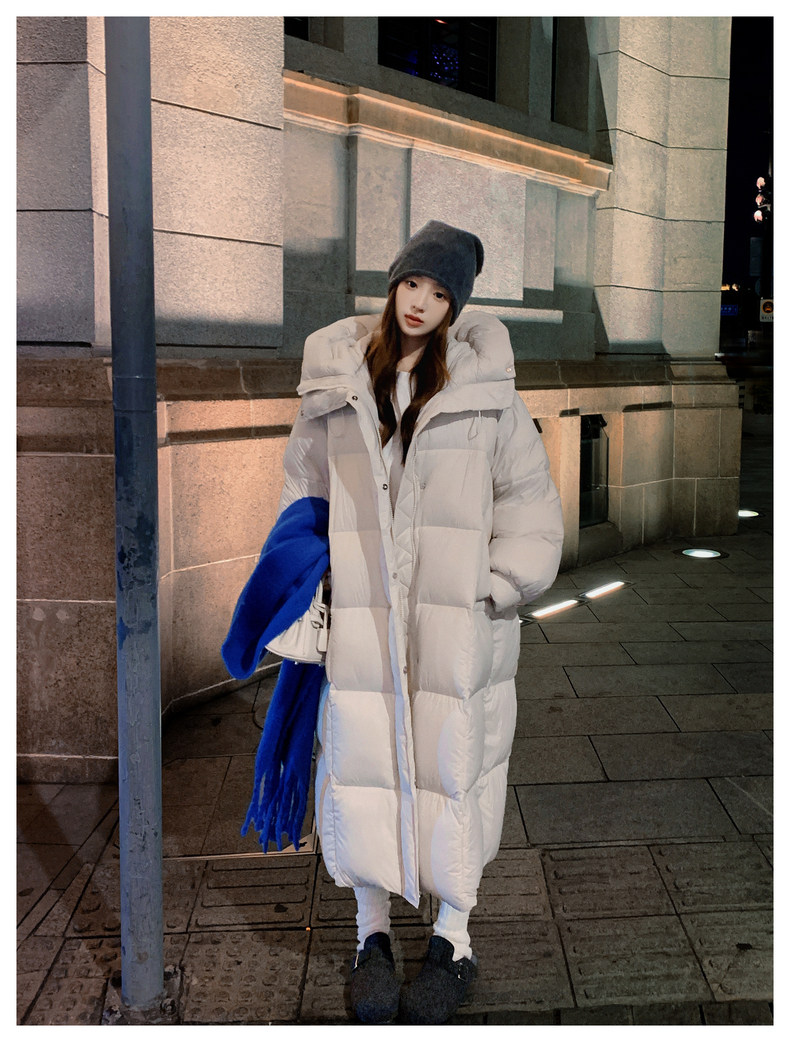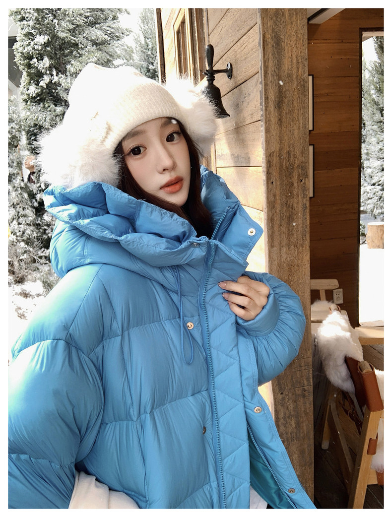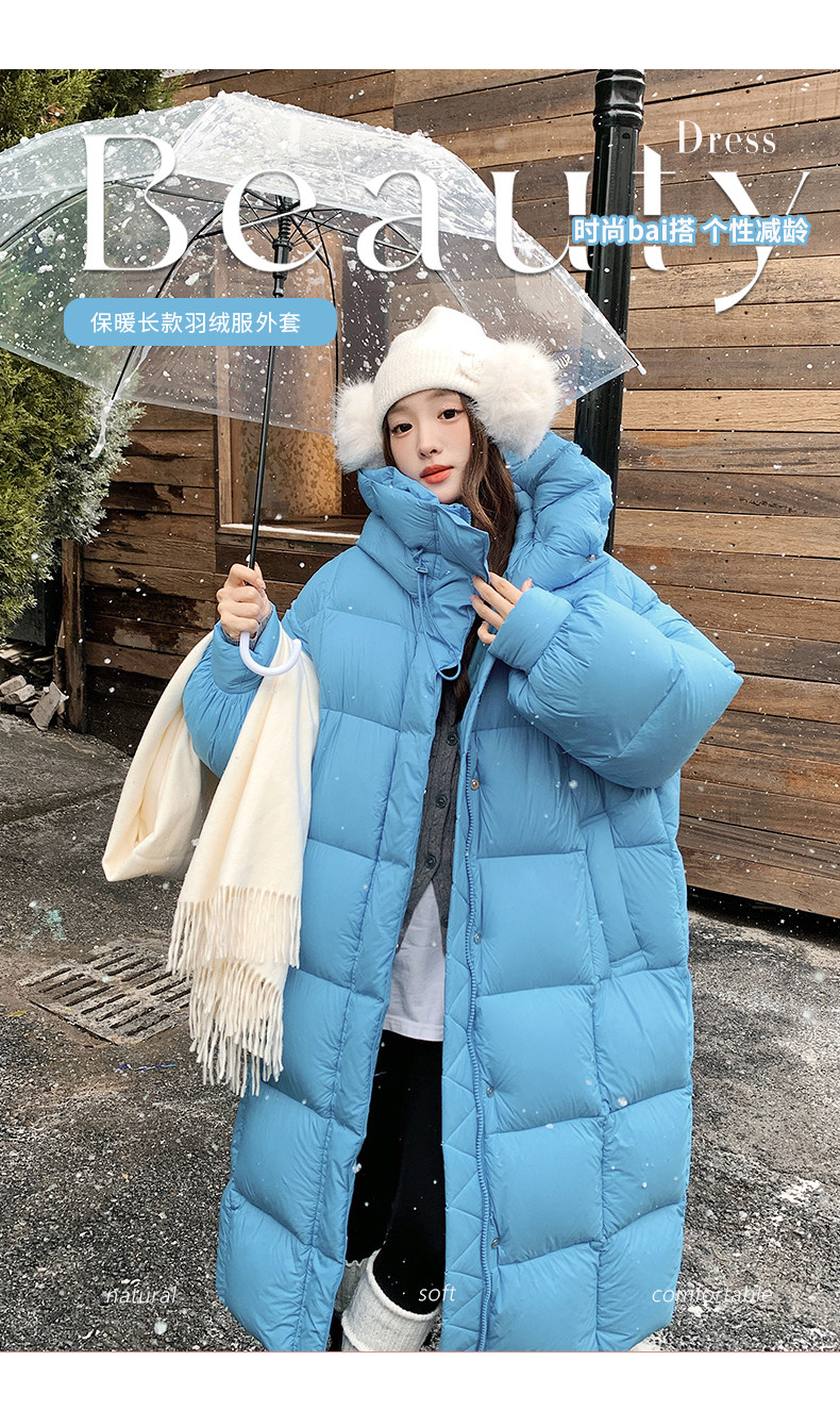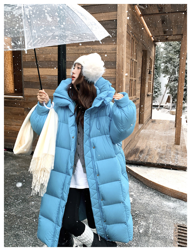 Blue hooded long warm down jacket for women winter 2025 new style non-bloated thickened bread coat warm jacket