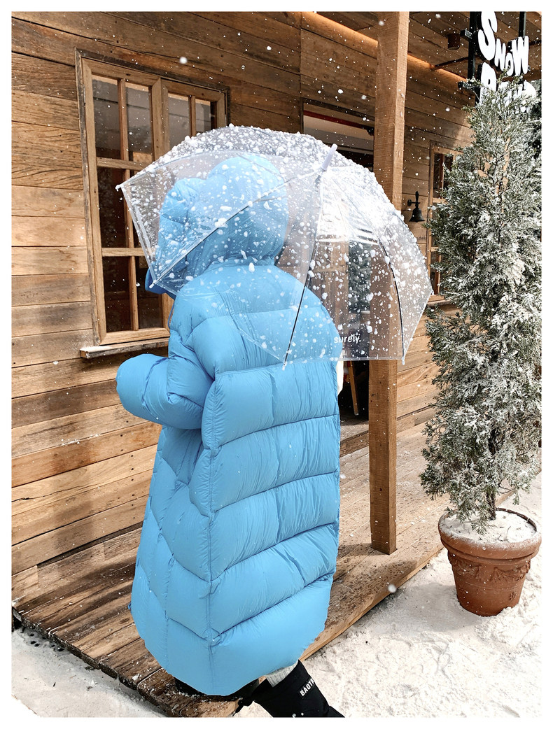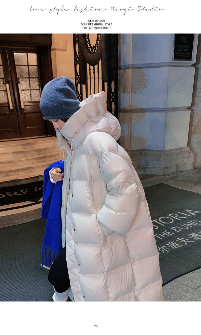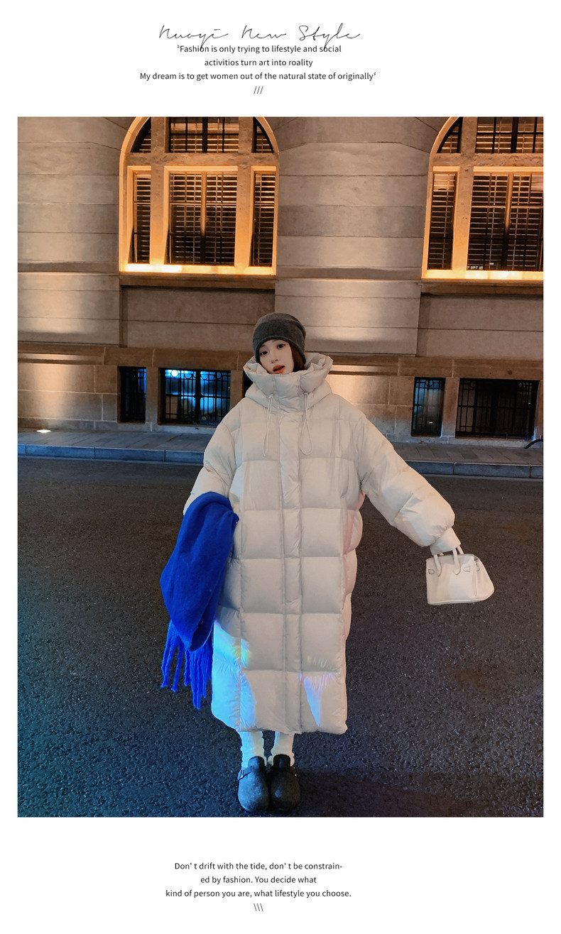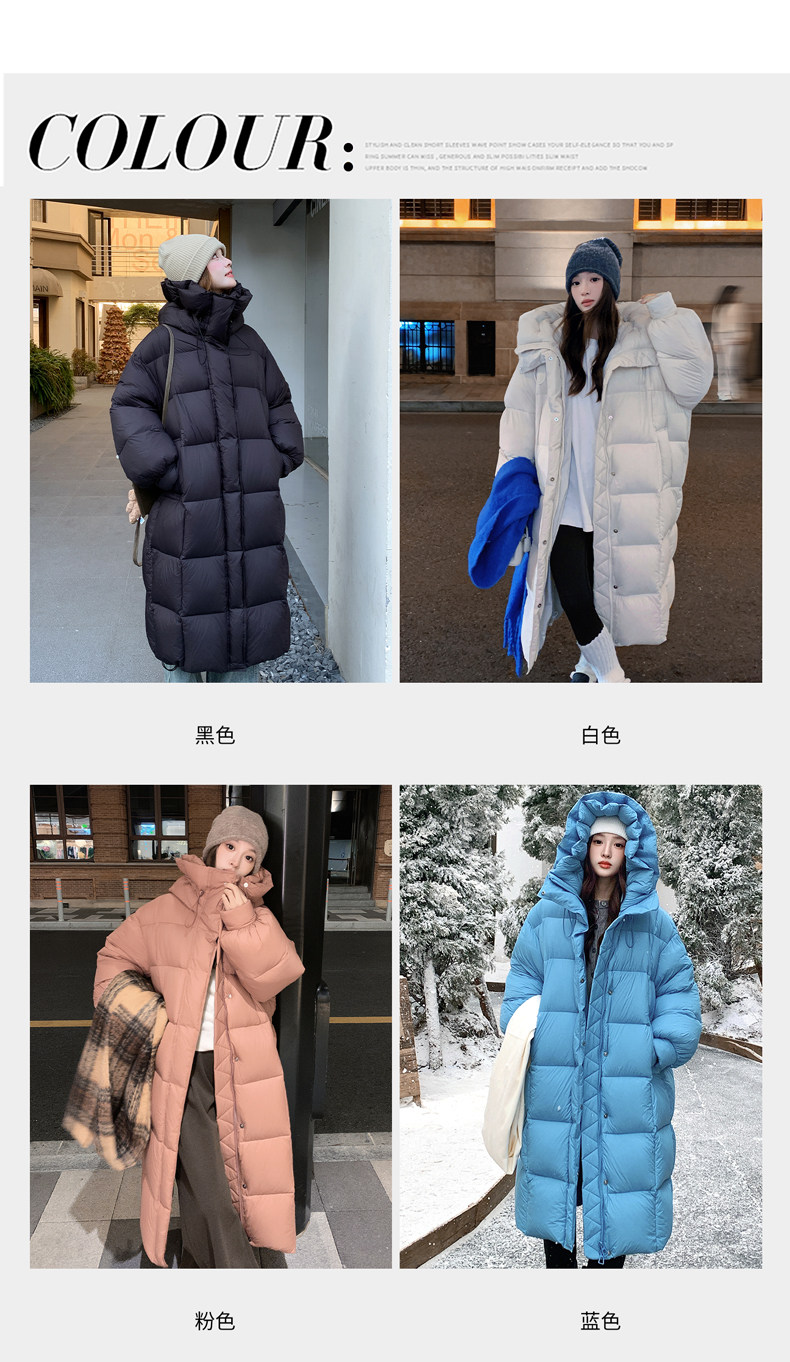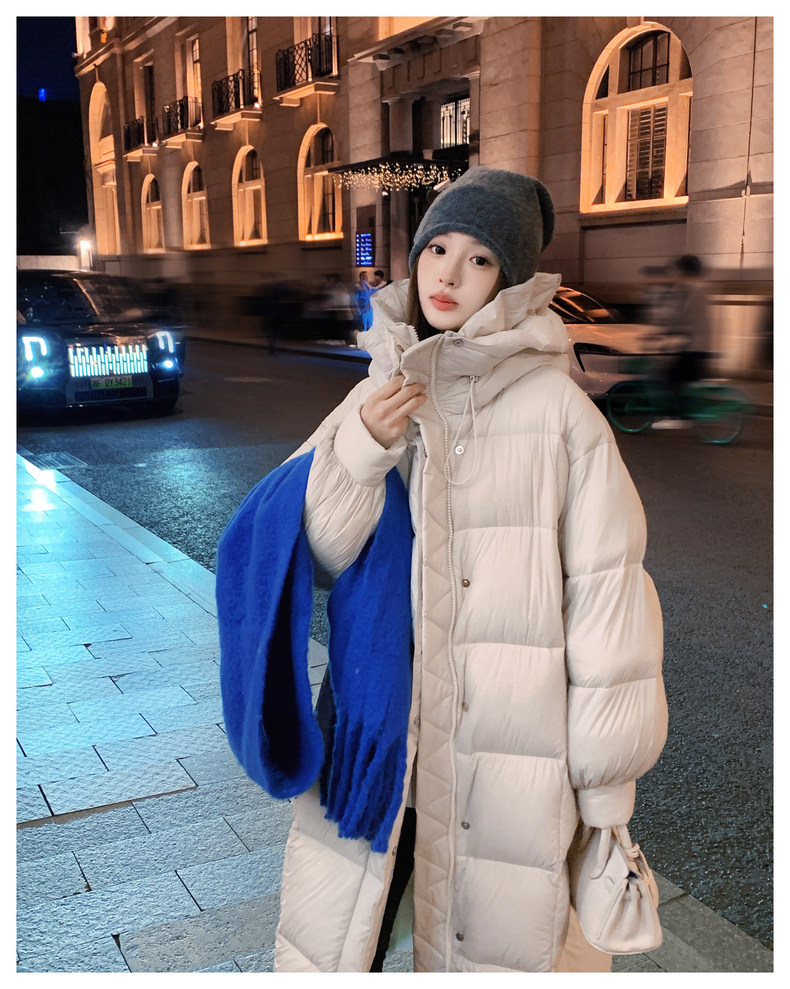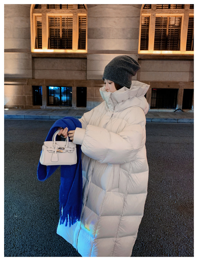 Blue hooded long warm down jacket for women winter 2025 new style non-bloated thickened bread coat warm jacket