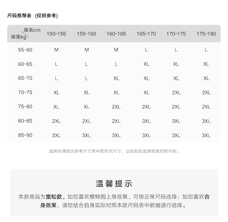 China (cm) 160-165/84-86 165-170 / 88-90 167-172 / 92-96 168-173 / 98-102 170-176 / 106-110