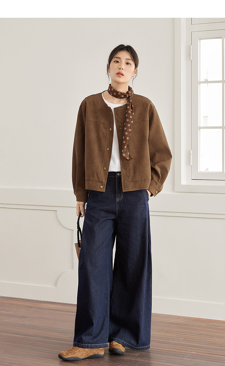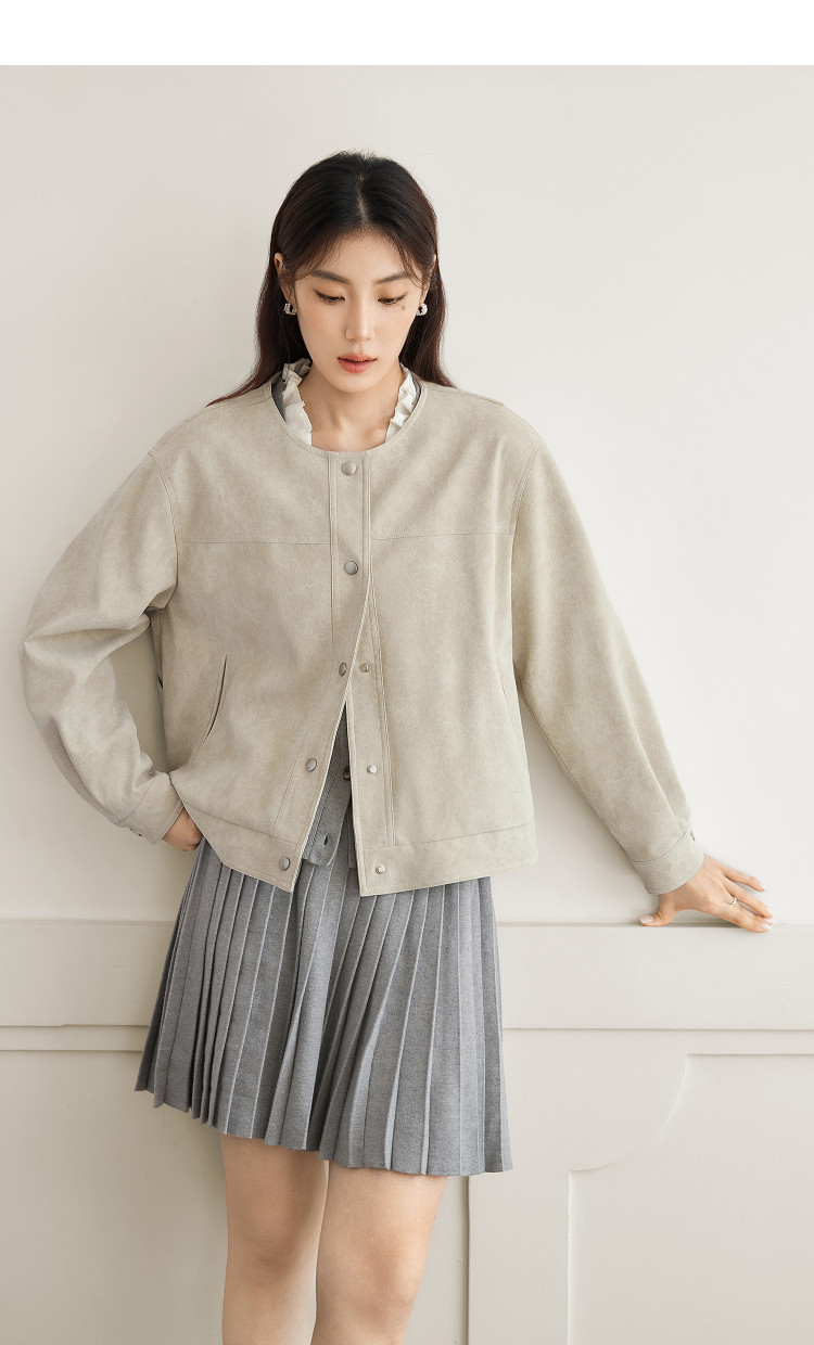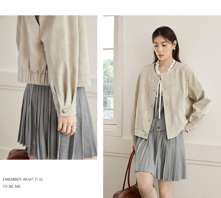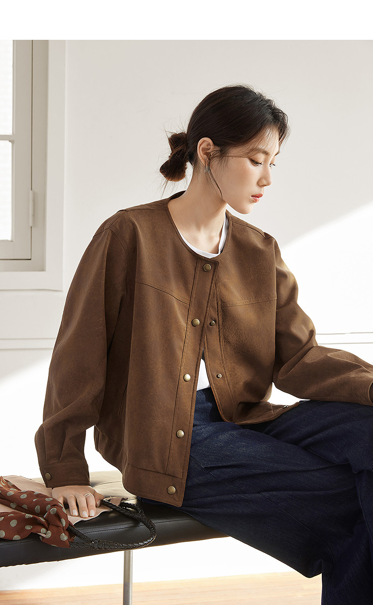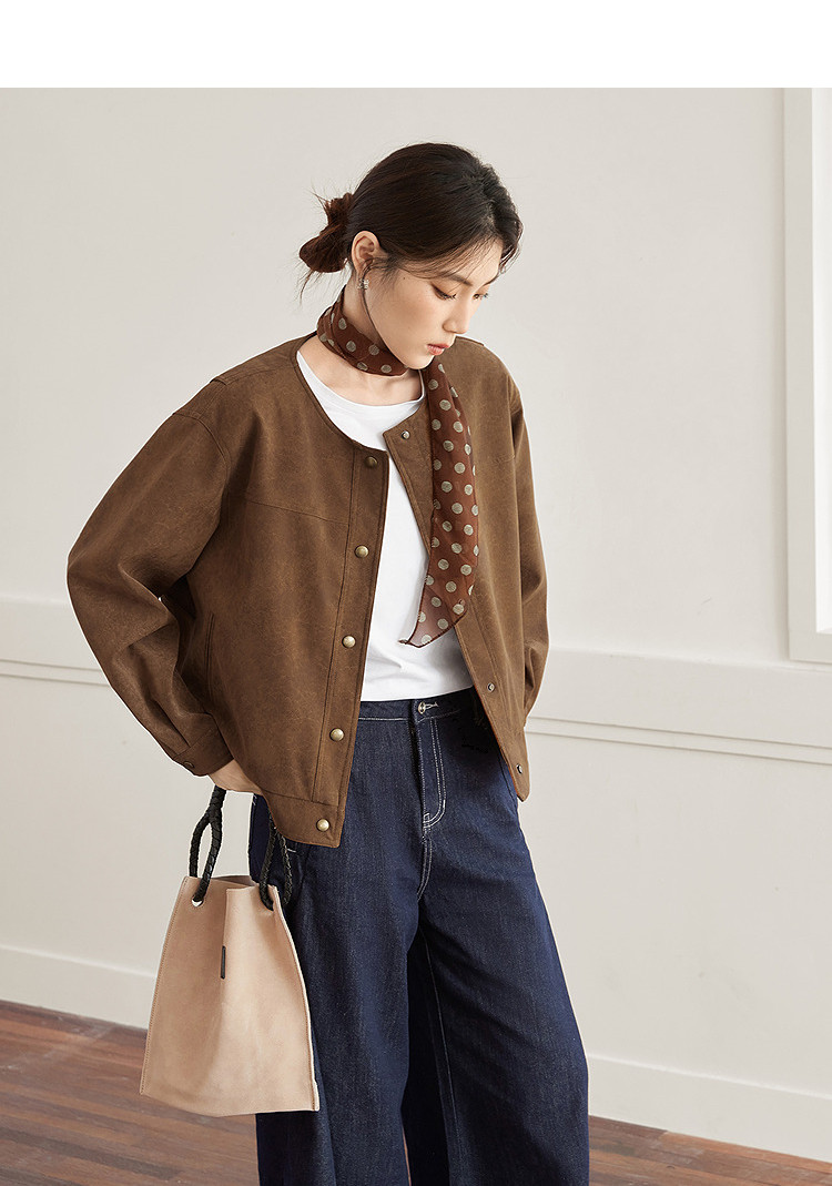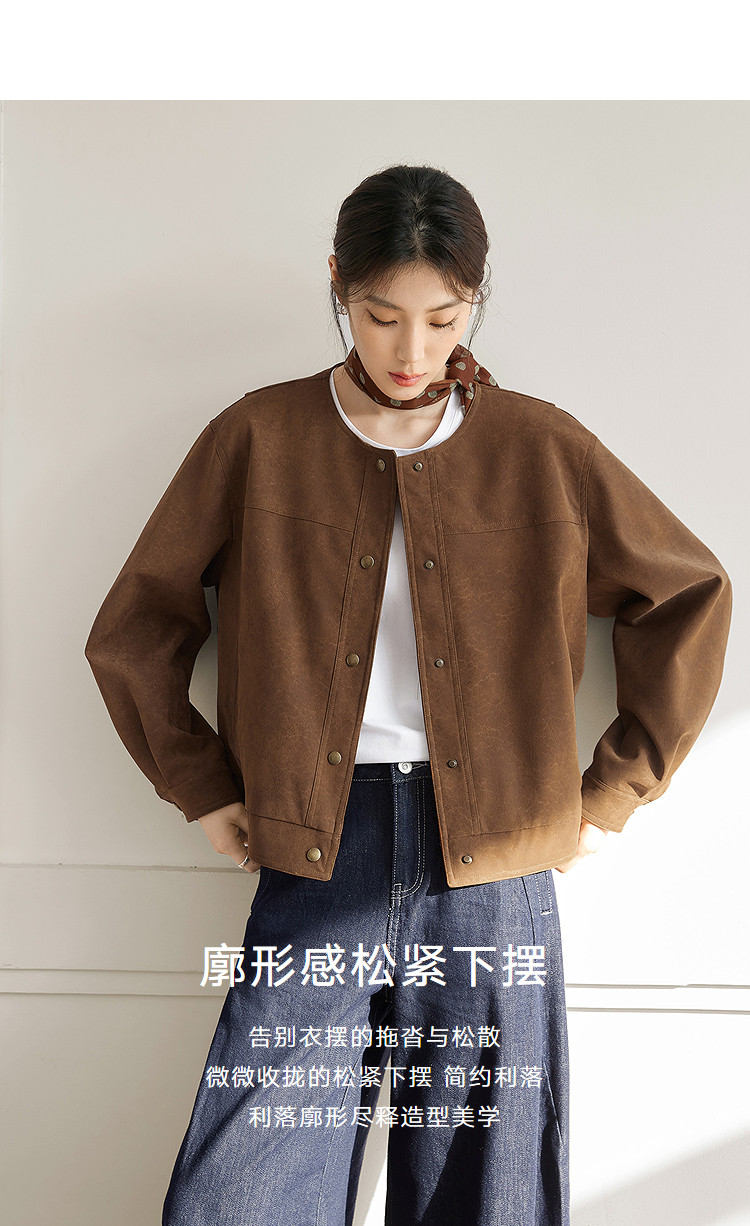 Dialogue Plus Size Damenbekleidungsserie Urban Nomadic Style Kurzmantel aus Wildlederimitat, Frühlingsfett mm Jackenoberteil