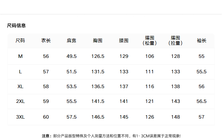 China (cm) 165 / 88-90 170 / 96-98 175 / 108-110 180 / 118-122 185 / 126-130