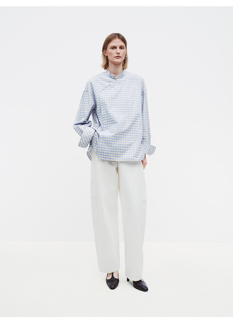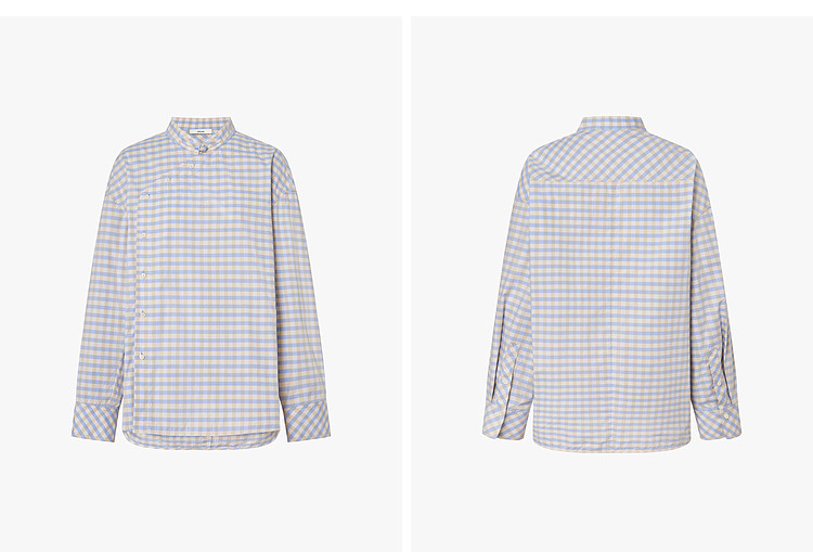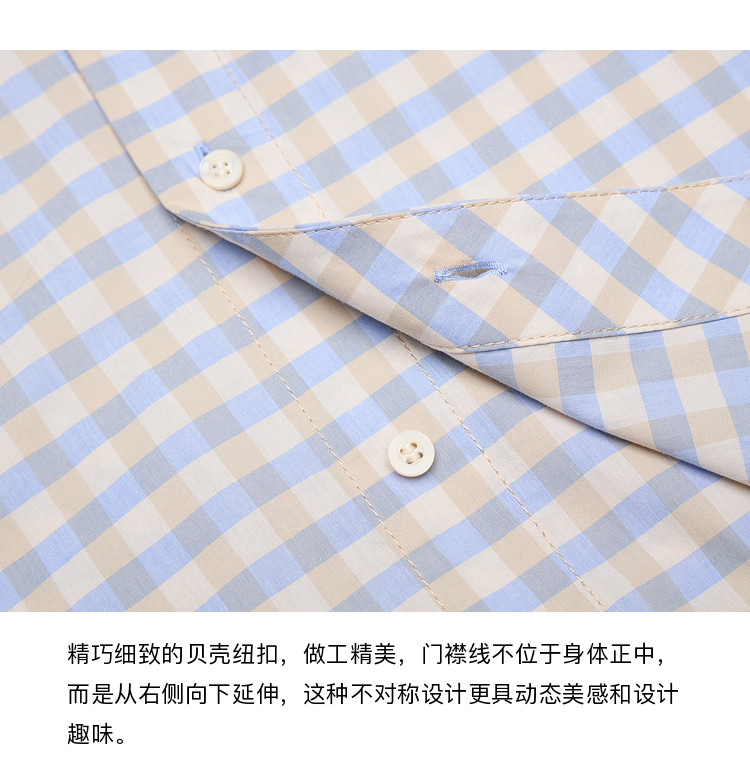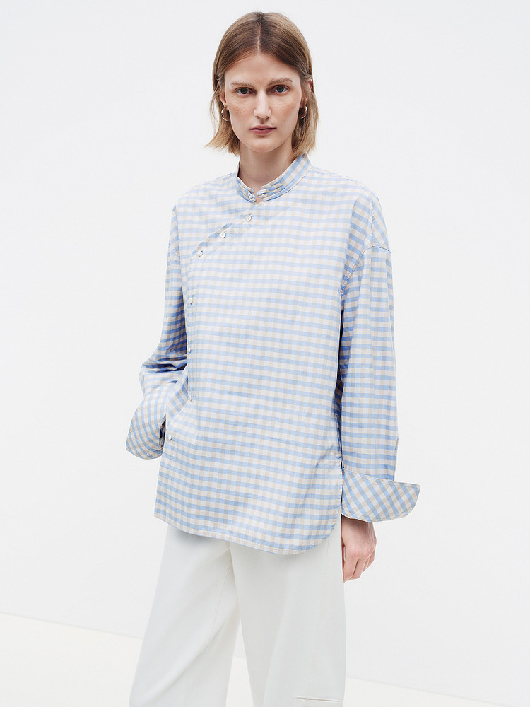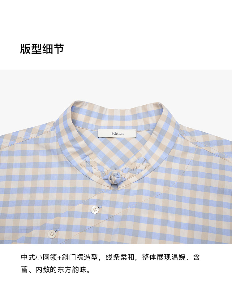 Edition Women's Shirt 2026 Spring New Style New Chinese Style Blue Plaid Long-Sleeved Shirt Ebf1Sht007