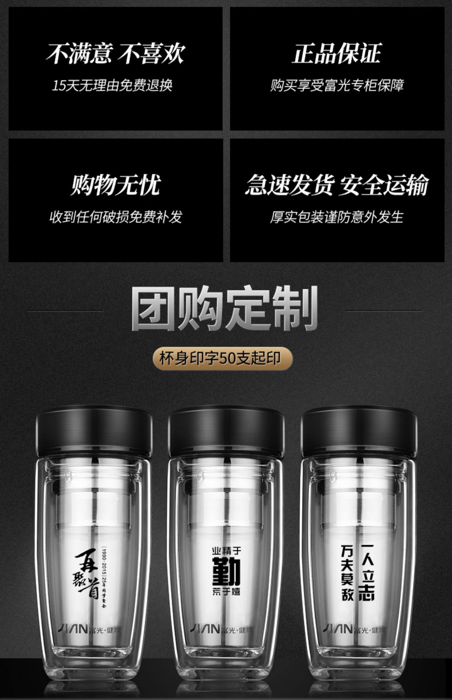 Fuguang Double-Layer Glass Cup for Men, Egg-Shaped Water Cup, Explosion-Proof, Insulated, Large Capacity, Thickened, High-End Car-Mounted with Logo