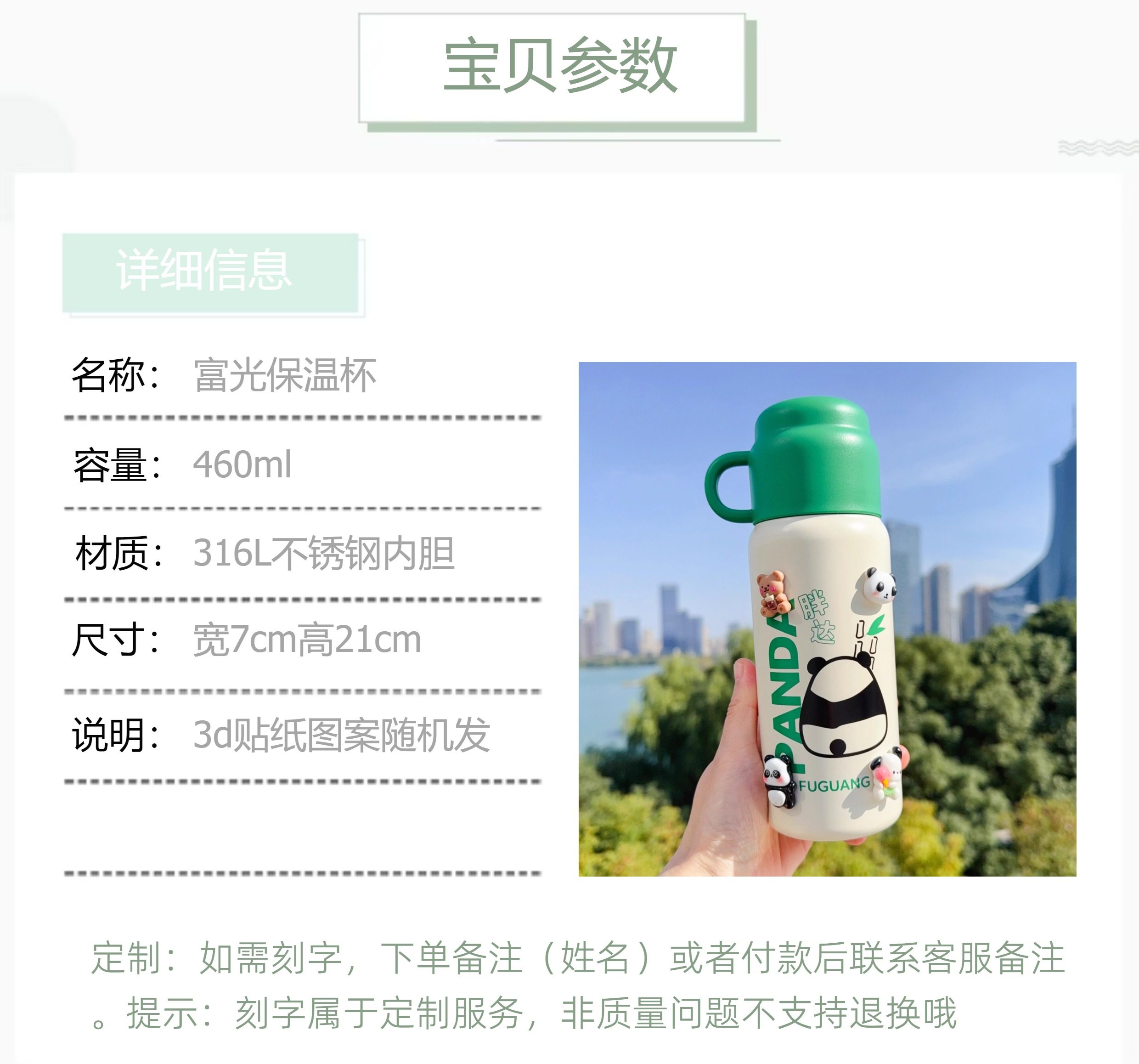 Color Classification Green 460ml [Upgraded 316 Stainless Steel Liner + Drinking Lid + Anti-Slip Cup Bottom + Free Engraving],Panda Green 460ml [Upgraded 316 Stainless Steel Liner + Drinking Lid + Anti-Slip Cup Bottom + Free Engraving],Red 460ml [Upgraded 316 Stainless Steel Liner + Drinking Lid + Anti-Slip Cup Bottom + Free Engraving],Green 460ml [Upgraded 316 Stainless Steel Liner + Drinking Lid + Anti-Slip Cup Bottom + Free Engraving + Random 3D Stickers],Panda Green 460ml [Upgraded 316 Stainless Steel Liner + Drinking Lid + Anti-Slip Cup Bottom + Free Engraving + Random 3D Sticker],Red 460ml [Upgraded 316 Stainless Steel Liner + Drinking Lid + Anti-Slip Base + Free Engraving + Random 3D Stickers],White 460ml [Upgraded 316 Stainless Steel Liner + Double Lid + Carrying Rope + Free Engraving],Pink 460ml [Upgraded 316 Stainless Steel Liner + Double Lid + Carrying Rope + Free Engraving],Black 460ml [Upgraded 316 Stainless Steel Liner + Double Lids + Carrying Rope + Free Engraving],Blue 460ml [Upgraded 316 Stainless Steel Liner + Double Lids + Carrying Rope + Free Engraving]