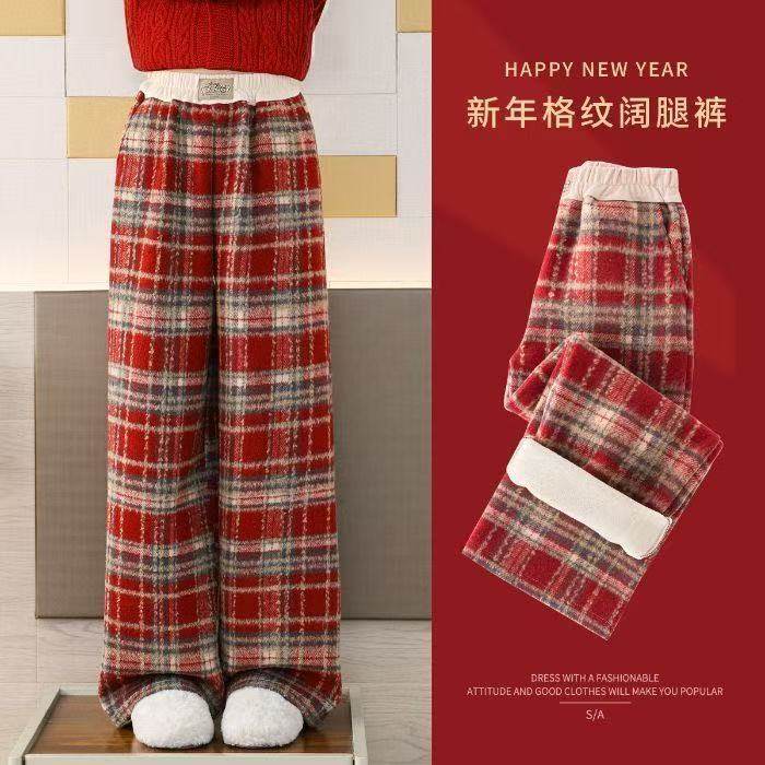 Girls' Autumn and Winter New Year Outfit 2026 New Fashionable Spring Festival Red Sweater with Fleece-Lined Long Pants Children's New Year Outfit