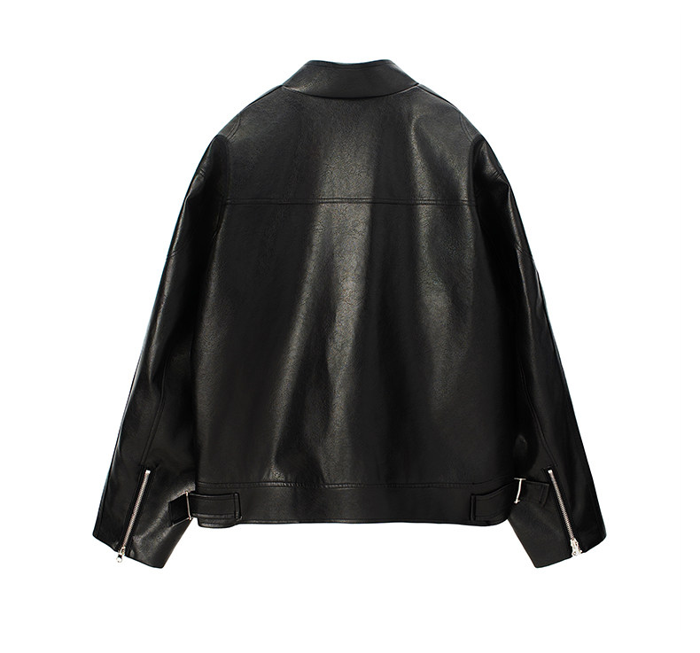 American-Style Short Pu Motorcycle Leather Jacket for Men, Spring and Autumn, Vintage Washed and Distressed, Cleanfit Stand Collar Flight Jacket