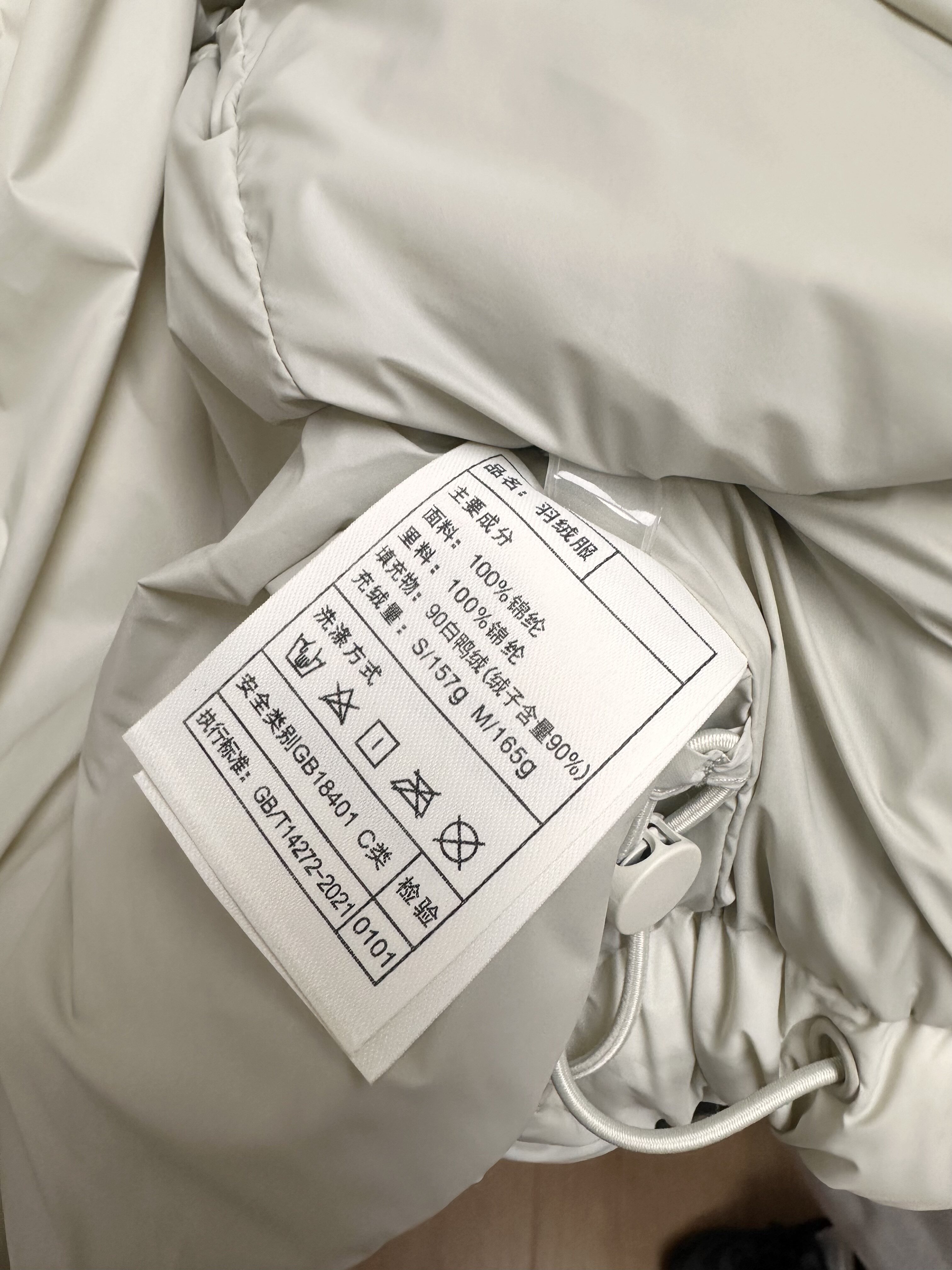 填充物:白鸭绒(绒子含量90%)