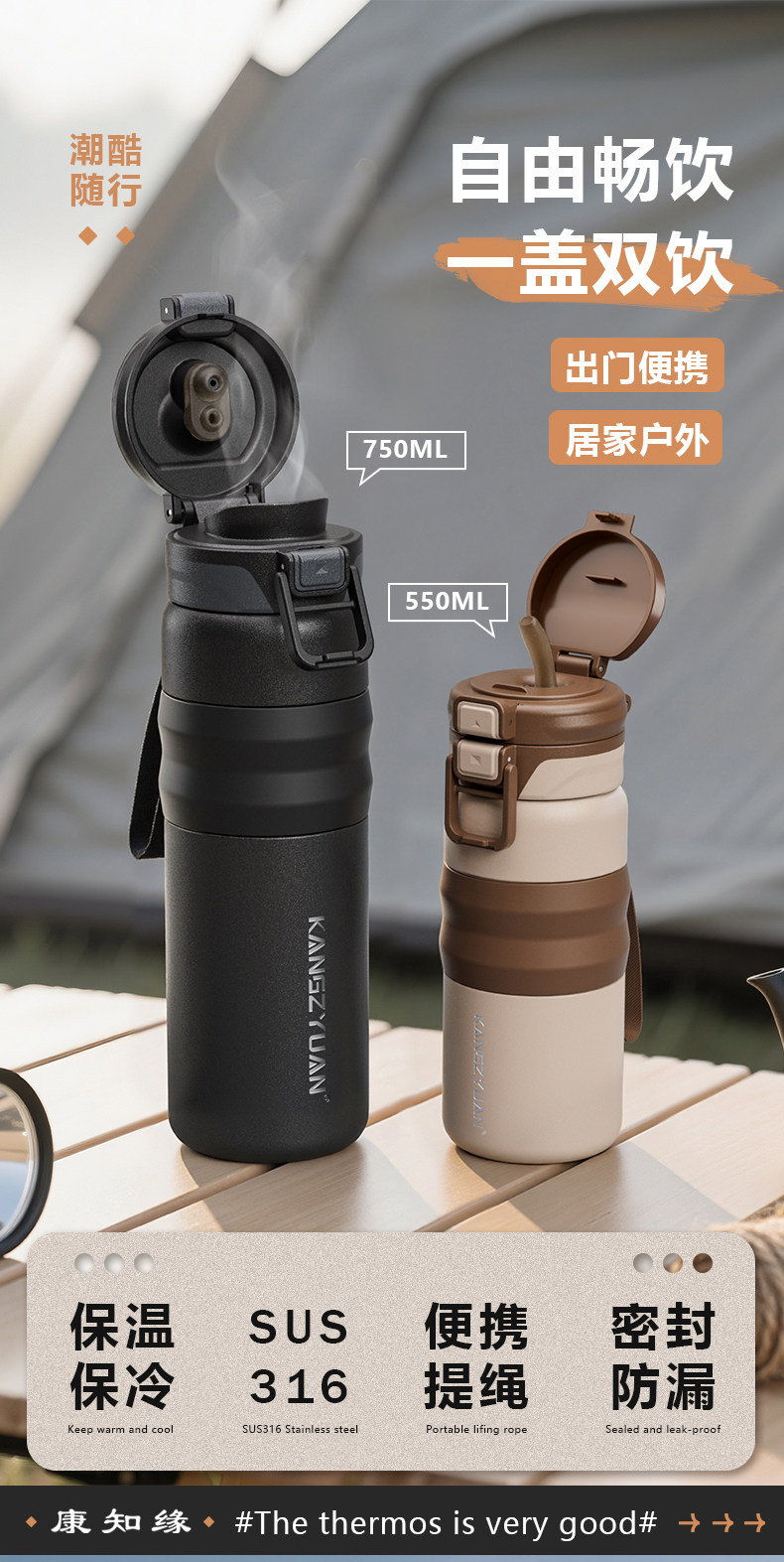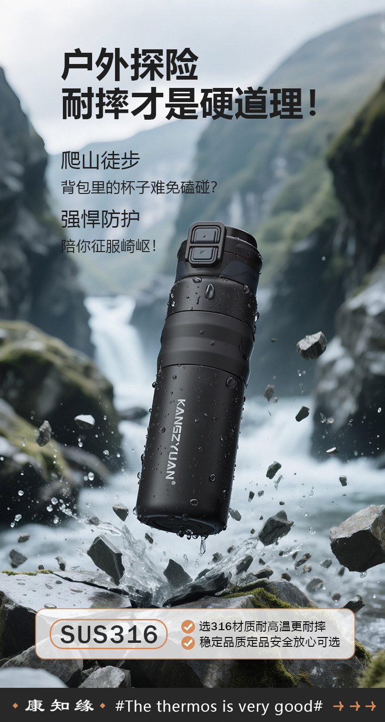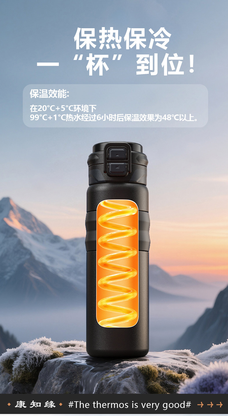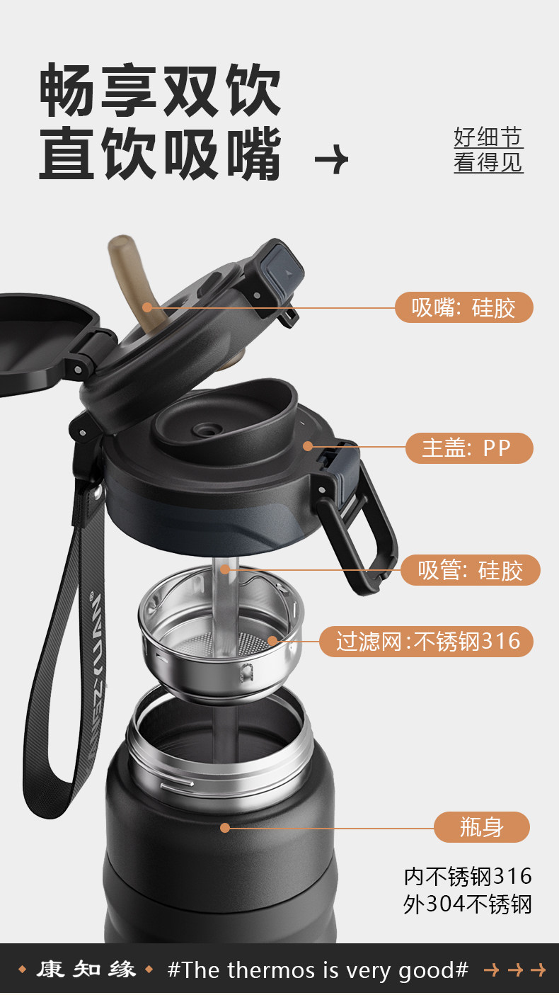 Kang Zhiyuan Junior High School Students' Insulated Water Bottle for Boys, New Model Suitable for School Use, Can Be Placed in the Backpack, with a Straw