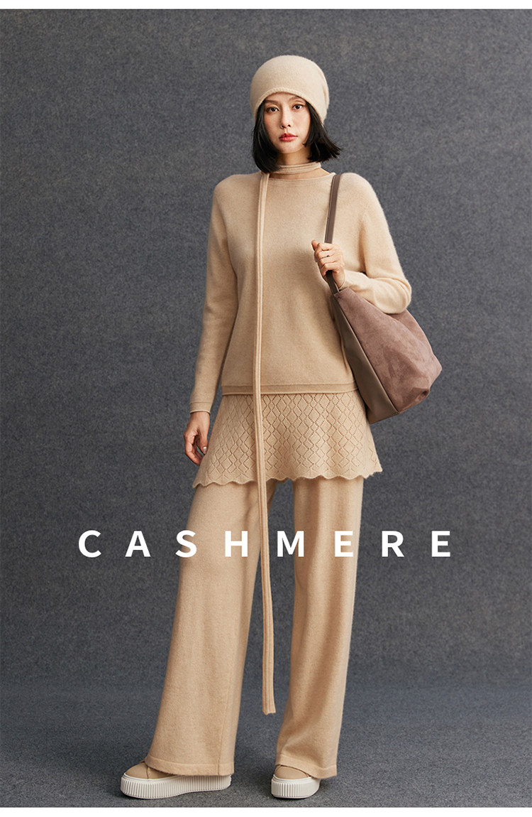 Autumn and winter crochet skirt curtain design cashmere wide-leg pants for women warm butt curtain high-waisted pants
