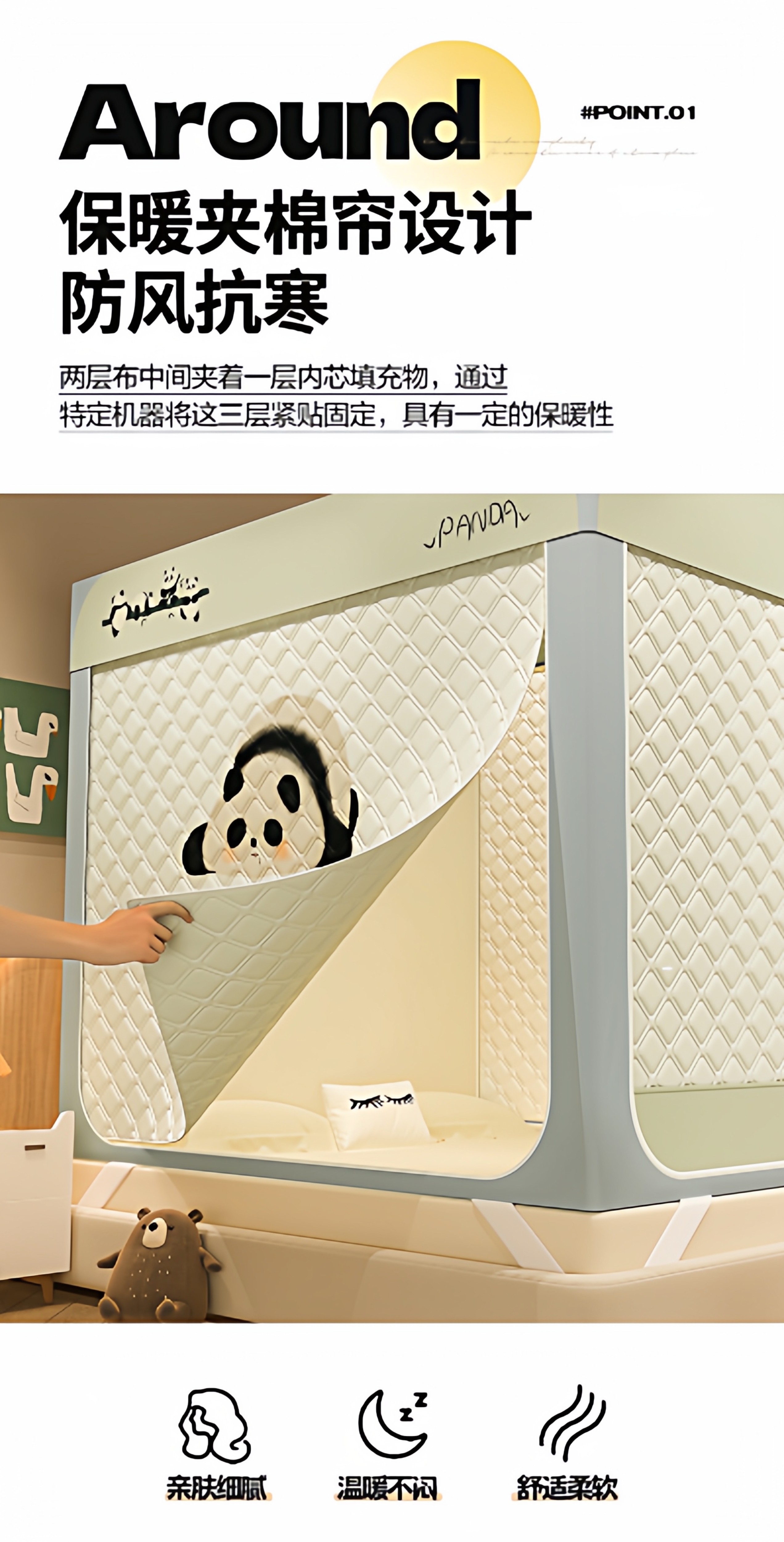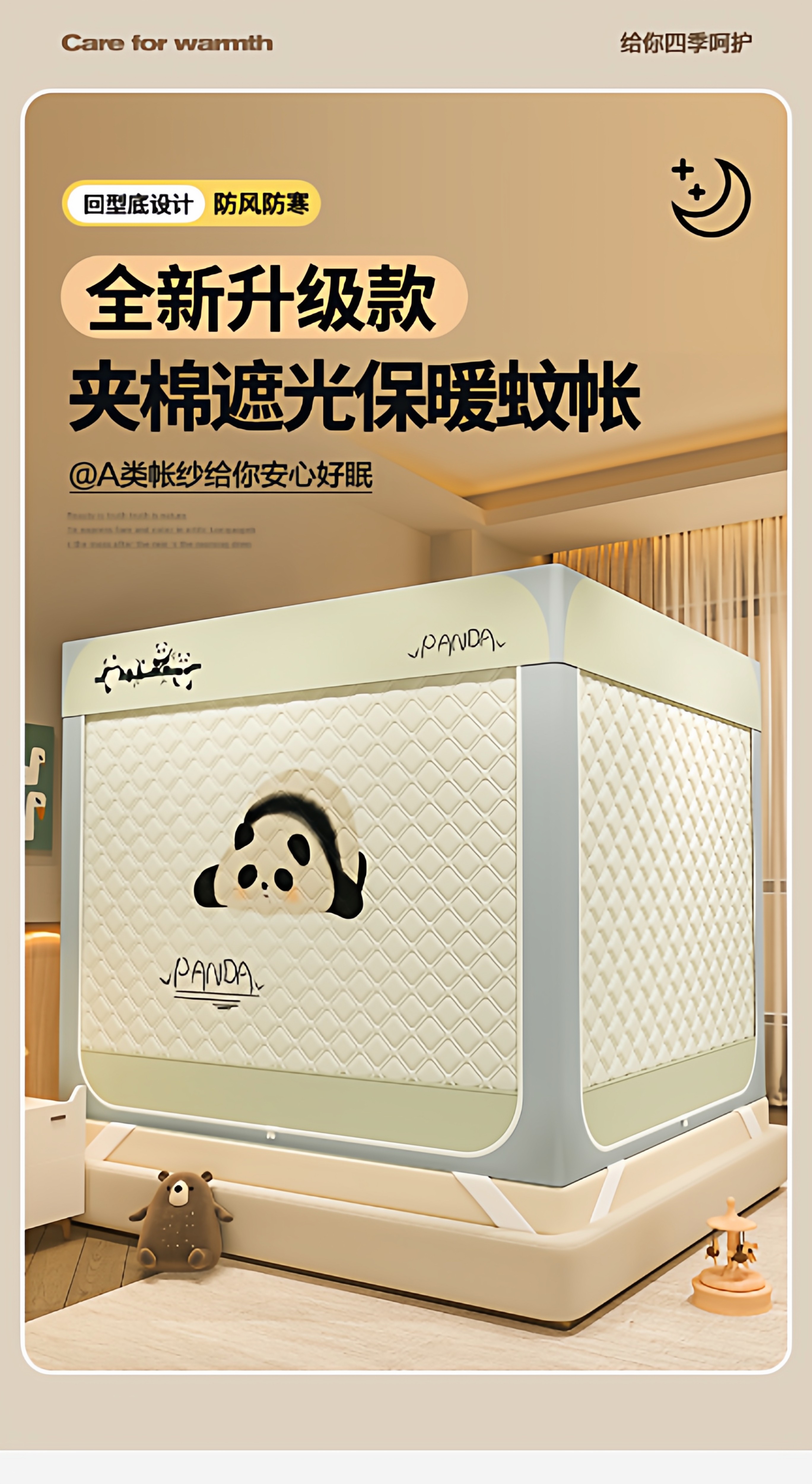 Thermal mosquito net thickened blackout bedroom quilted windproof bed tent children's anti-fall blackout bed curtain 2025 new style