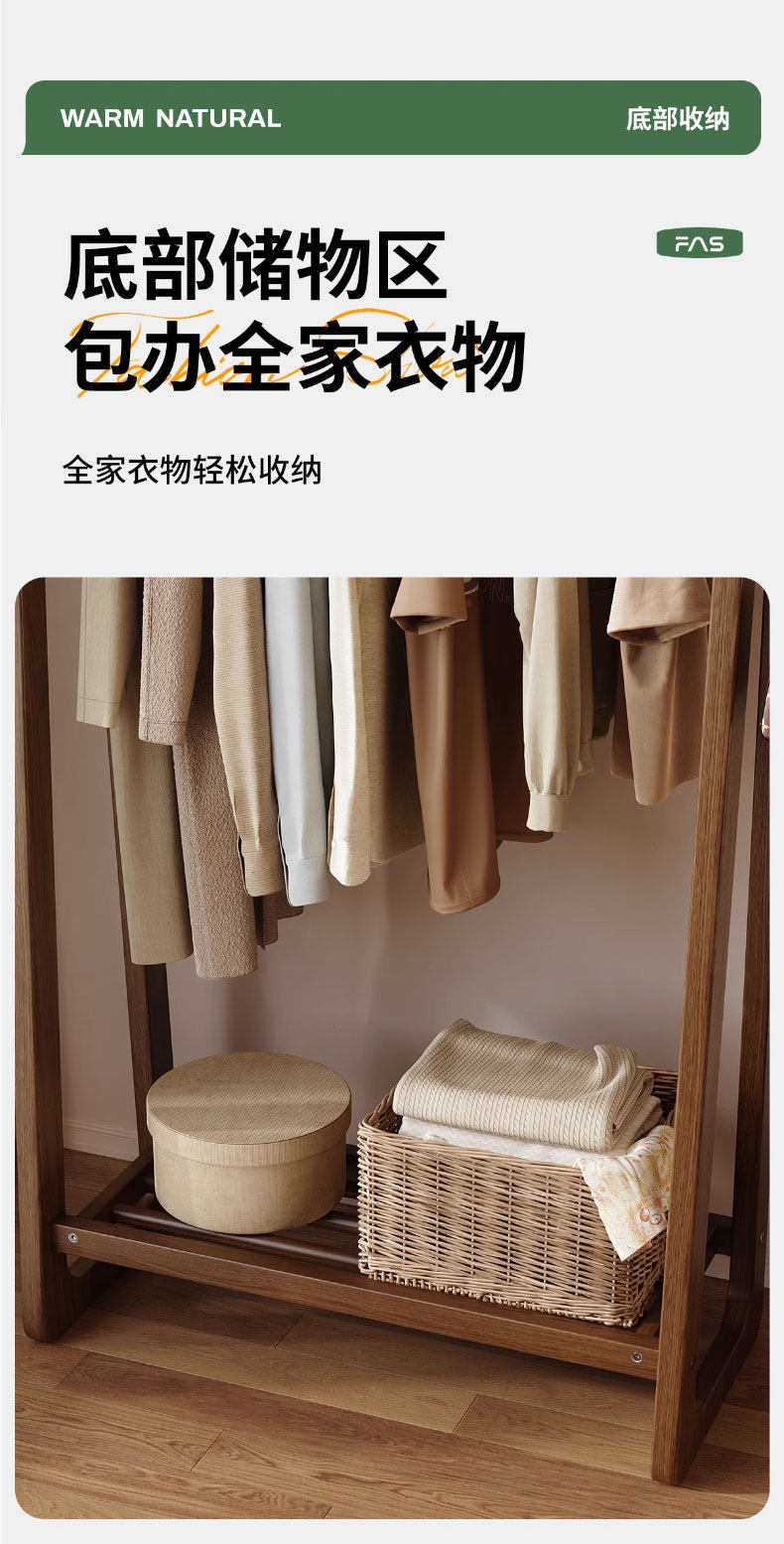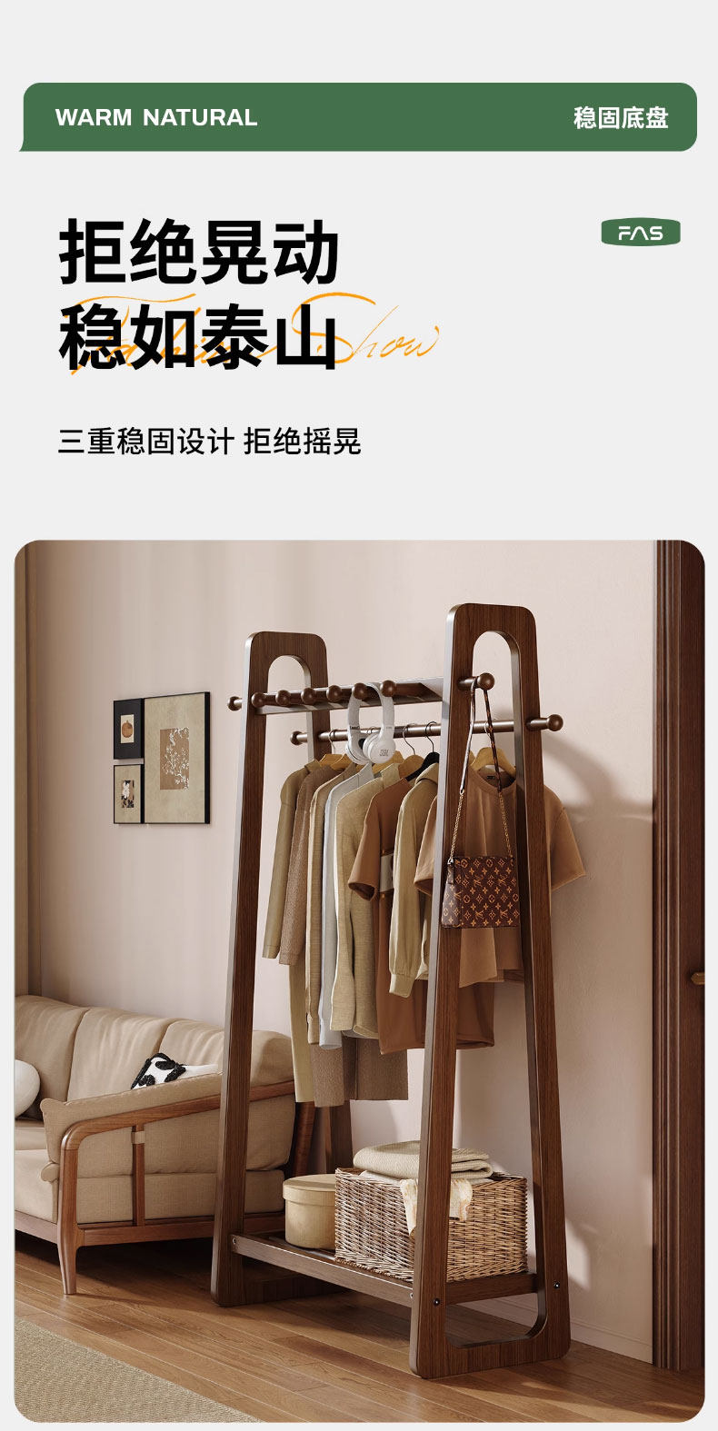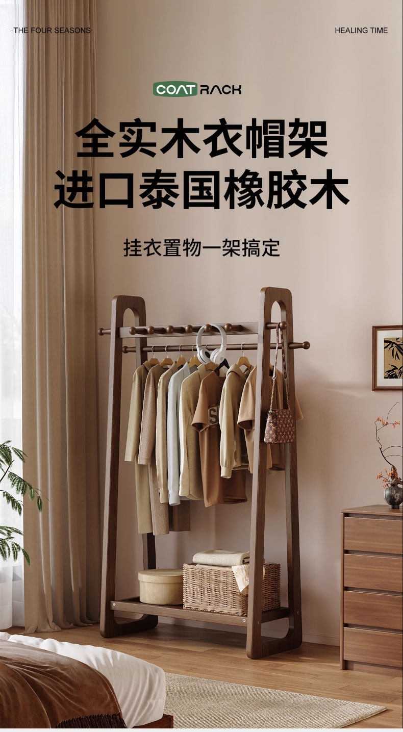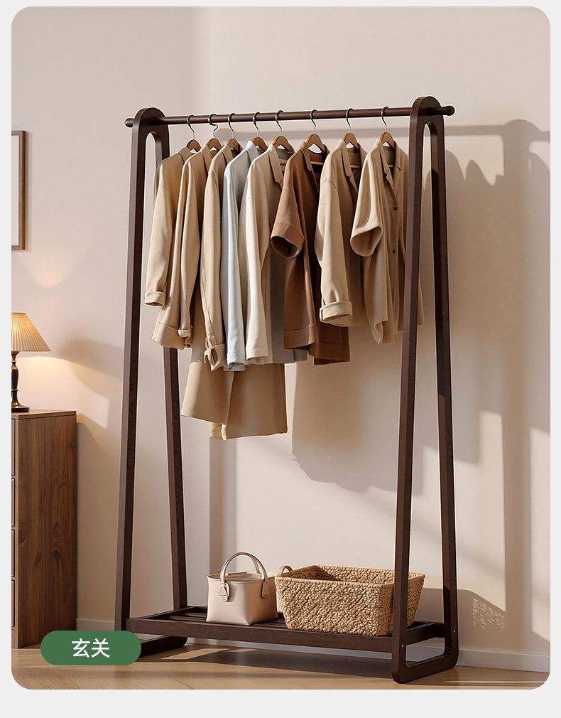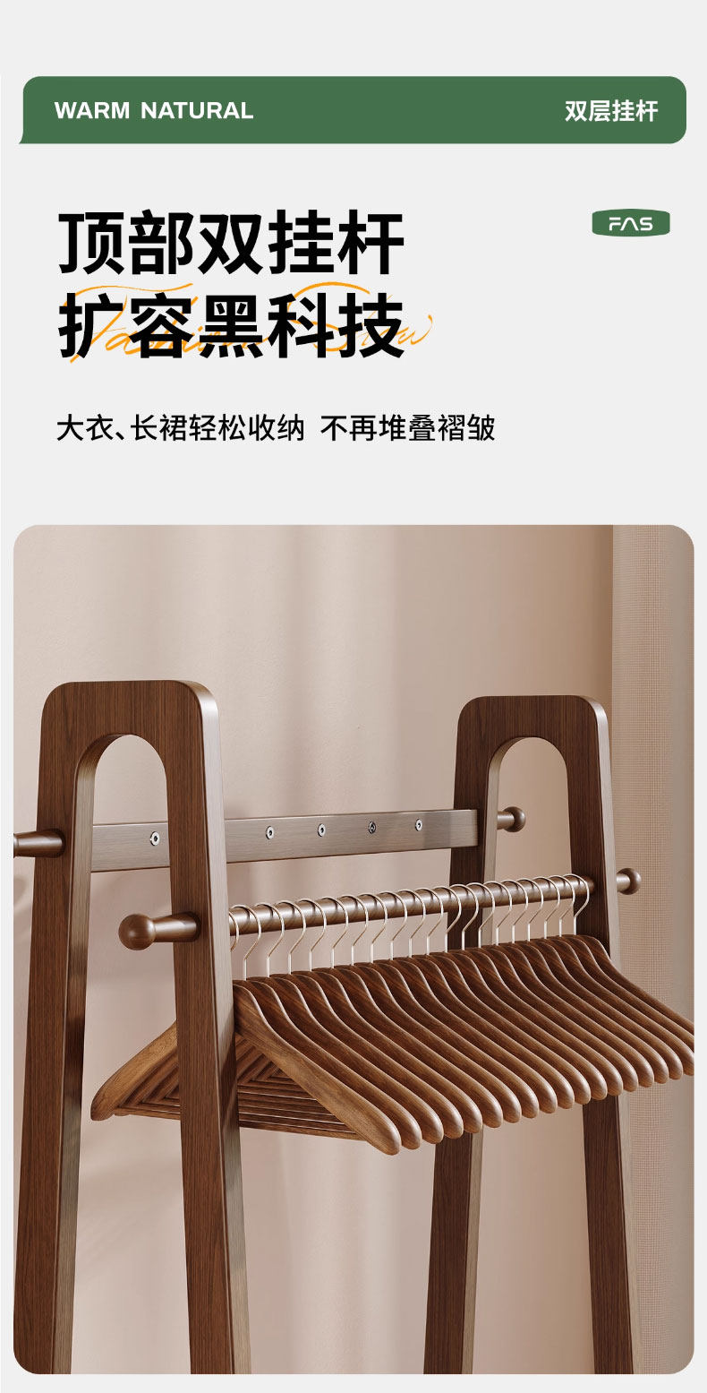 Pure Solid Wood Floor-Standing Clothes Rack for Home Bedroom and Office, 2026 New Model, Light Luxury, High-End, and Stylish Coat Rack