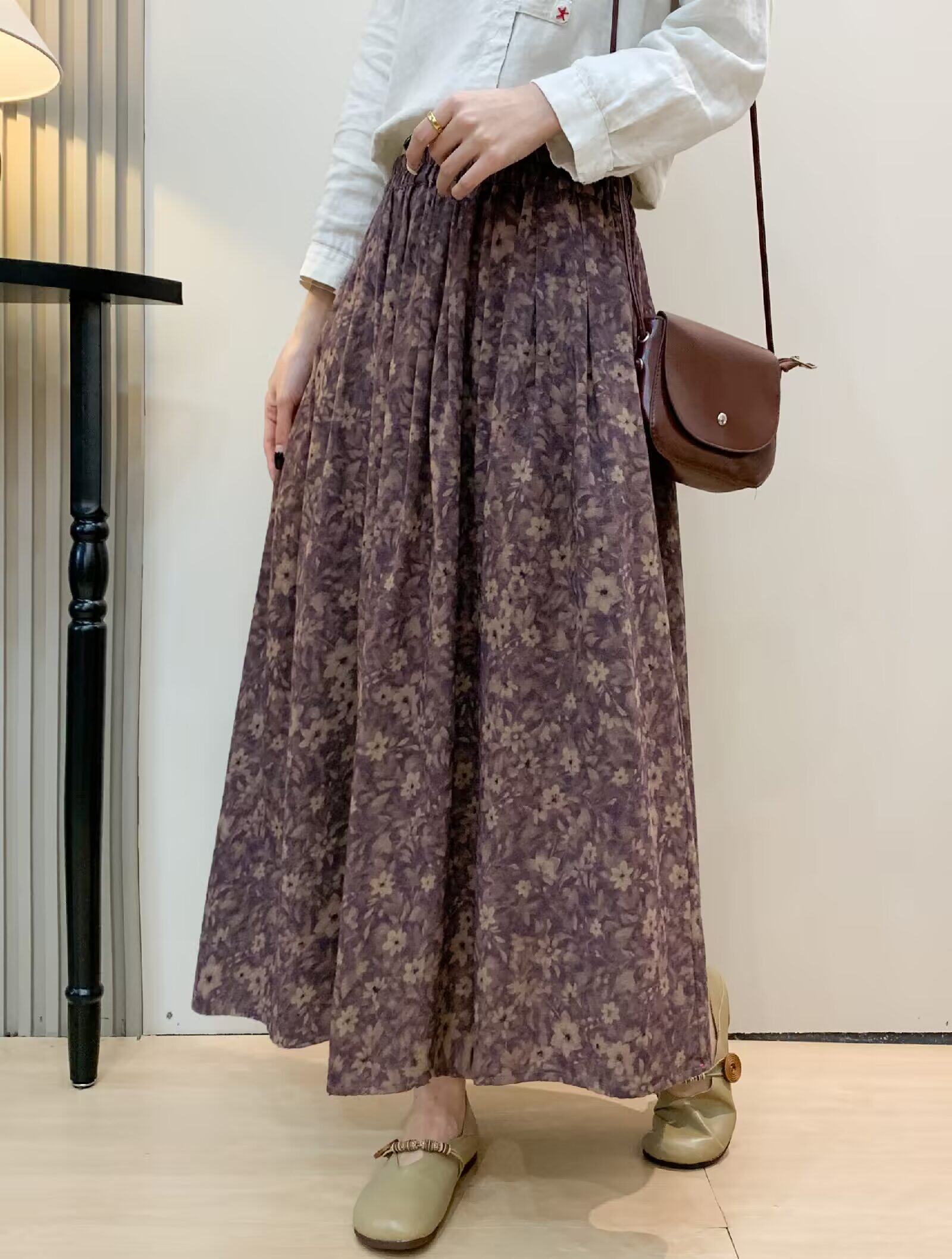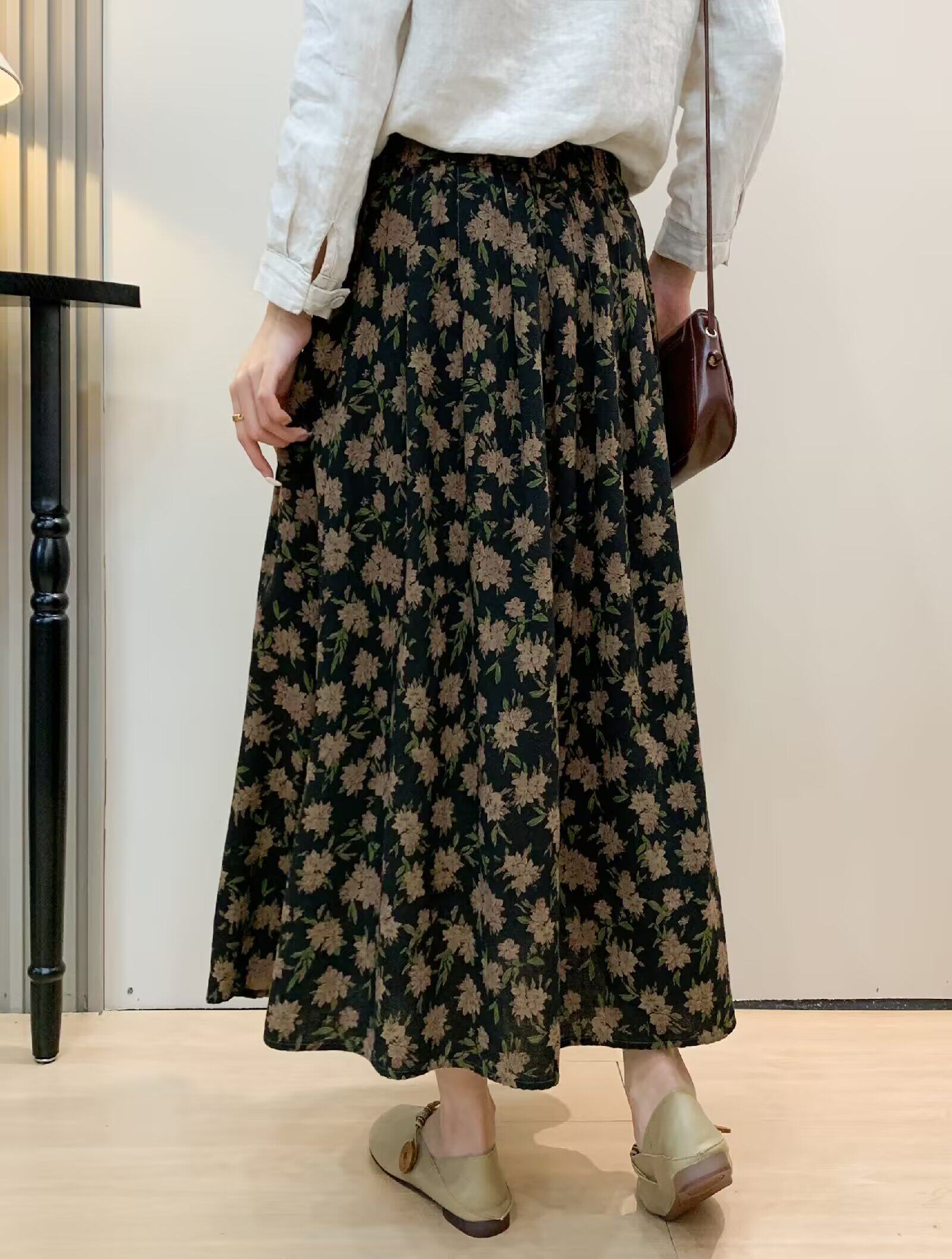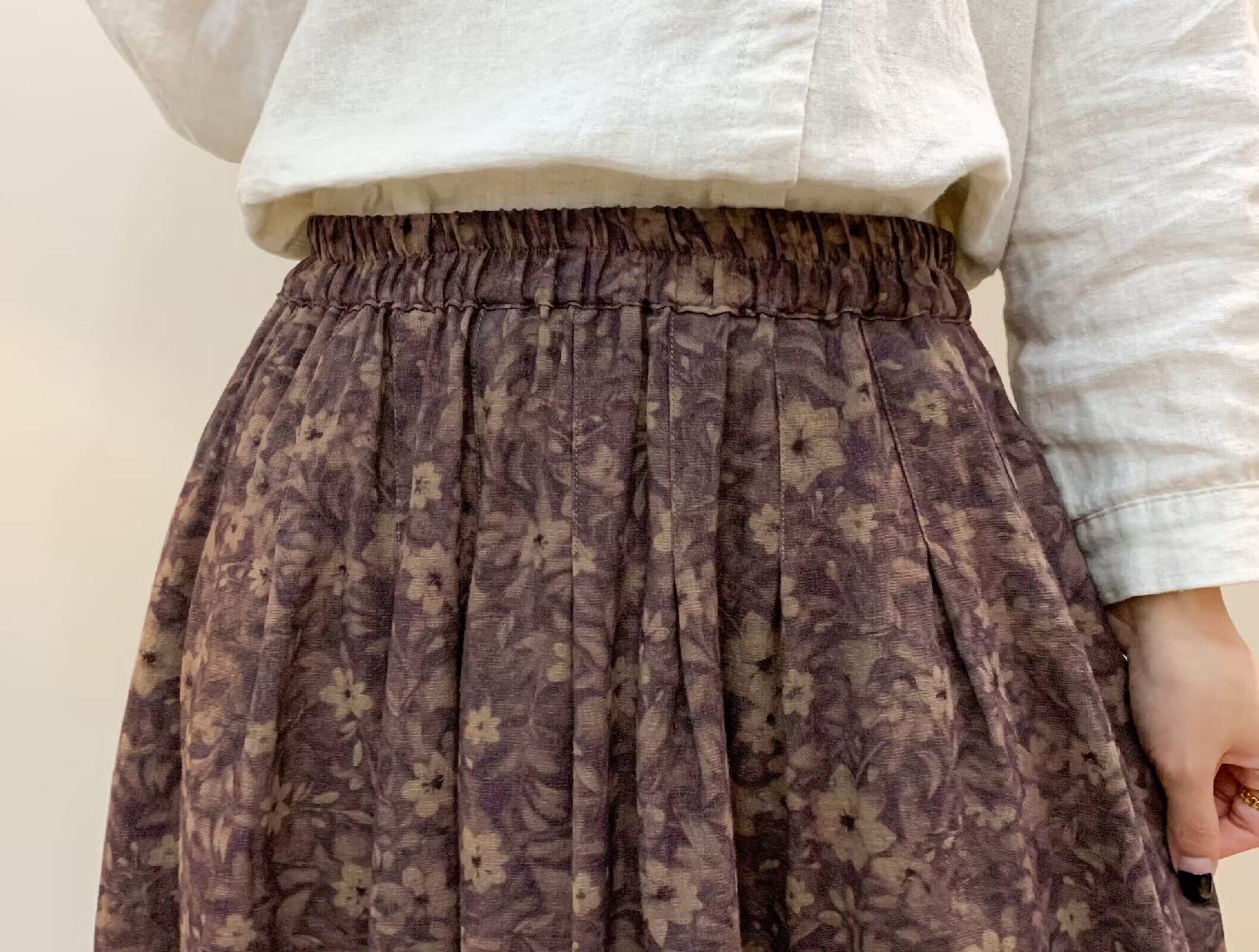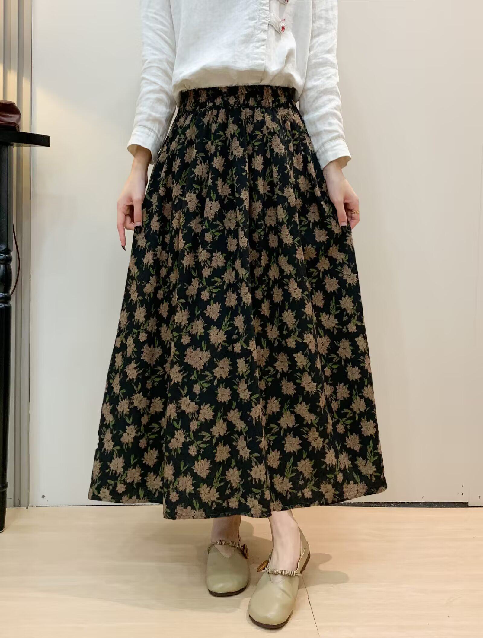 Vintage Floral Half-Skirt for Women, Spring 2026, Elastic Waist, Pockets, Versatile, Slimming A-Line Long Skirt