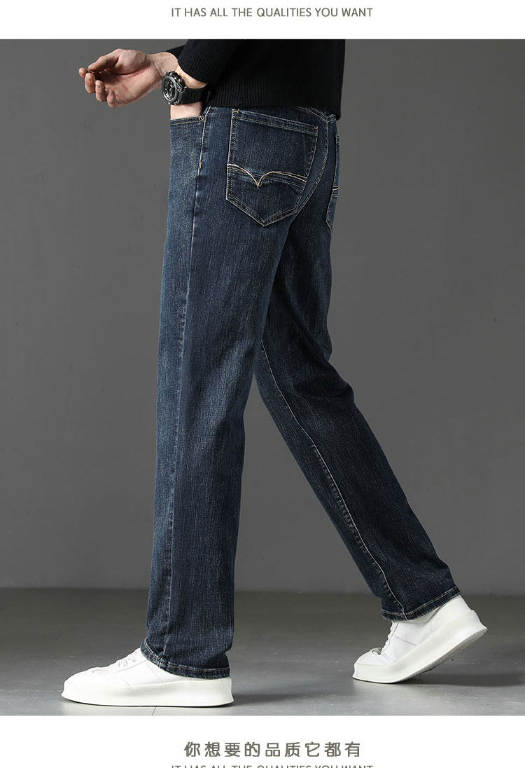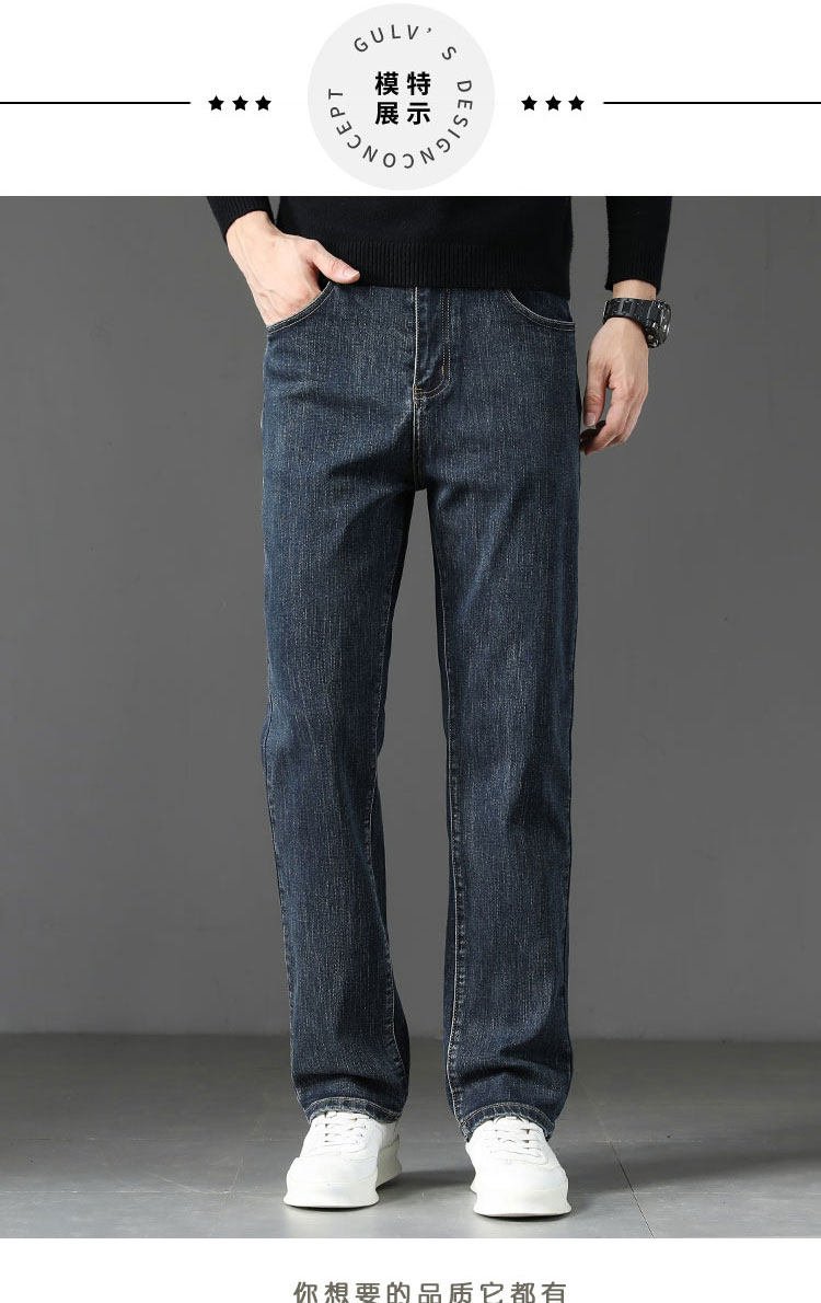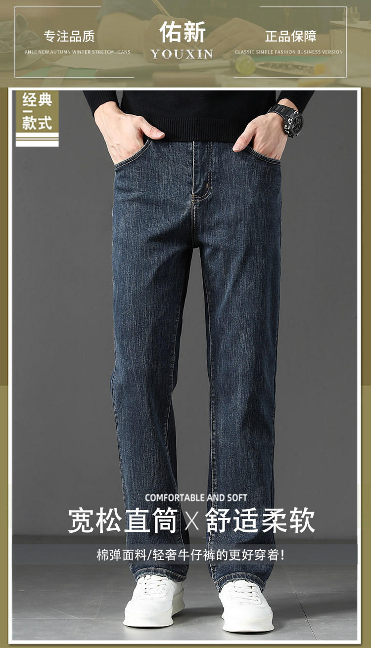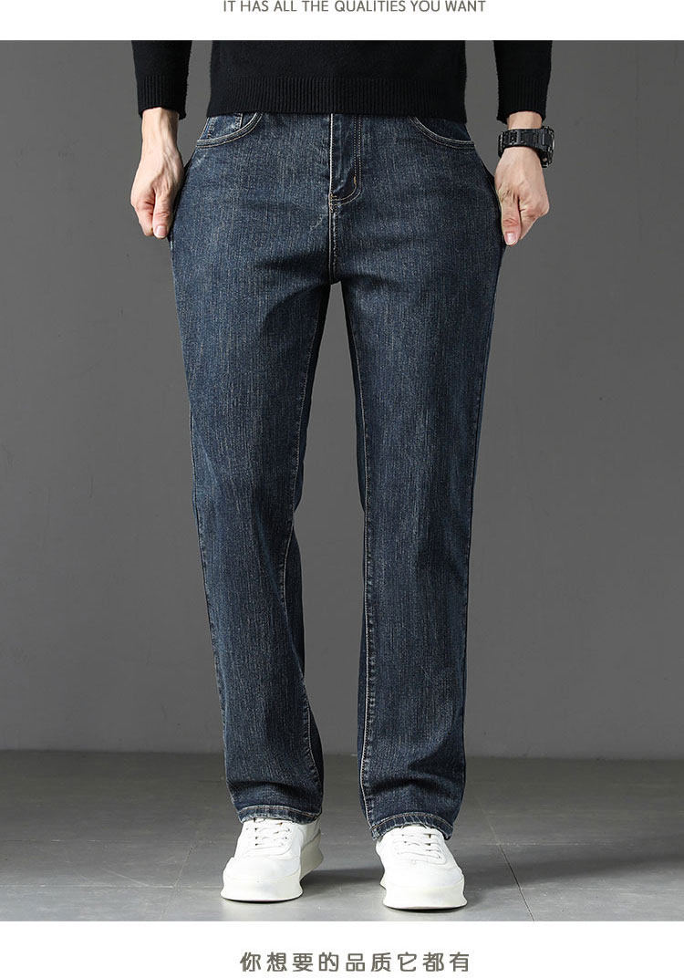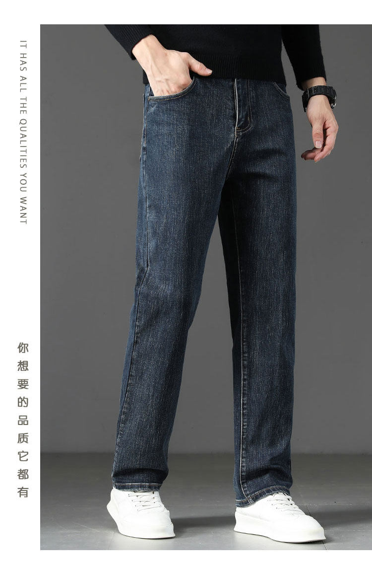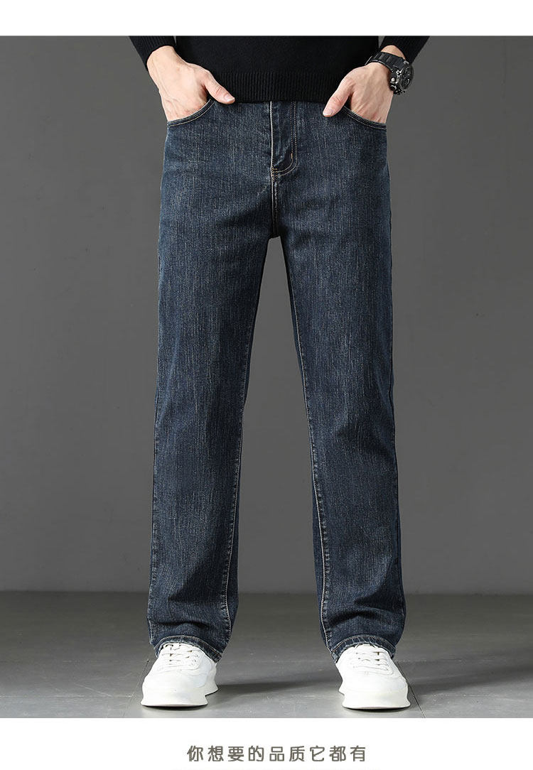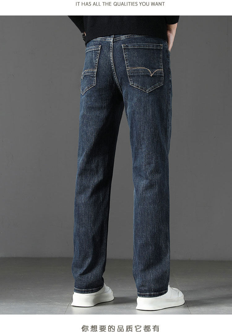 Winter High-End Jeans Men's Straight Leg Loose Men's Pants 2025 New Style Comfortable Washed Middle-aged Stretch Long Pants