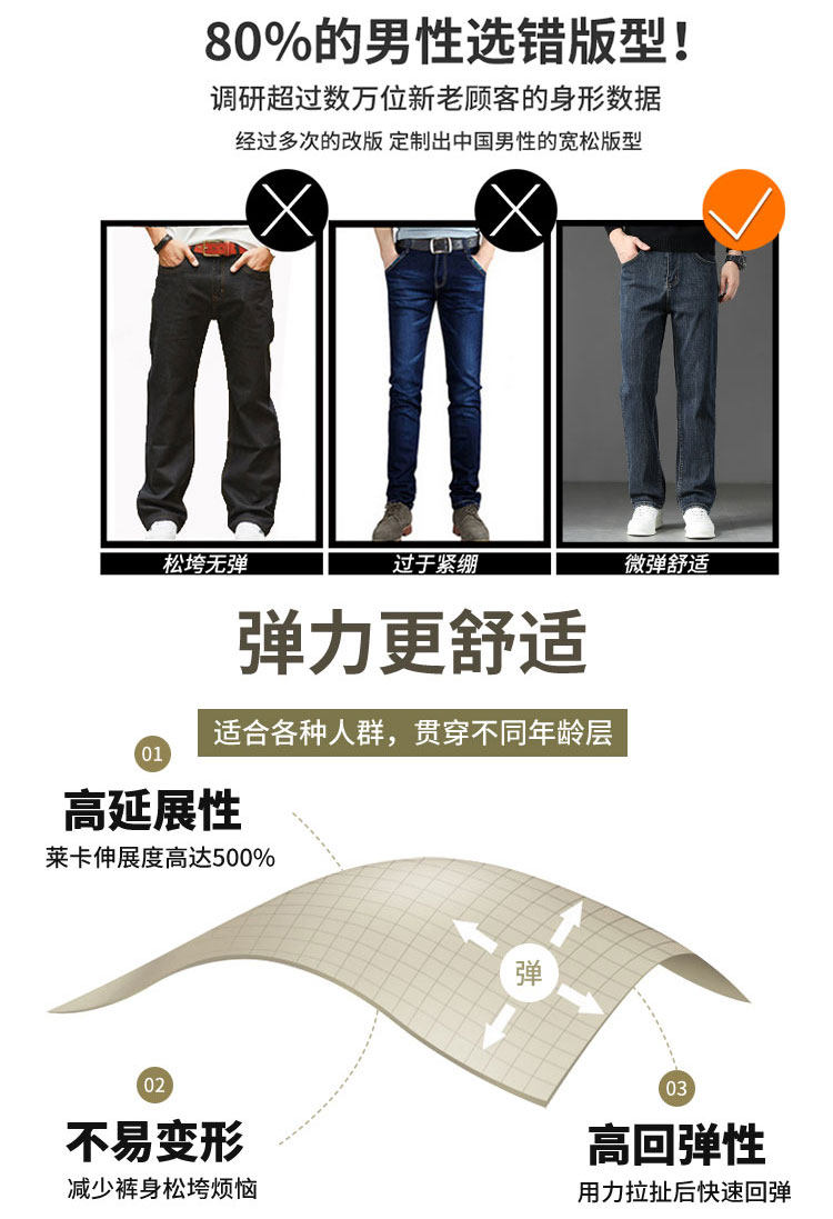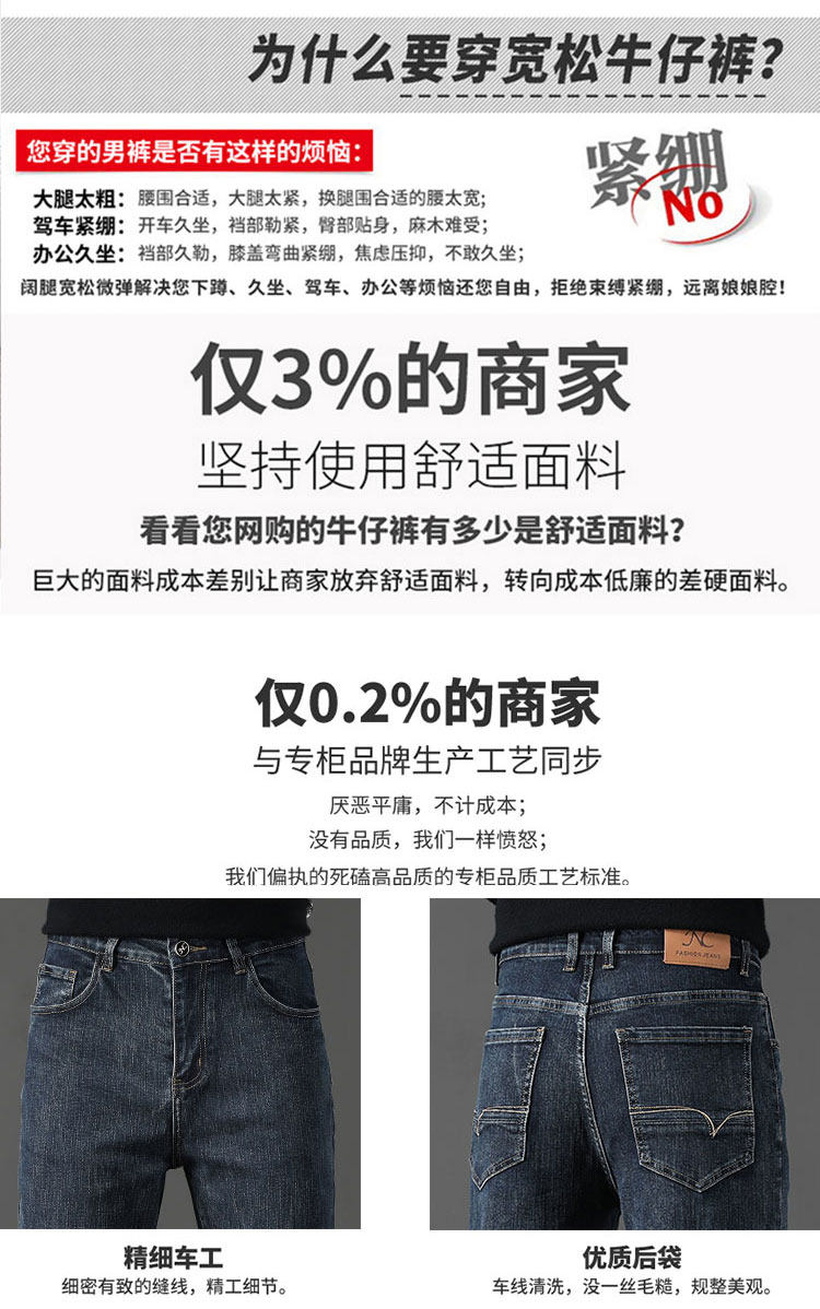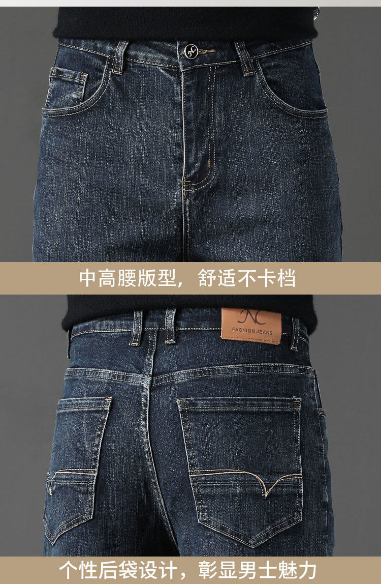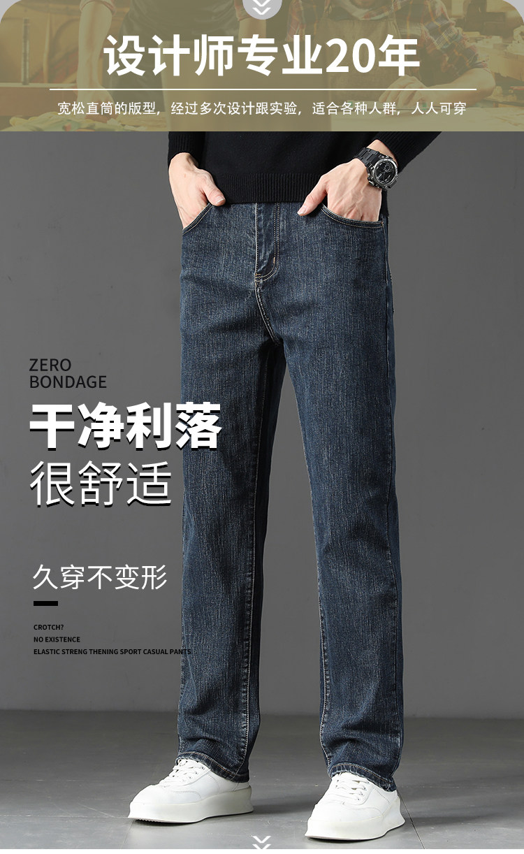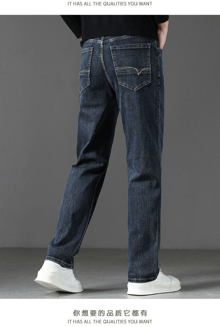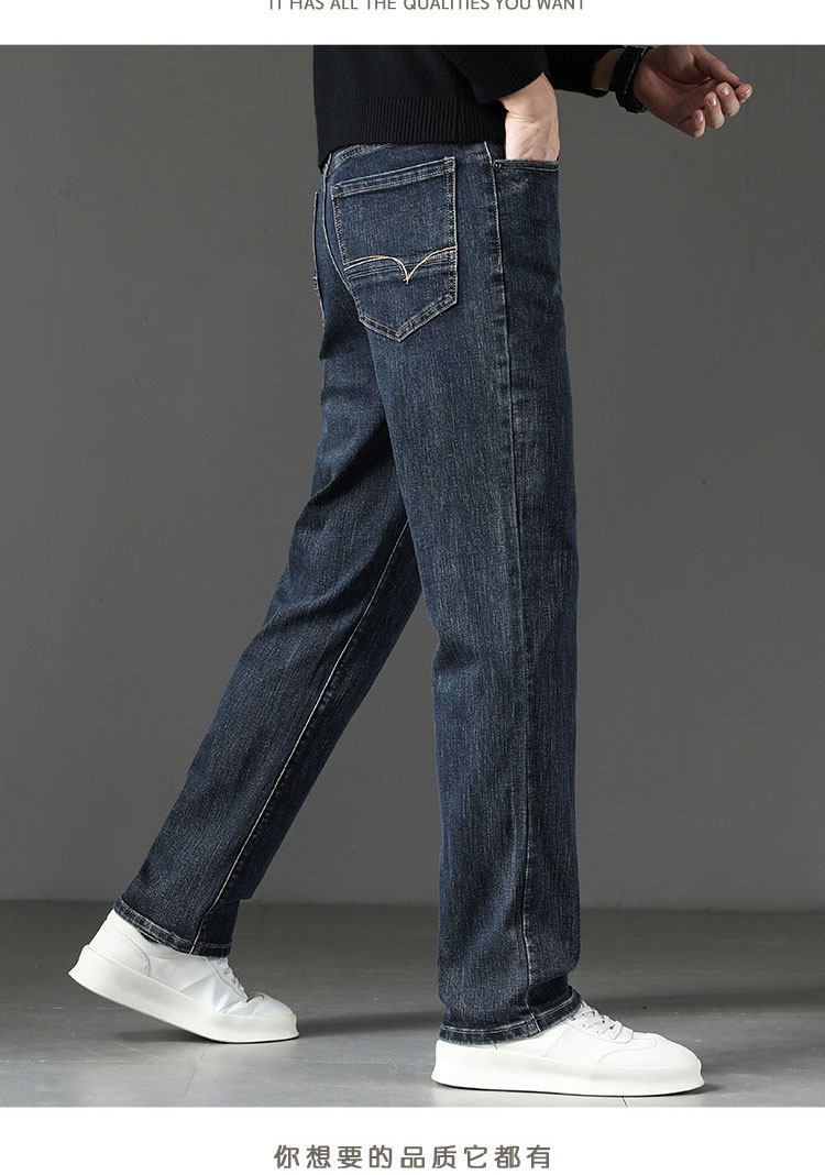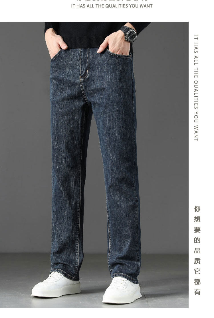 Winter High-End Jeans Men's Straight Leg Loose Men's Pants 2025 New Style Comfortable Washed Middle-aged Stretch Long Pants