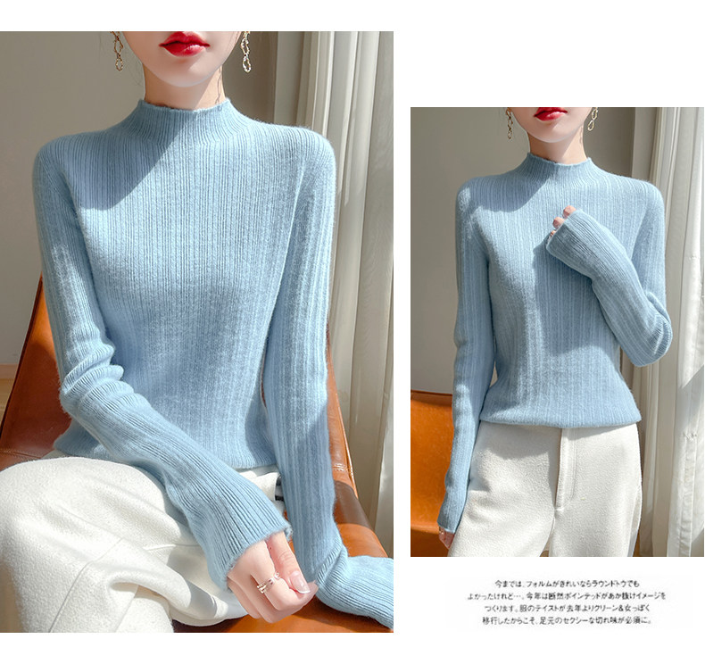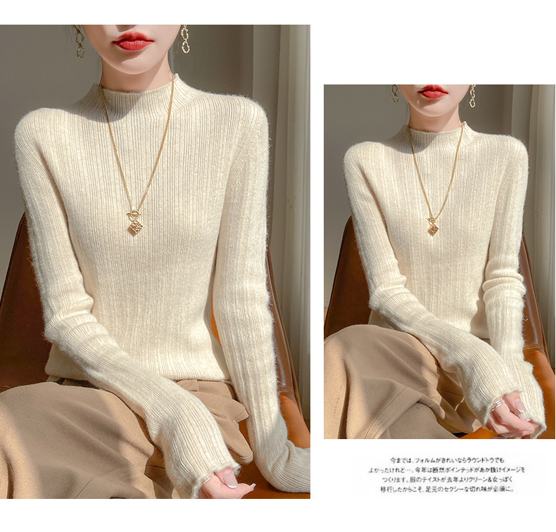One-line seamless wool half turtleneck bottoming shirt for women, slim fit autumn and winter white and black skin-friendly velvet knitted top