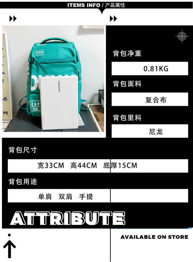 Large-capacity multifunctional backpack sports outdoor ski bag short-distance business trip travel bag college student high school bag