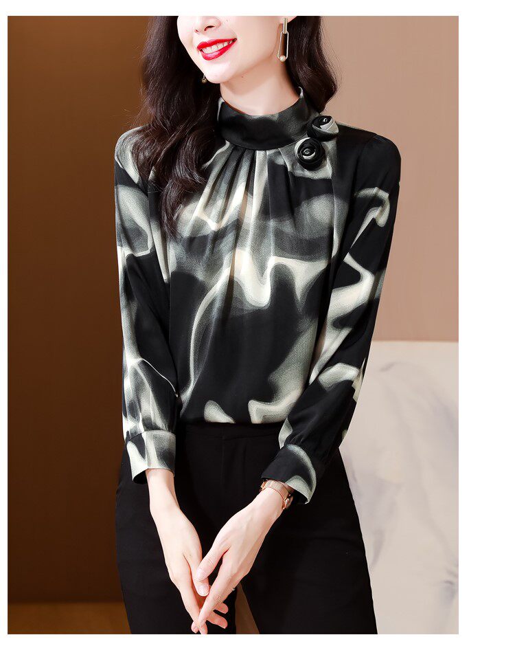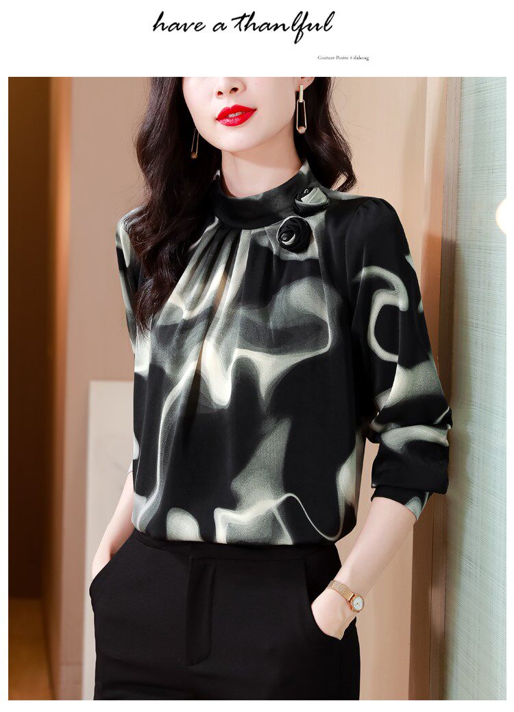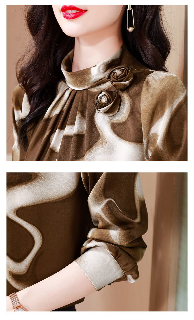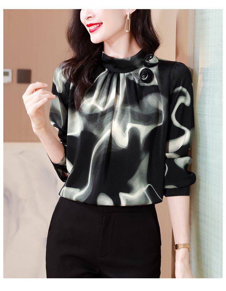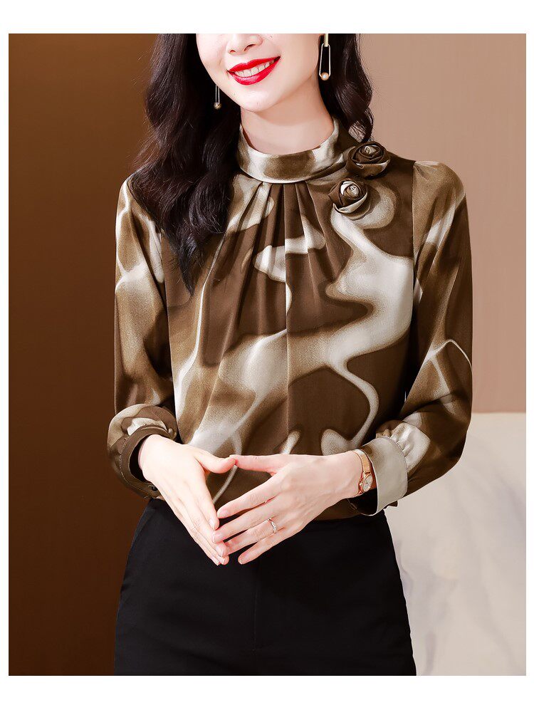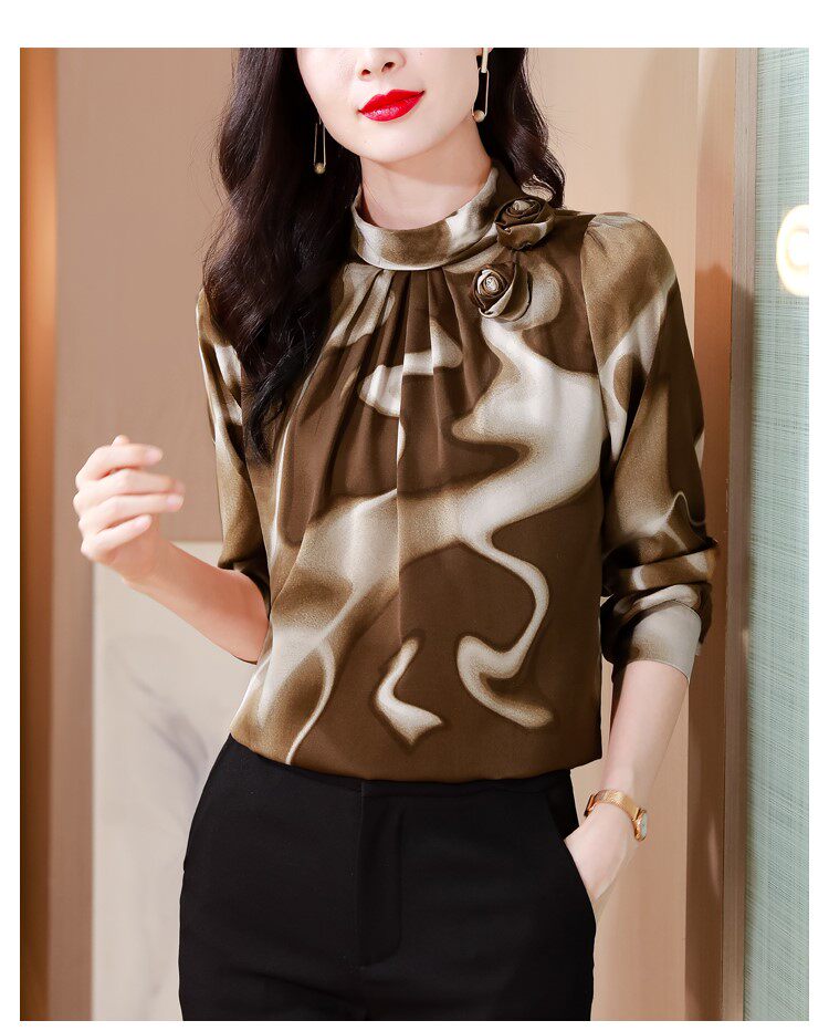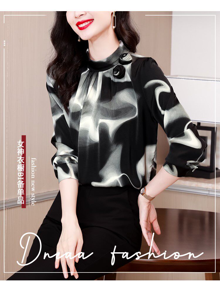 Chiffon shirt women's early spring, autumn and winter 2026 new style trendy tops, age-reducing shirts, long-sleeved shirts