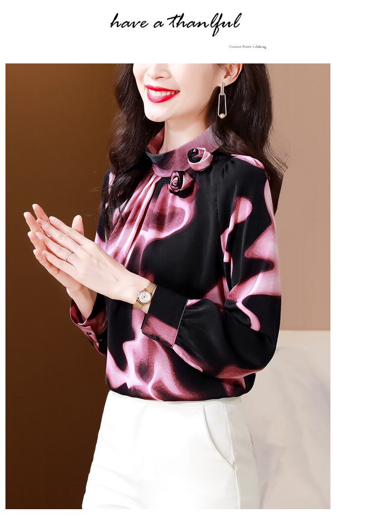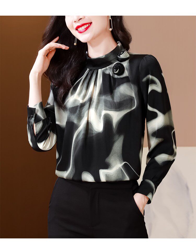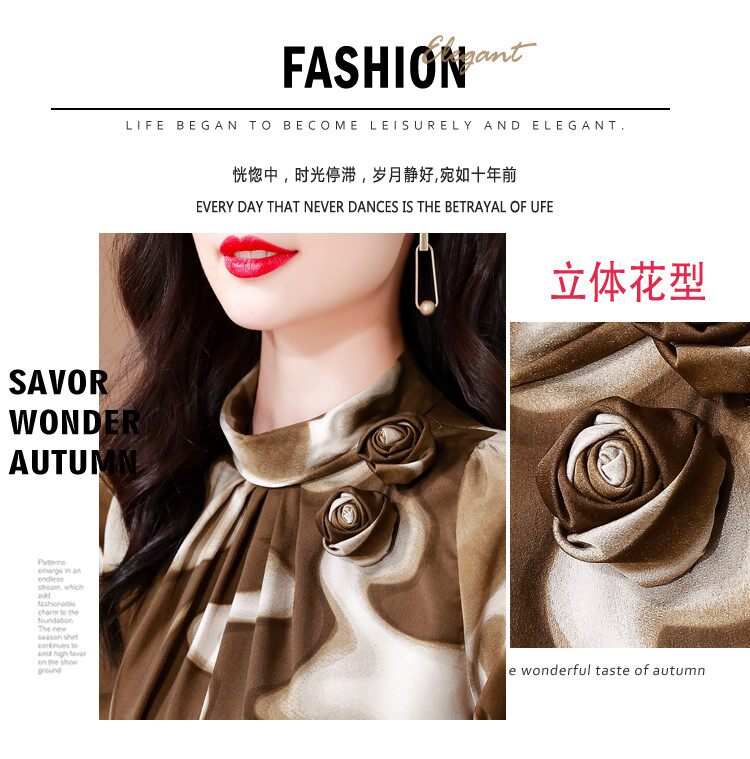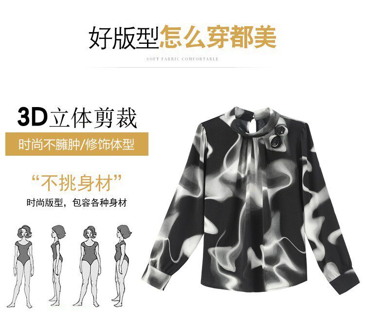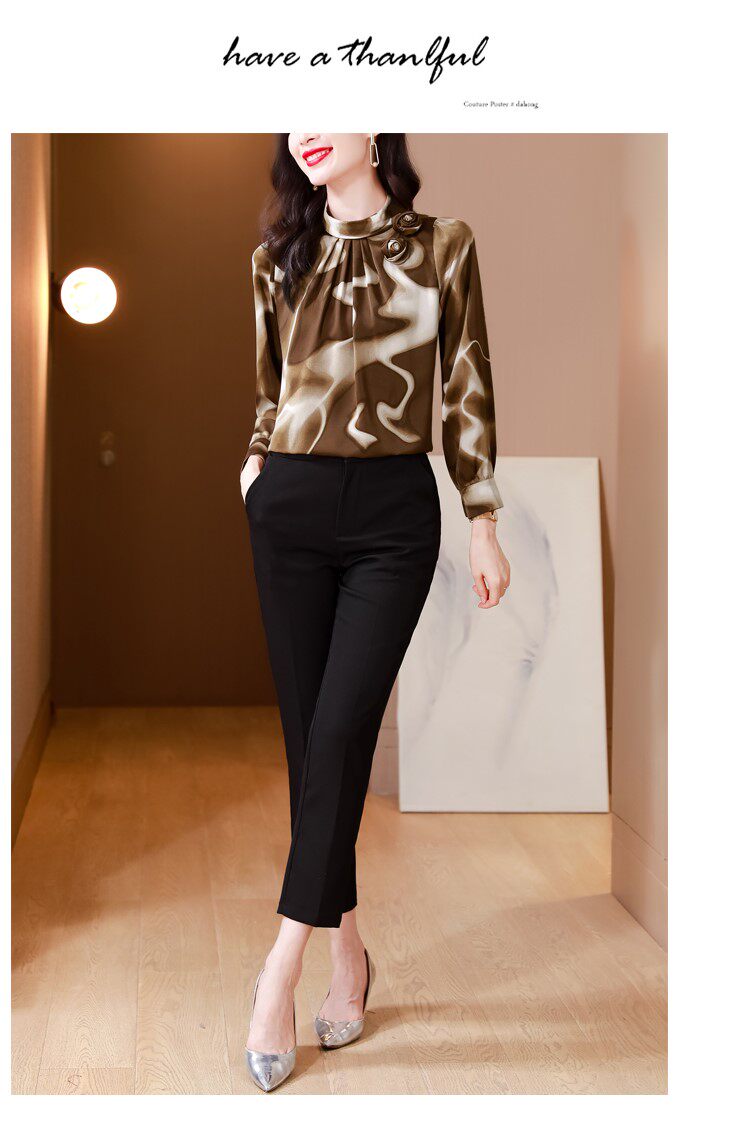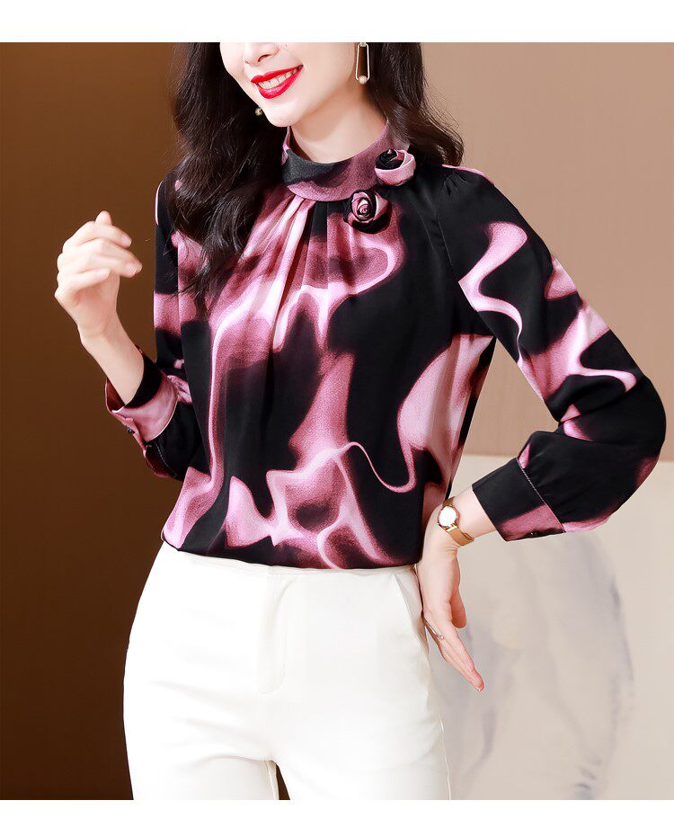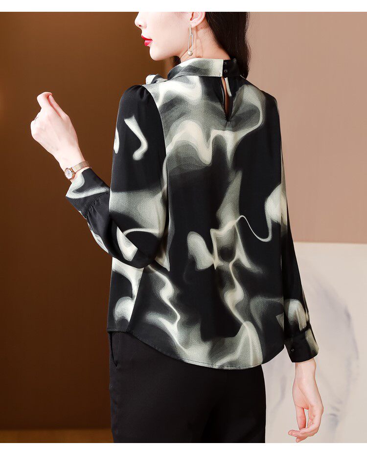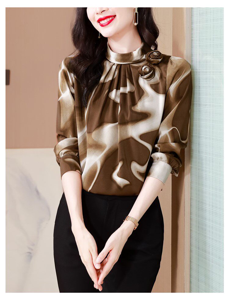 Chiffon shirt women's early spring, autumn and winter 2026 new style trendy tops, age-reducing shirts, long-sleeved shirts
