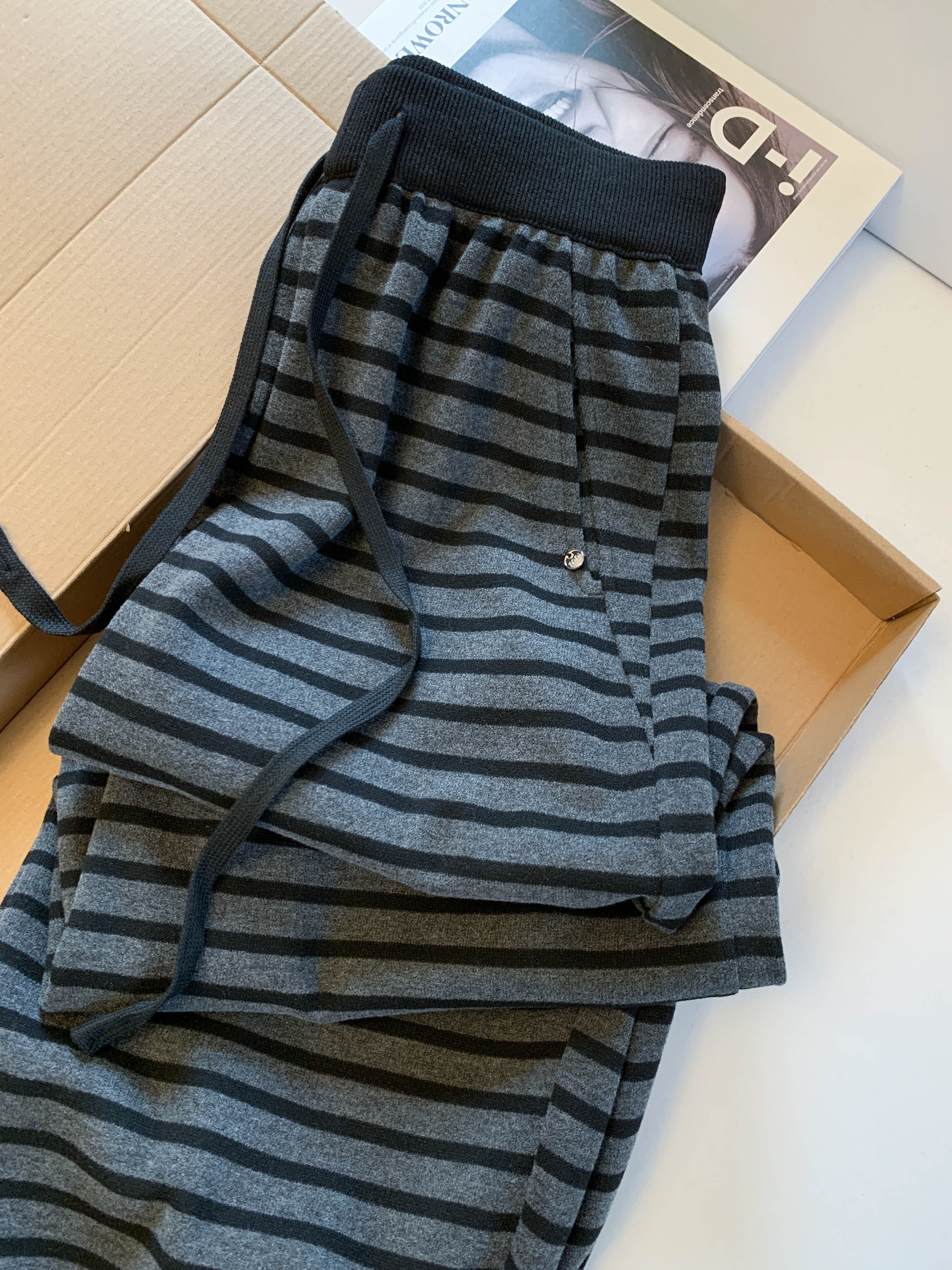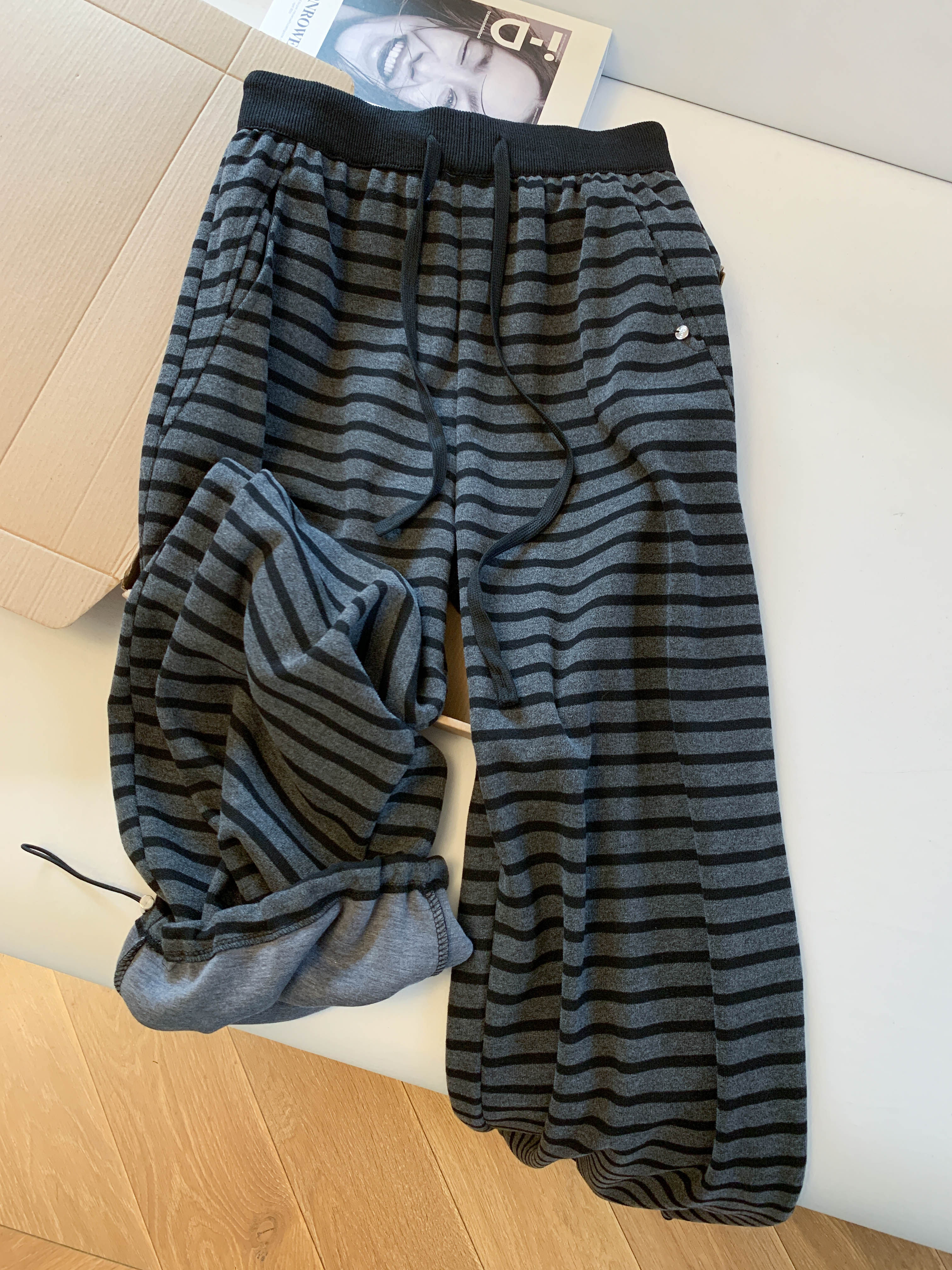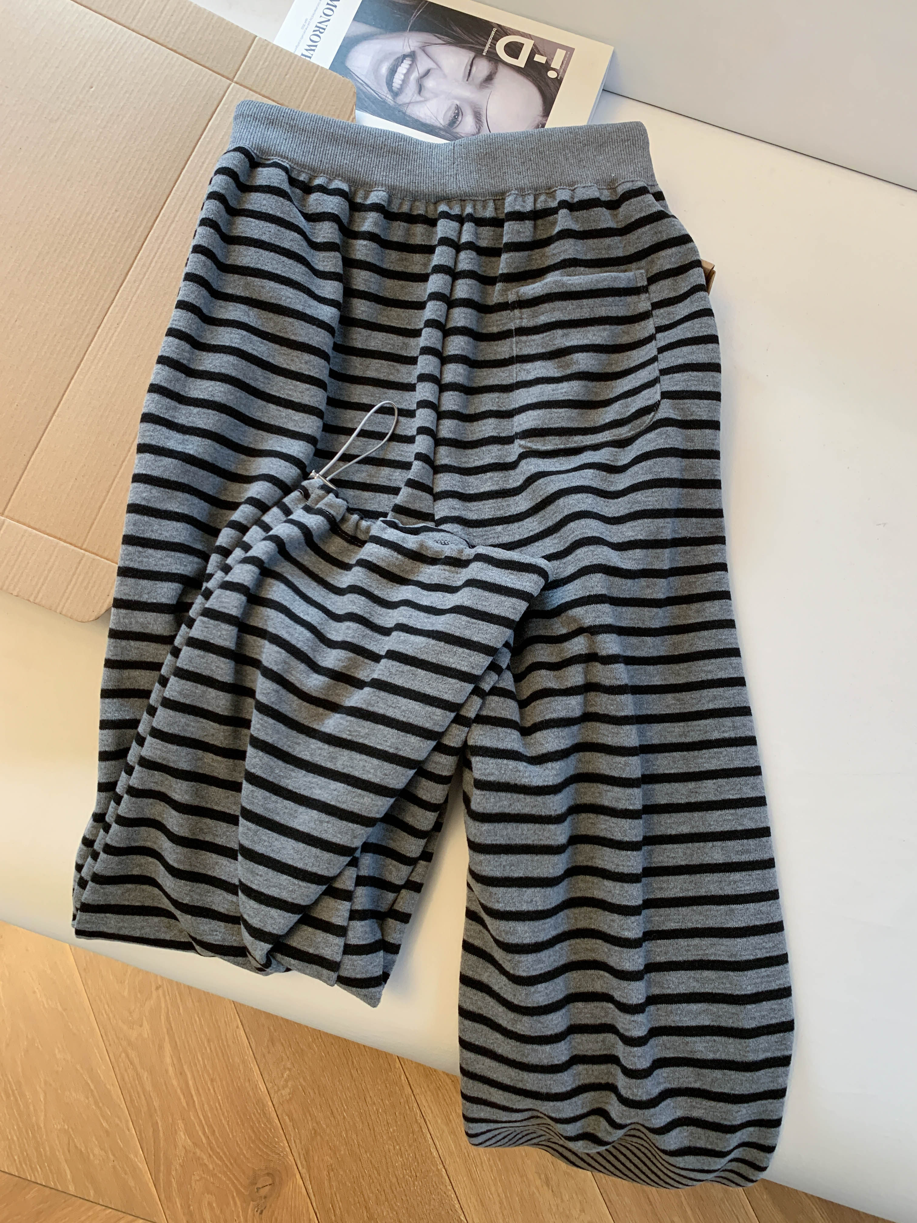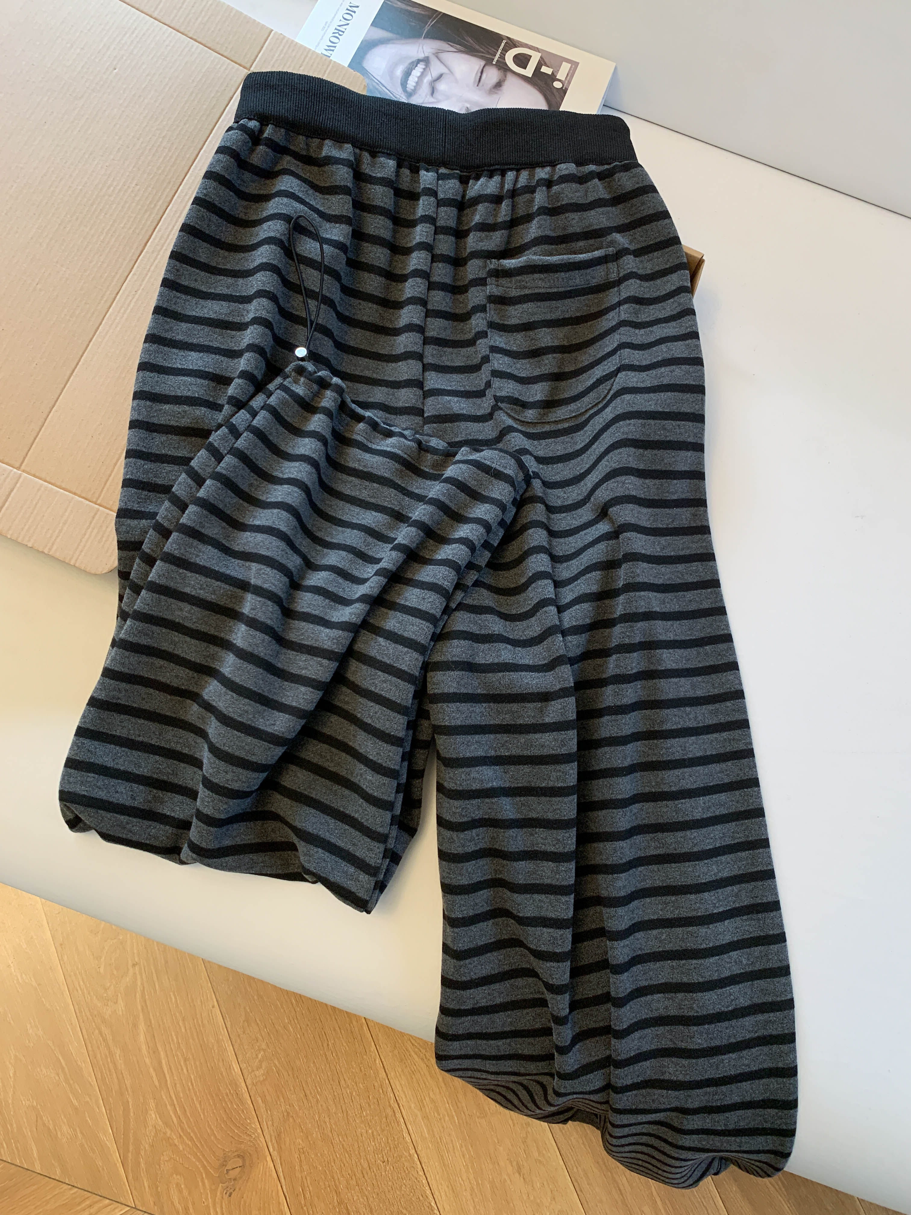Lazy style plus velvet striped scimitar pants for women in winter, soft and waxy casual wide-leg pants for small people, two-wear sports pants with ankles