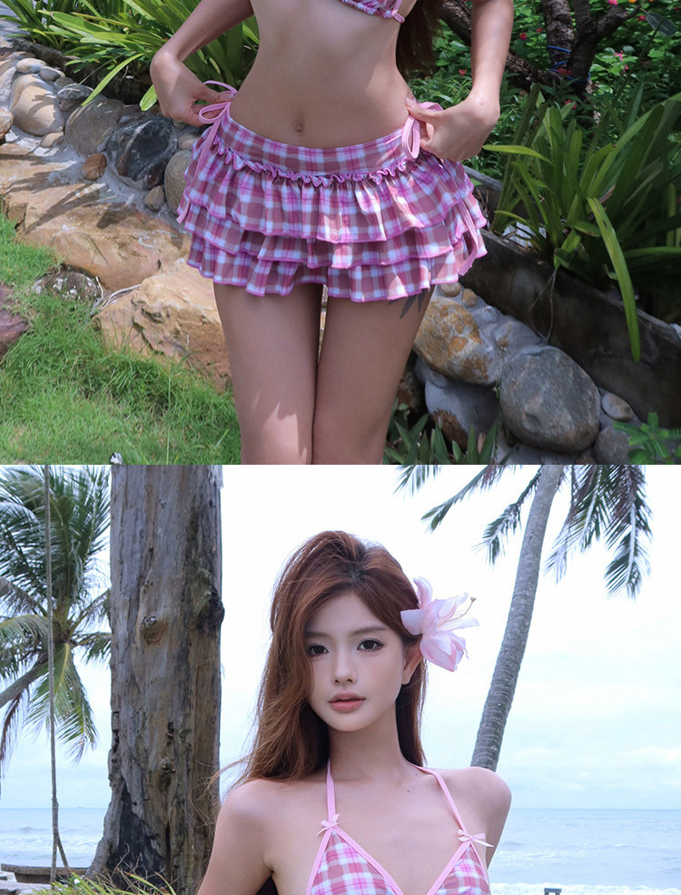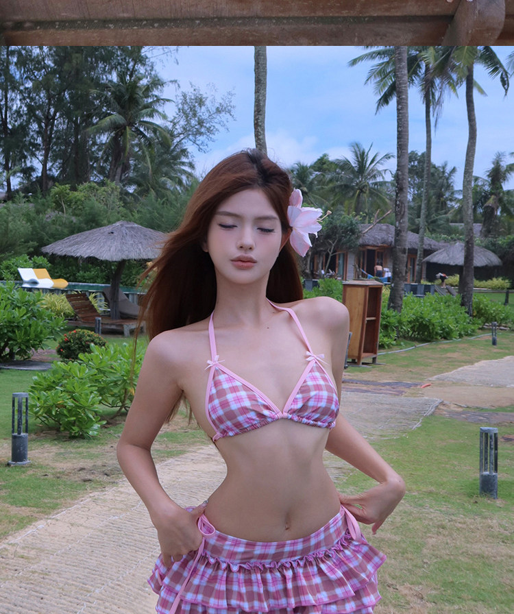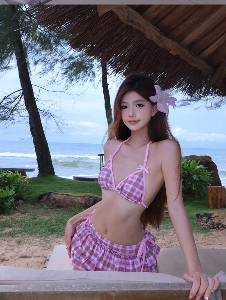 Sexy resort style patterned girl's split swimsuit for women, sweet style bikini, ruffled beach swimsuit three-piece set