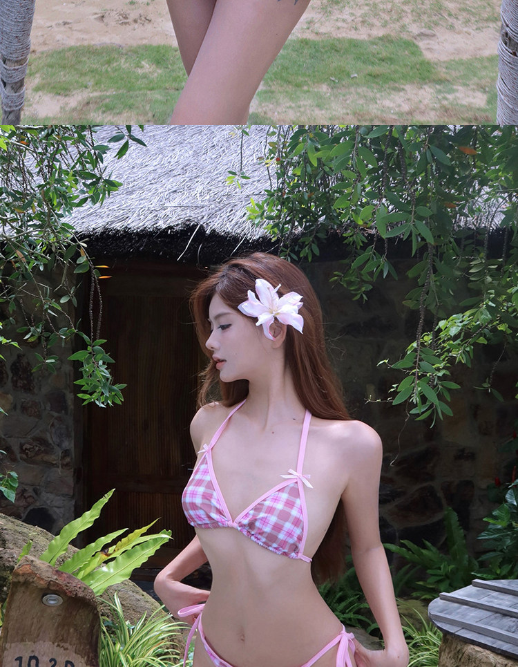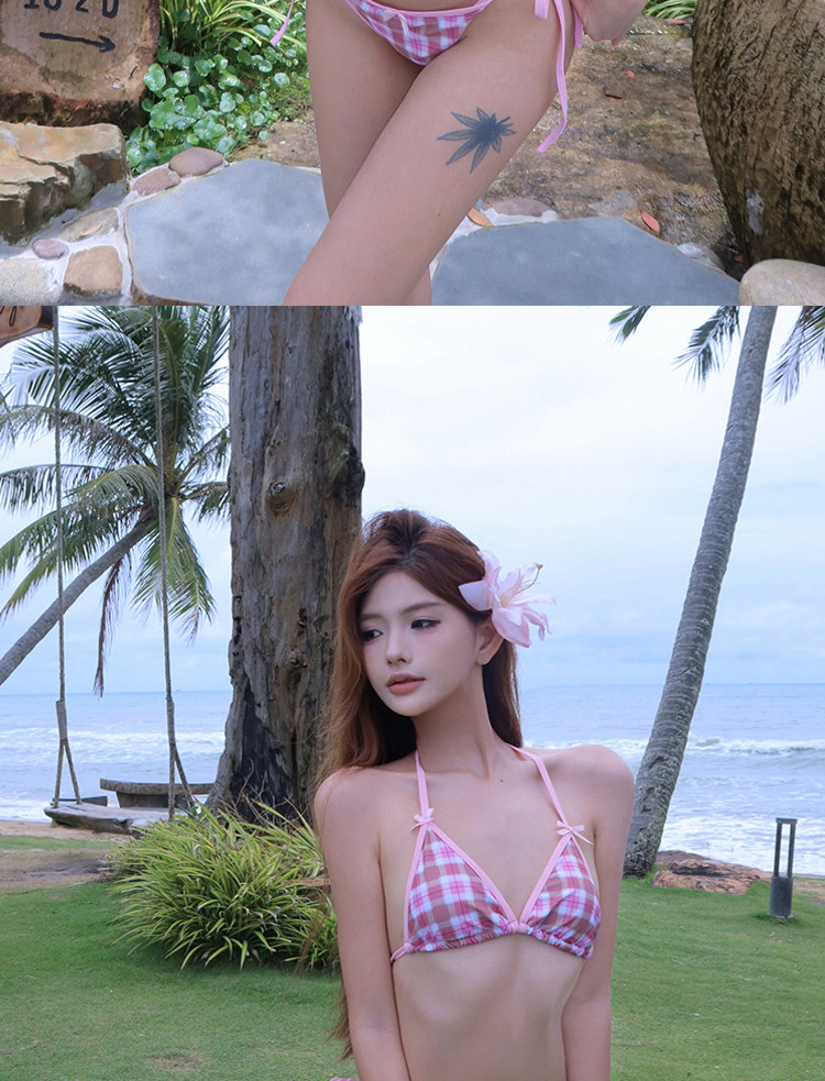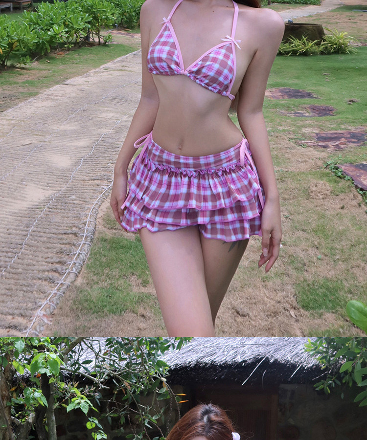 Sort by color Pink plaid three-piece set
