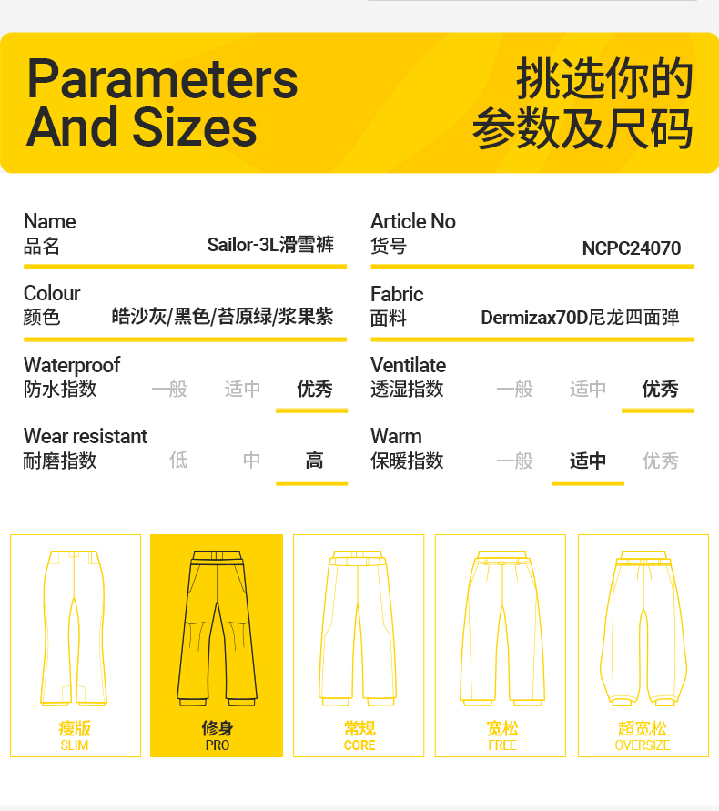 China (cm) 165 / 88-90 170 / 96-98 175 / 108-110 180 / 118-122 185 / 126-130