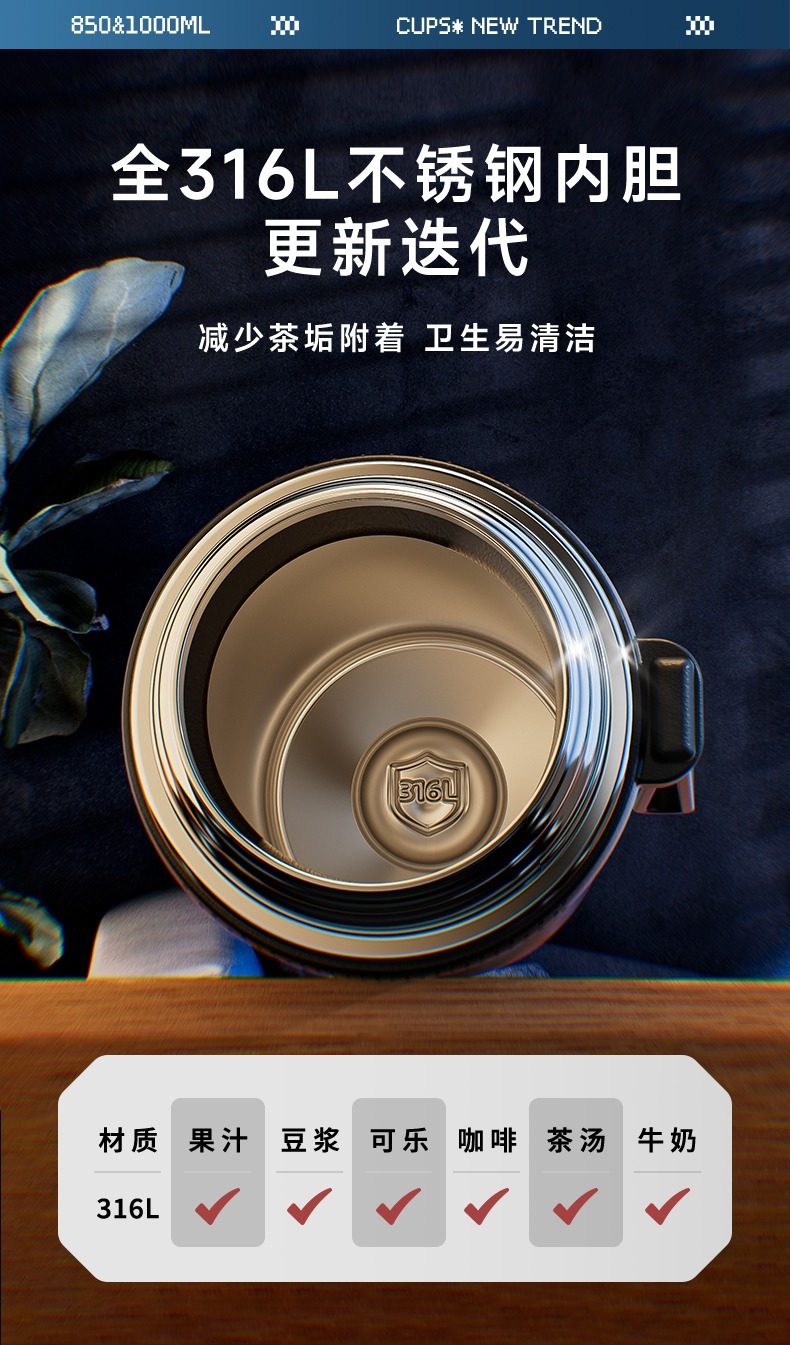 Color Classification Black 850ml [Pp Lid + 304 Liner + Portable Carrying Rope + Free Engraving],Blue 850ml [Pp Lid + 304 Liner + Portable Carrying Rope + Free Engraving],Natural Color 850ml [Pp Cup Lid + 304 Liner + Portable Carrying Rope + Free Engraving],Black 1000ml [Pp Lid + 304 Liner + Portable Carrying Rope + Free Engraving],Blue 1000ml [Pp Lid + 304 Liner + Portable Carrying Rope + Free Engraving],Natural Color 1000ml [Pp Cup Lid + 304 Liner + Portable Carrying Rope + Free Engraving],Black 850ml [All Steel Lid + 316L Liner + Portable Strap + Free Engraving],Natural Color 850ml [All Steel Lid + 316L Liner + Portable Carrying Rope + Free Engraving],Blue 850ml [All Steel Lid + 316L Liner + Portable Carrying Rope + Free Engraving],Gray 850ml [All Steel Lid + 316L Liner + Portable Carrying Rope + Free Engraving],Black 1000ml [All Steel Lid + 316L Liner + Portable Strap + Free Engraving],Natural Color 1000ml [All Steel Lid + 316L Liner + Portable Carrying Rope + Free Engraving],Blue 1000ml [All Steel Lid + 316L Liner + Portable Carrying Rope + Free Engraving],Gray 1000ml [All Steel Lid + 316L Liner + Portable Strap + Free Engraving],Bright Black 750ml [Stainless Steel Lid + 316L Liner + Portable Strap + Free Engraving],Silver Gray 750ml [Stainless Steel Lid + 316L Liner + Portable Strap + Free Engraving],Off-White 750ml [Stainless Steel Lid + 316L Liner + Portable Strap + Free Engraving],Bright Black 950ml [Stainless Steel Lid + 316L Liner + Portable Strap + Free Engraving],Silver Gray 950ml [Stainless Steel Lid + 316L Liner + Portable Strap + Free Engraving],Off-White 950ml [Stainless Steel Lid + 316L Liner + Portable Strap + Free Engraving]