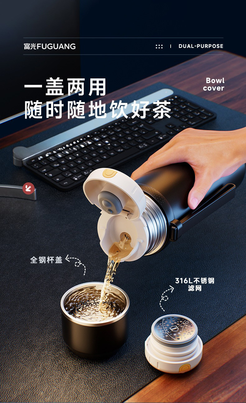 Fuguang Large-Capacity Outdoor Thermos Cup 2025 New Portable Tea Brewing Kettle 316 Stainless Steel Thermos Cup
