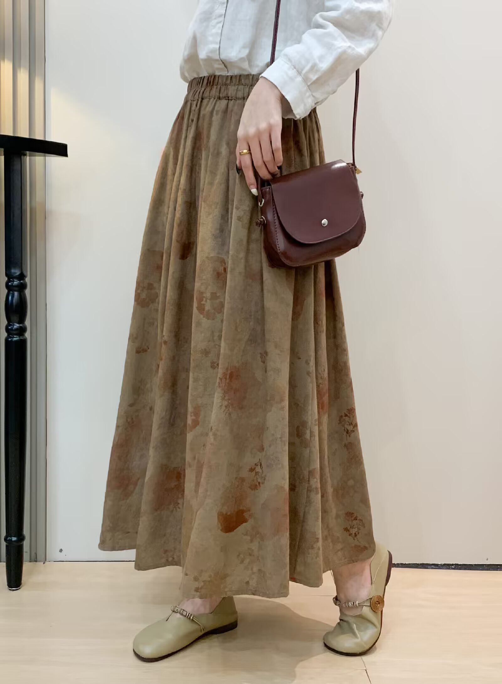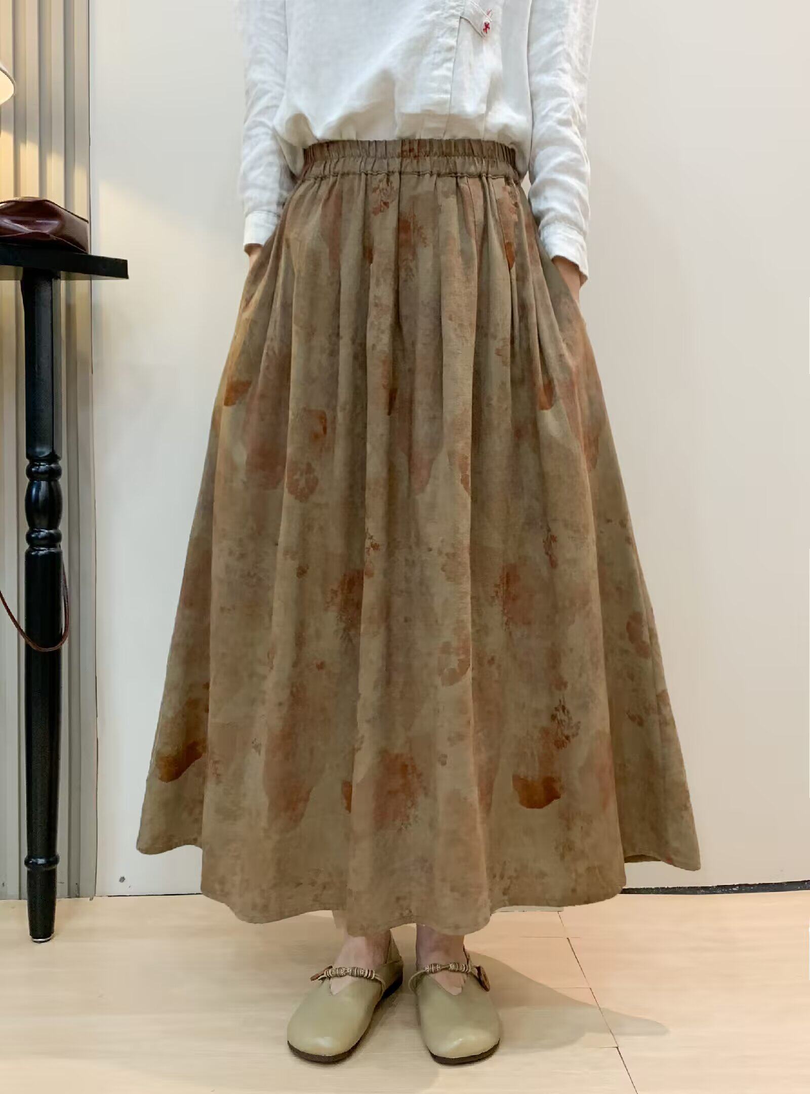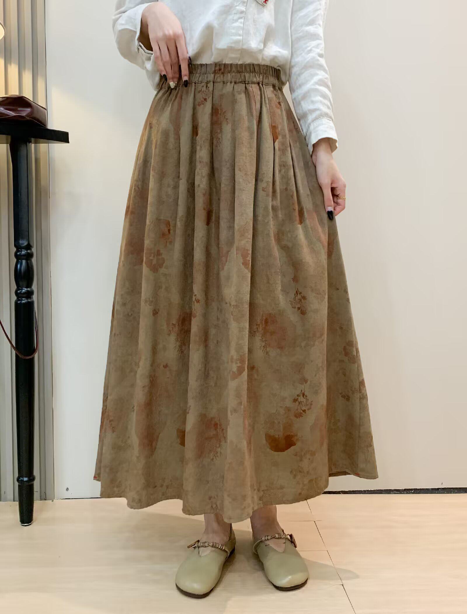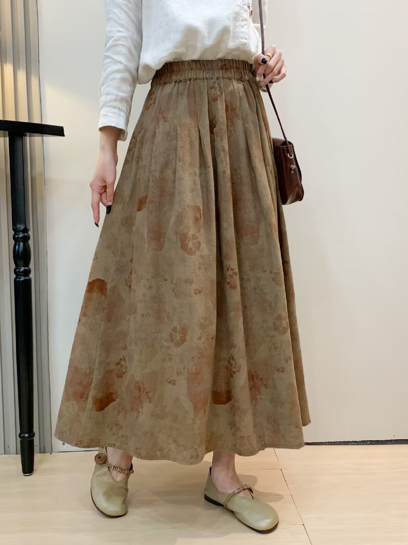 Artistic Retro Printed Cotton and Linen Skirt 2026 Spring High-Waisted Mid-Length Skirt Slimming Versatile Long Skirt