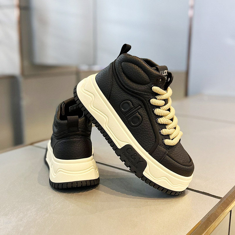 Black high-top shoes for men in winter, high-end Martin boots, increased height, British mid-top workwear, non-slip casual breadboard shoes