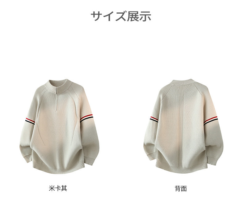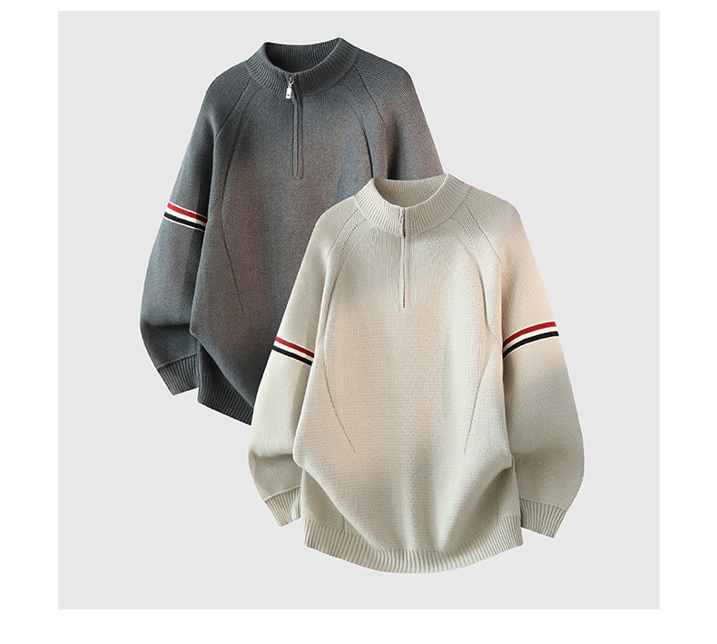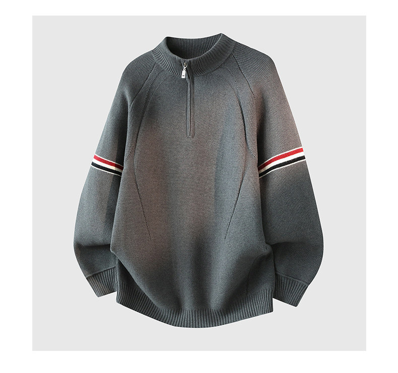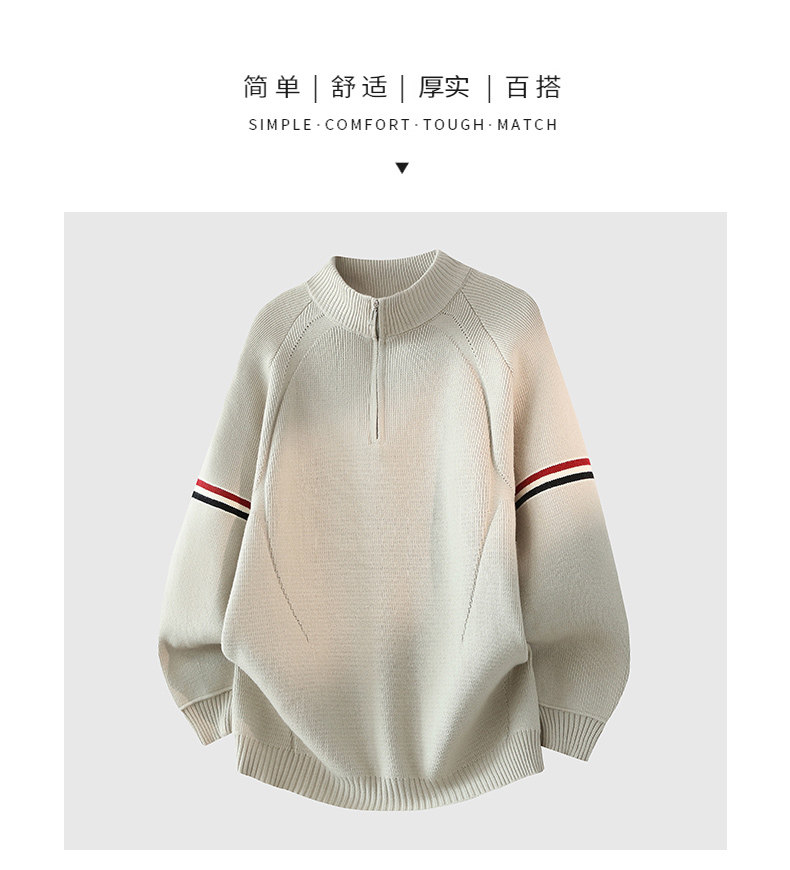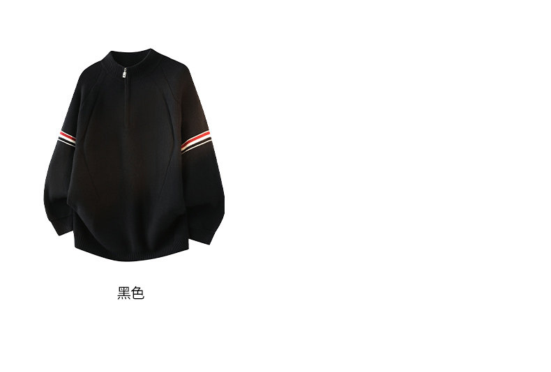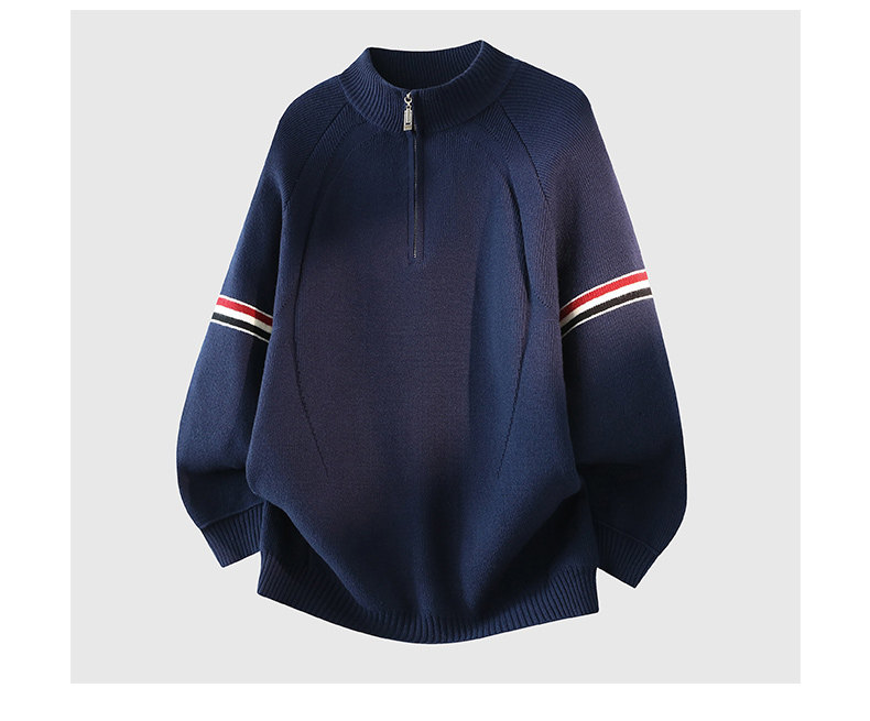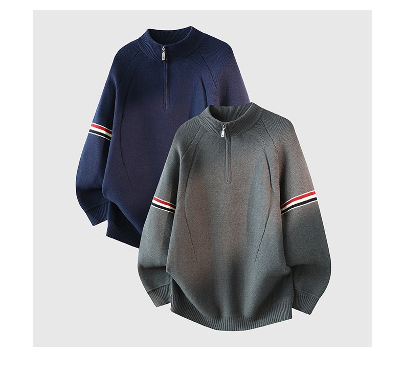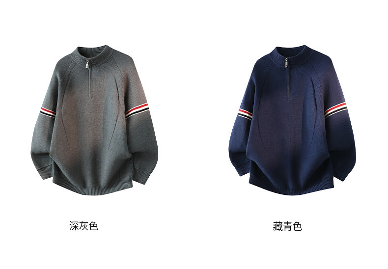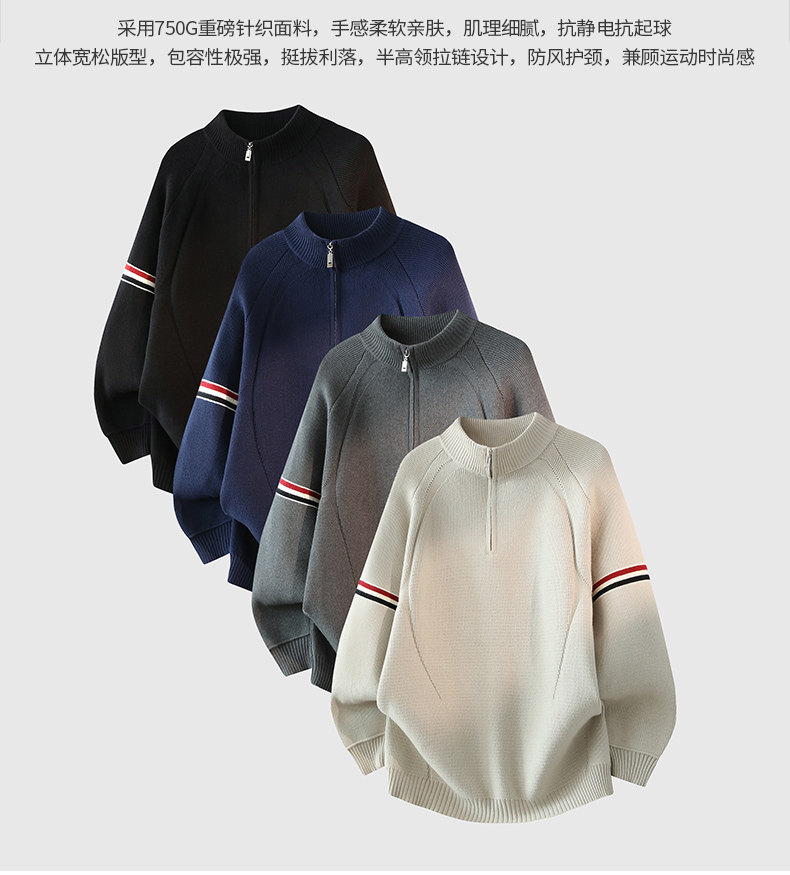 Chun Tuan 750G Heavyweight Half-Zip Sweater Men's Winter High-Quality Striped Contrast Color Lazy Half-Turtle Collar Sweater