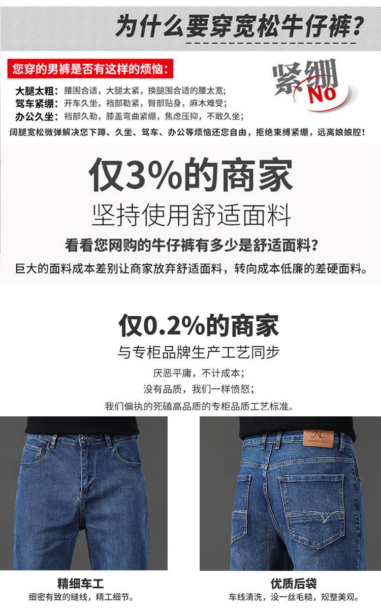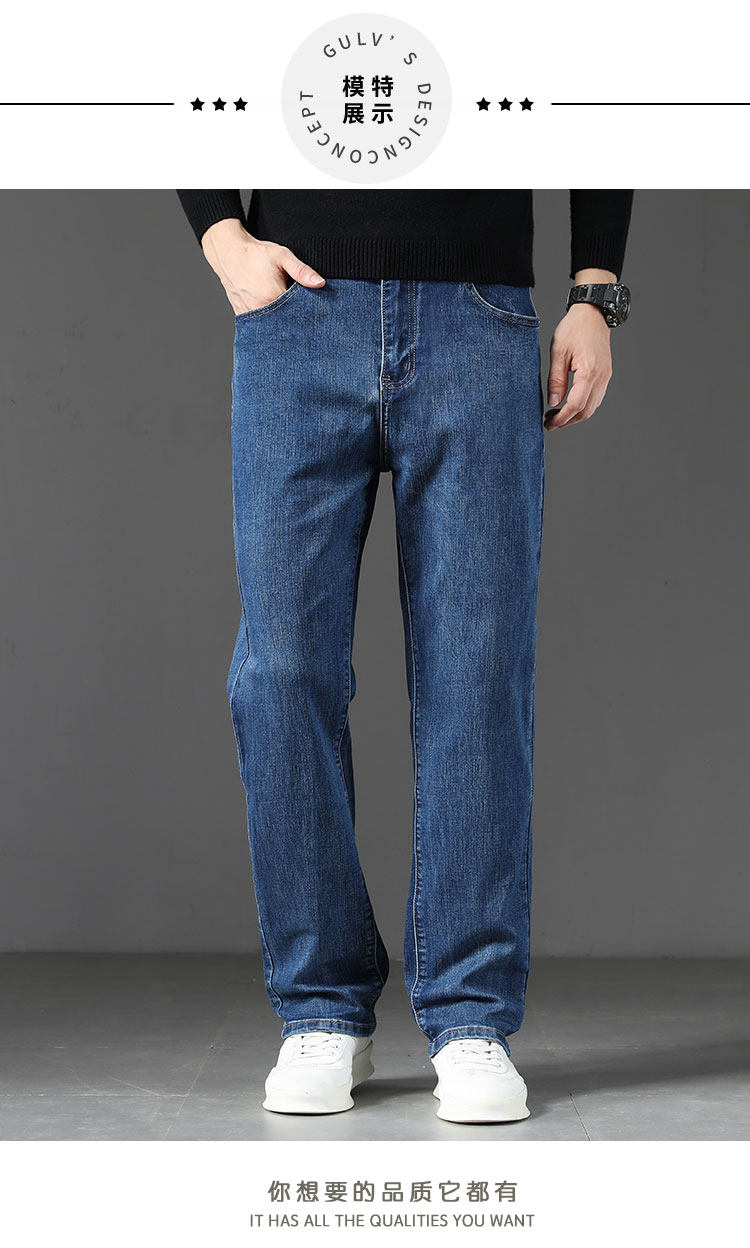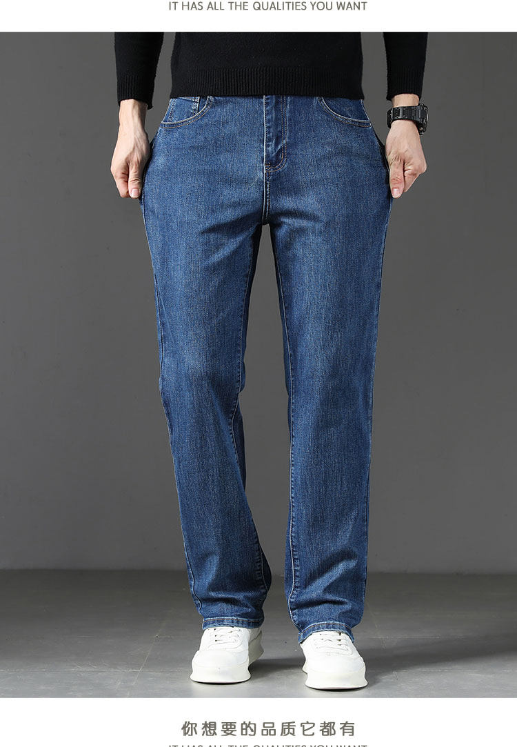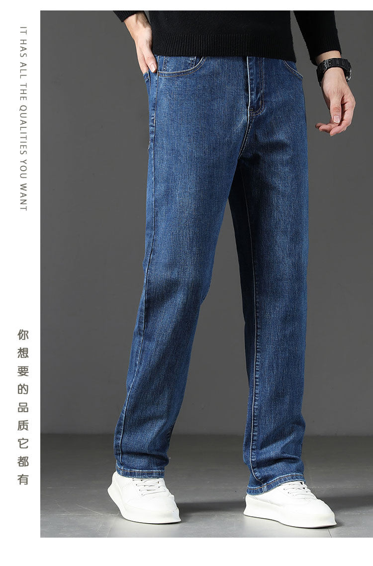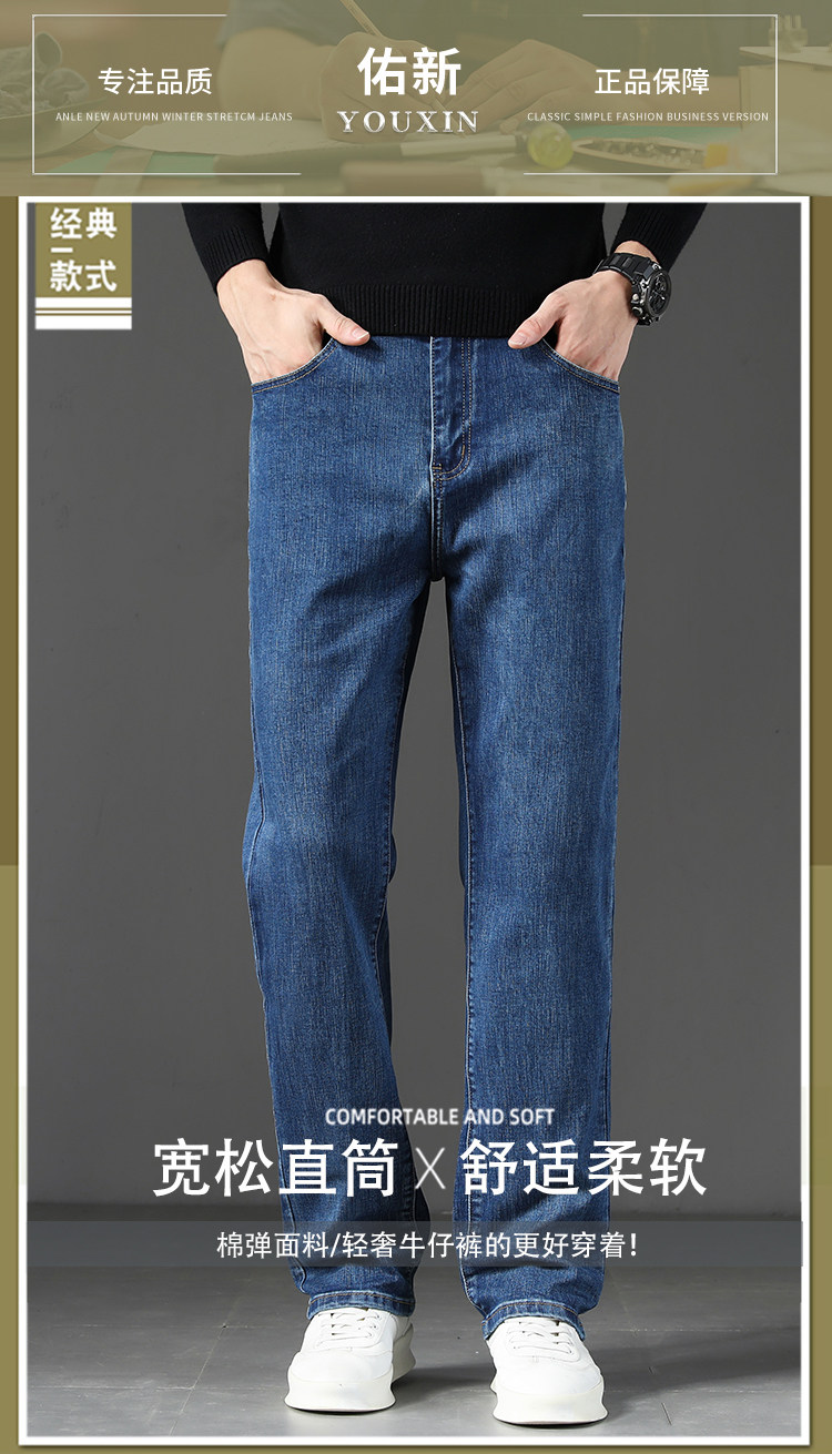 Winter high-end jeans for men 2025 autumn and winter new loose straight men's pants middle-aged elastic casual long pants
