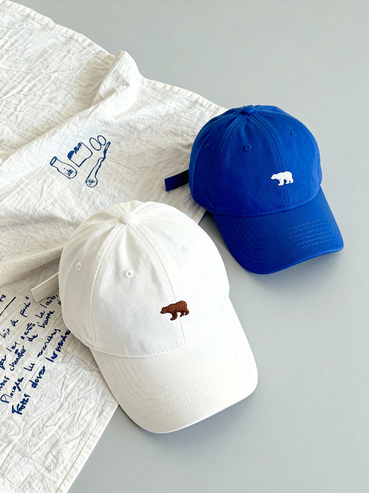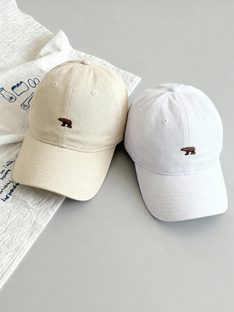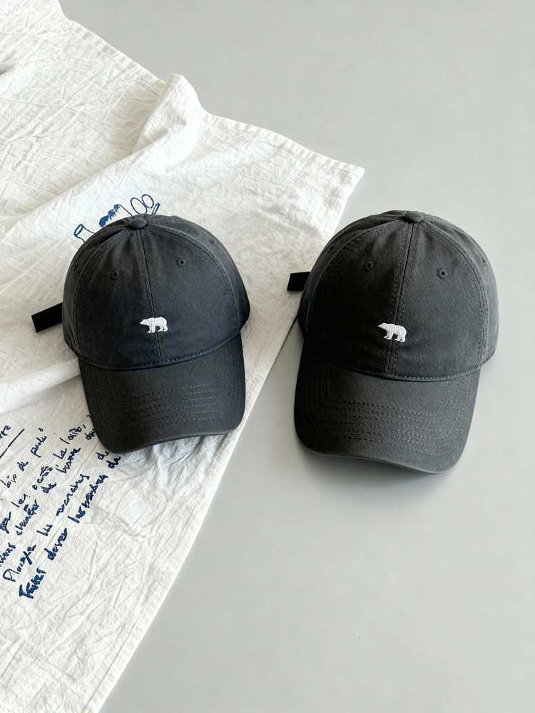 Polar bear embroidered small head baseball cap 54cm pure cotton hard top children's sun protection duck hat for men 2025 new style