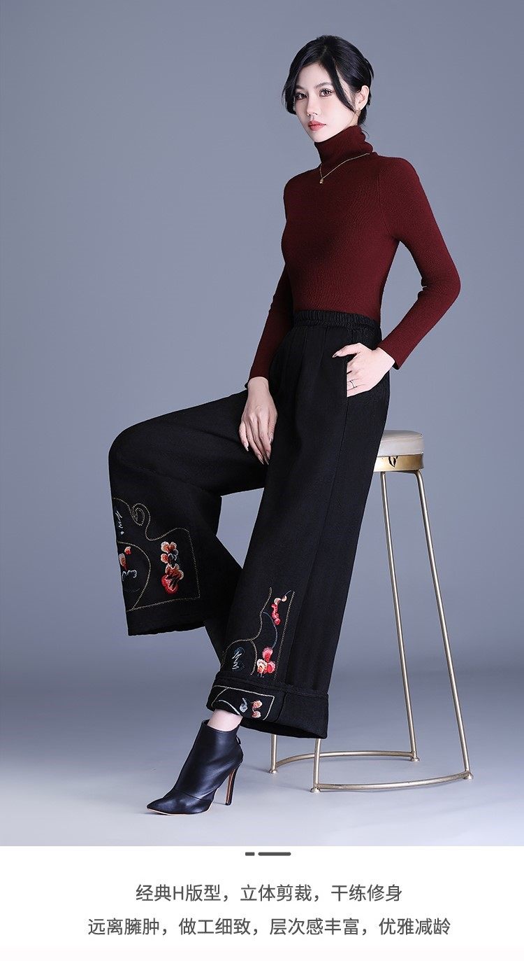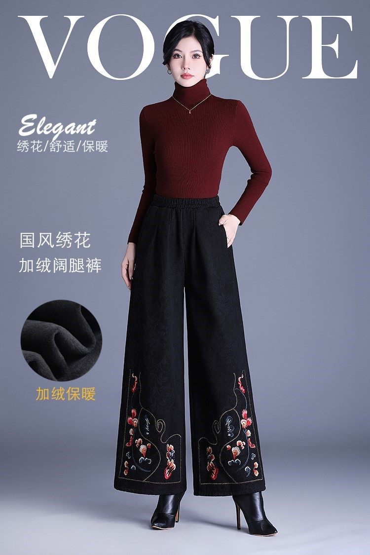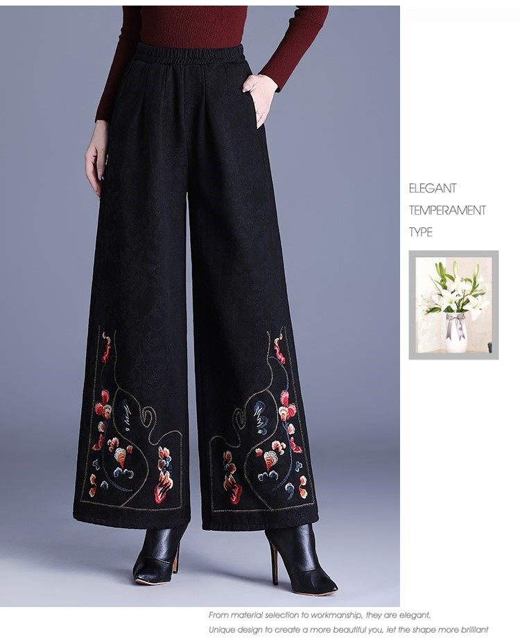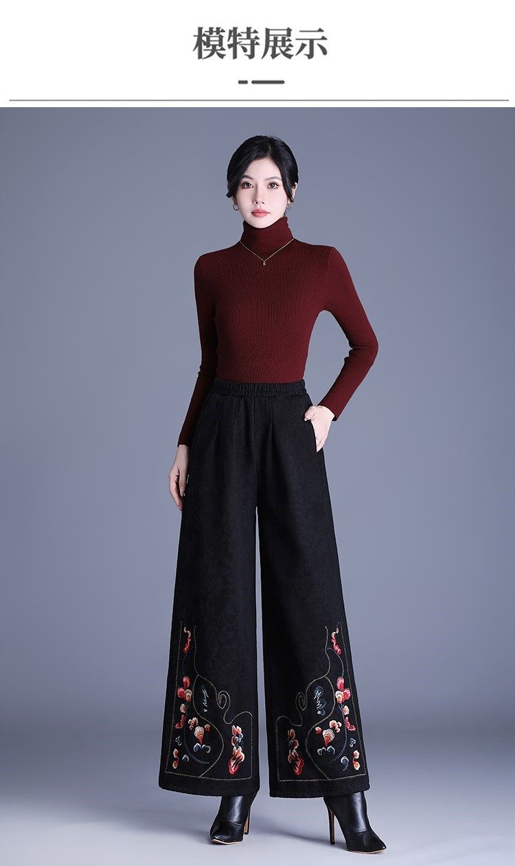 Fashionable Cotton Leggings for Women, Autumn and Winter 2025 New Style, Chinese Style, Fleece-Lined, Thickened, Suitable for Wearing Outside, Wide-Leg Pants for Mothers