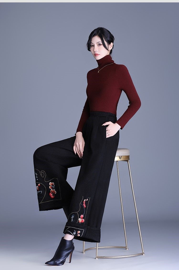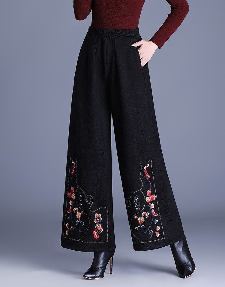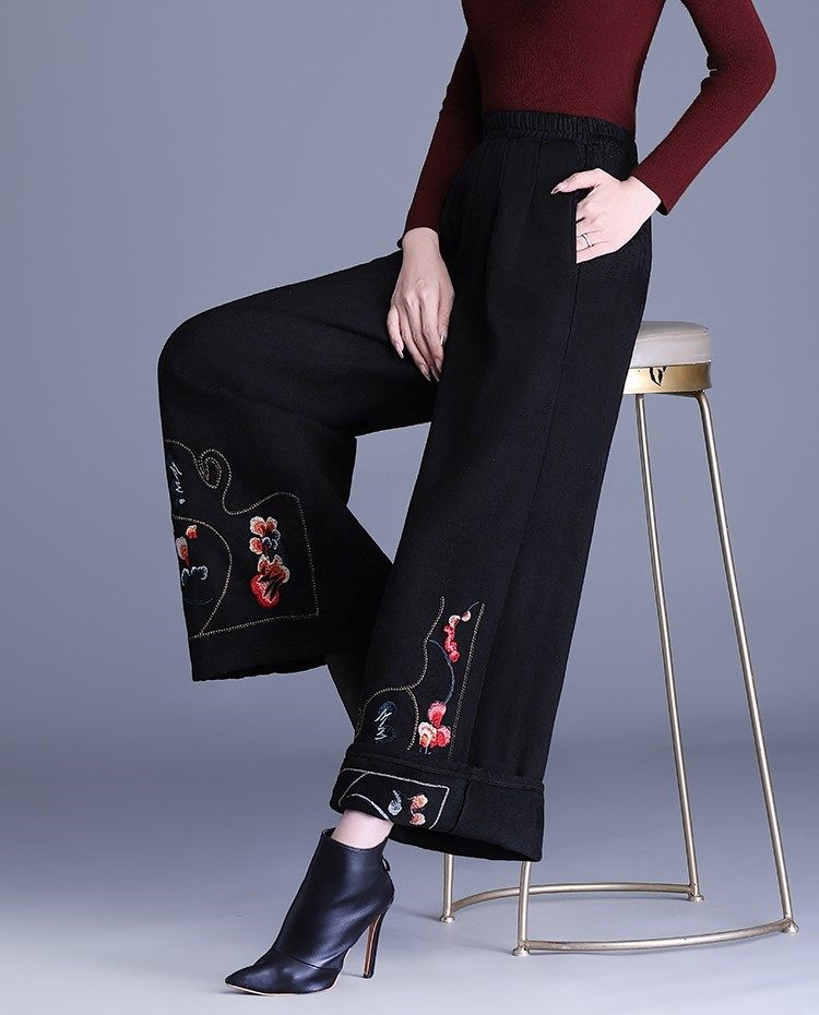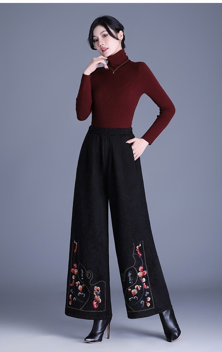 Fashionable Cotton Leggings for Women, Autumn and Winter 2025 New Style, Chinese Style, Fleece-Lined, Thickened, Suitable for Wearing Outside, Wide-Leg Pants for Mothers