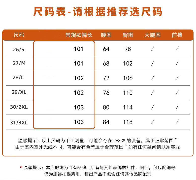 Size 26/S,27/M,28/L,29/XL,30/2XL,31/3XL